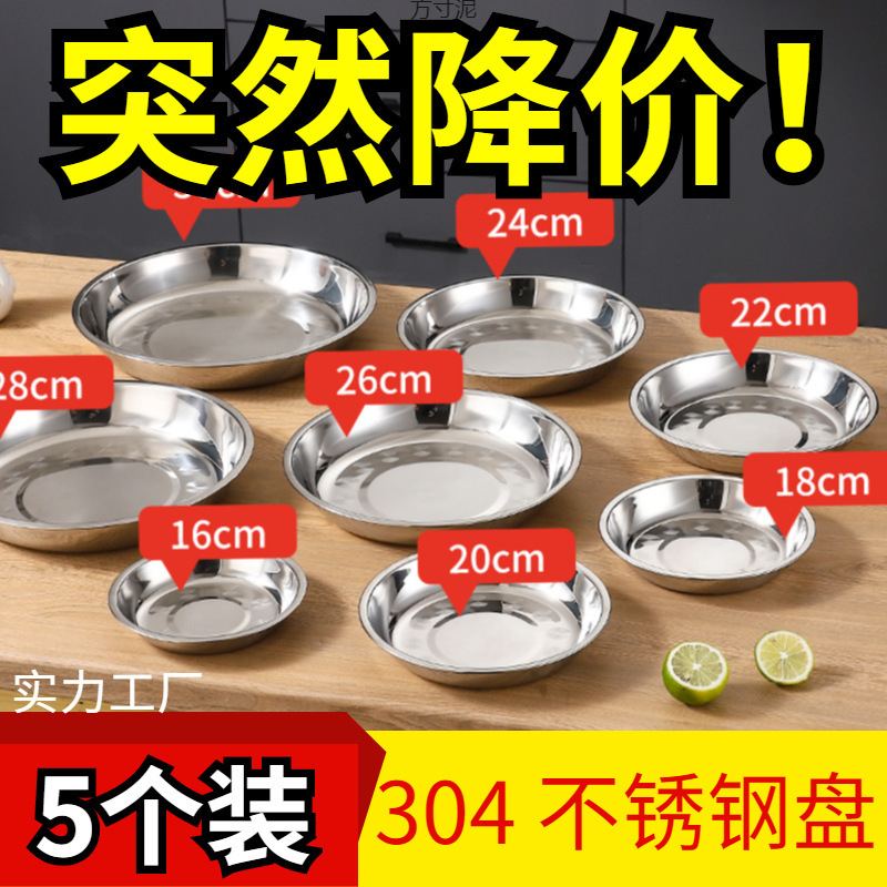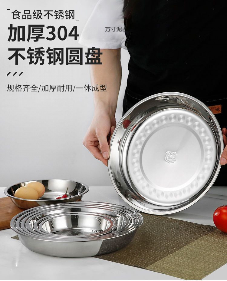 식품 학년 304 스테인레스 스틸 플레이트 두꺼운 라운드 플레이트 가정용 침식 두꺼운 딥 플레이트 라운드 과일 플레이트스토어 가기