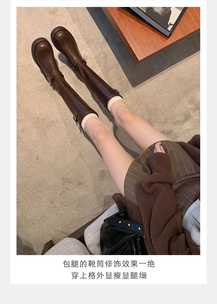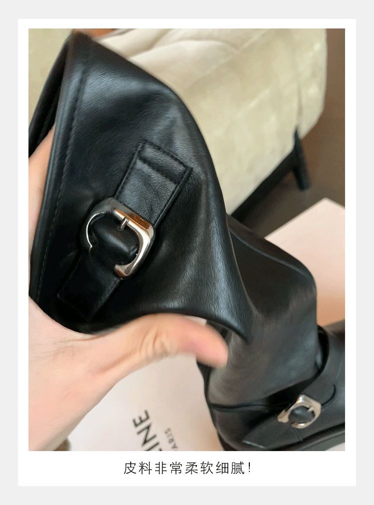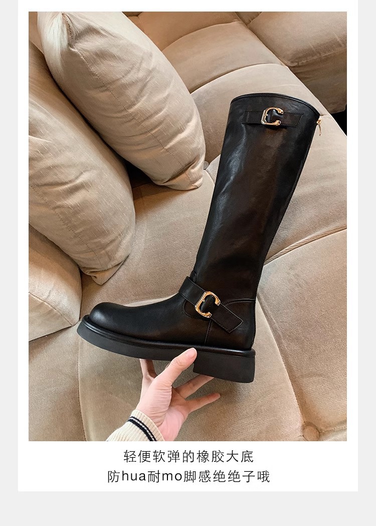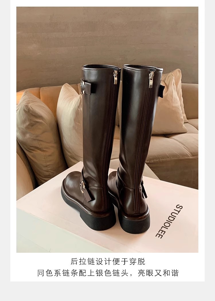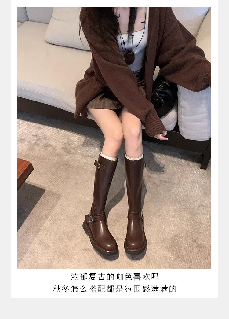 소가죽 버전 2025년 신상품 가을 겨울 레트로 라운드 토 버클 스트랩 두꺼운 굽 무릎 위까지 오는 롱부츠 여성용 나이트 부츠스토어 가기