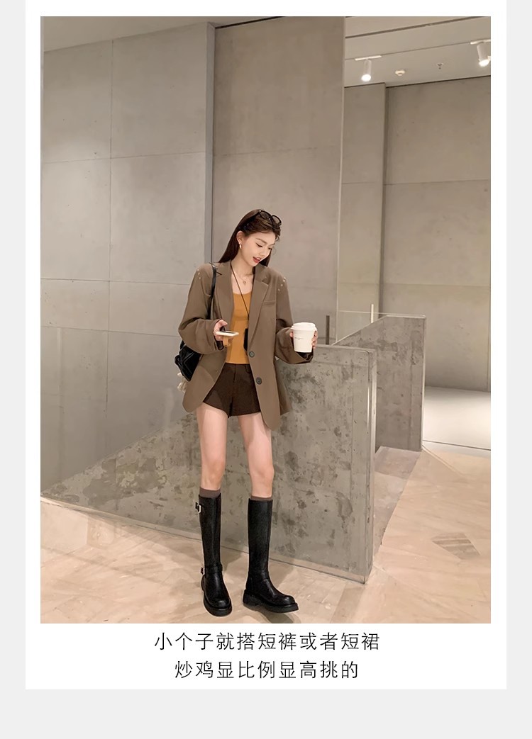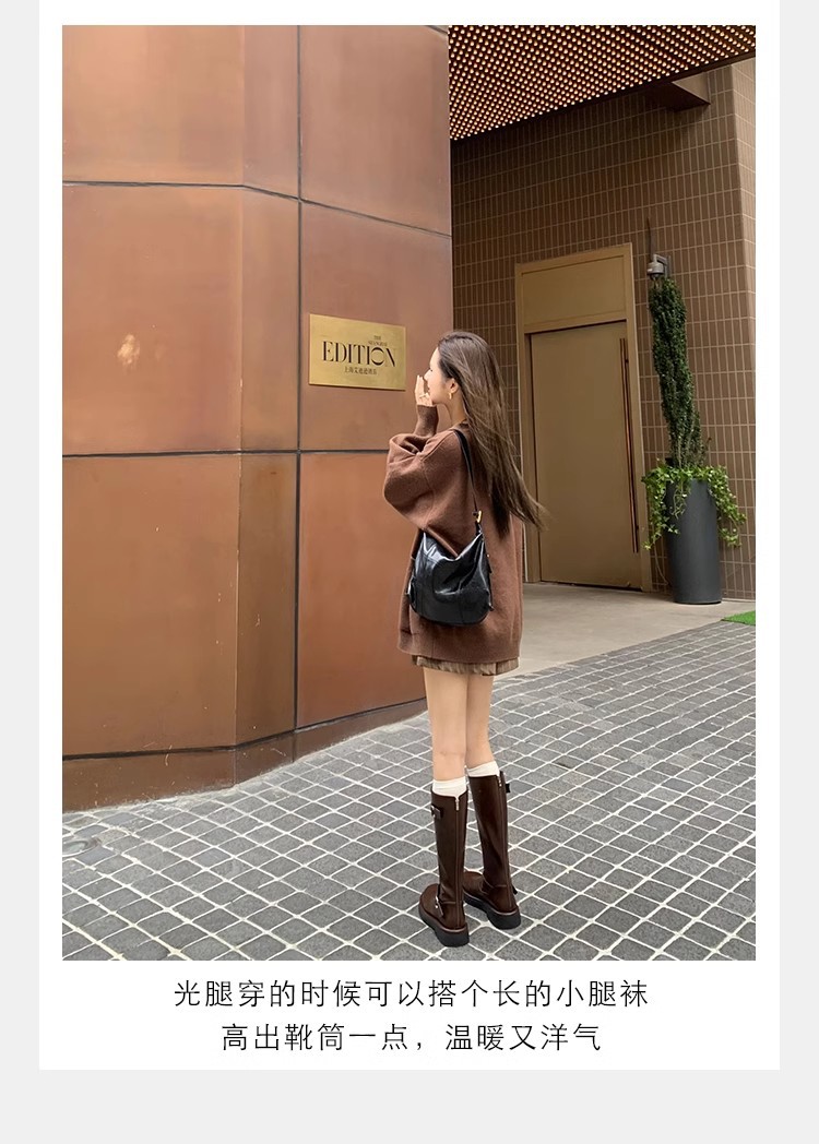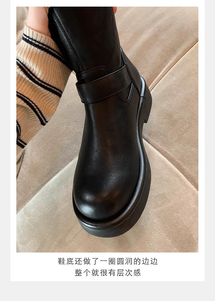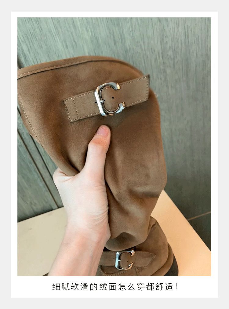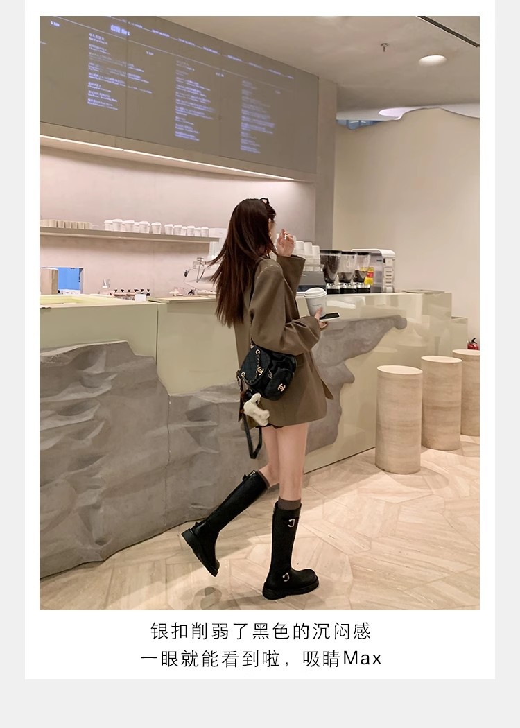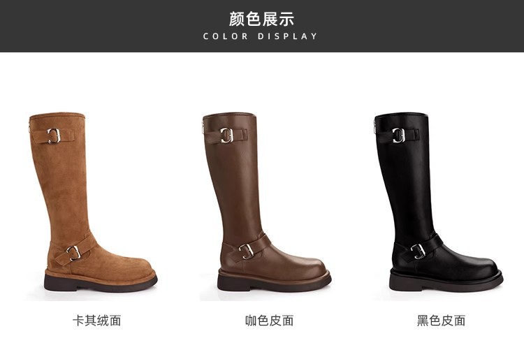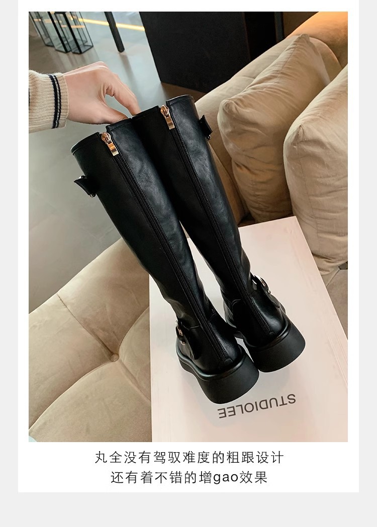 소가죽 버전 2025년 신상품 가을 겨울 레트로 라운드 토 버클 스트랩 두꺼운 굽 무릎 위까지 오는 롱부츠 여성용 나이트 부츠스토어 가기