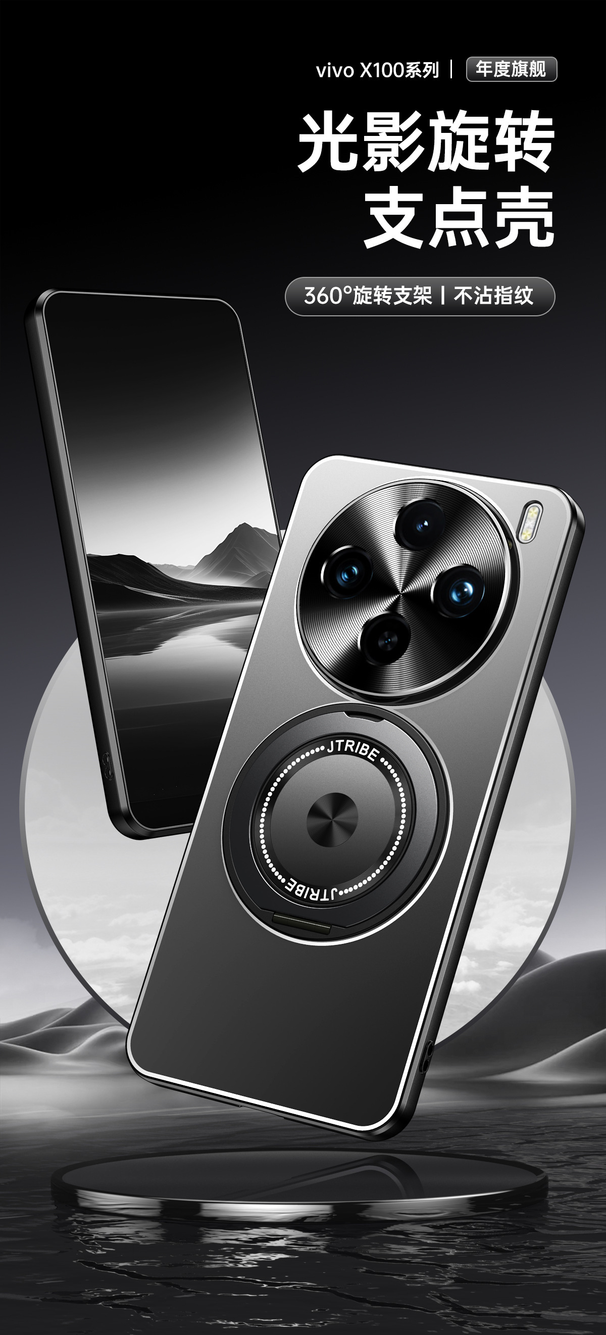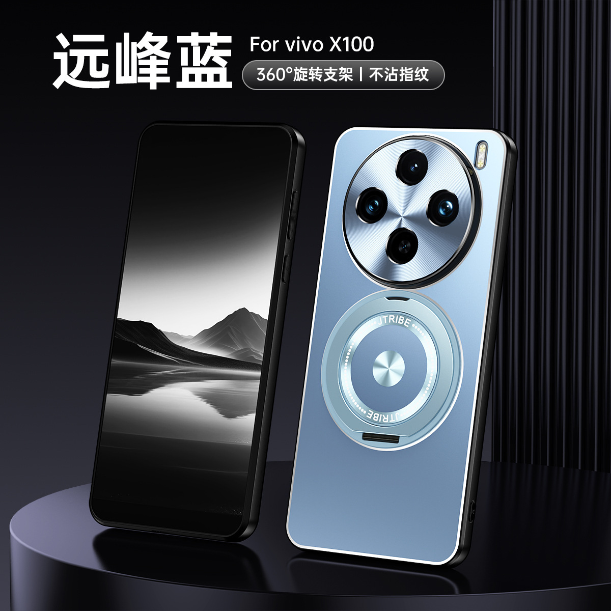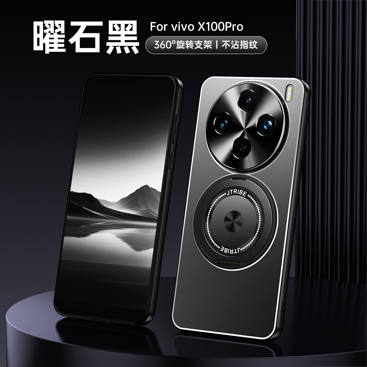 适用vivoX100手机壳X100Pro新款金属磨砂360旋转支架全包防摔车载