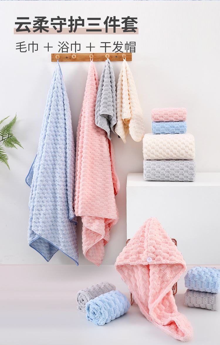 산호 벨벳 목욕 타월 A급 두꺼운 타월 부드러운 구름 벨벳 대형 목욕 타월 흡수성 빠른 건조 3종 세트 도매