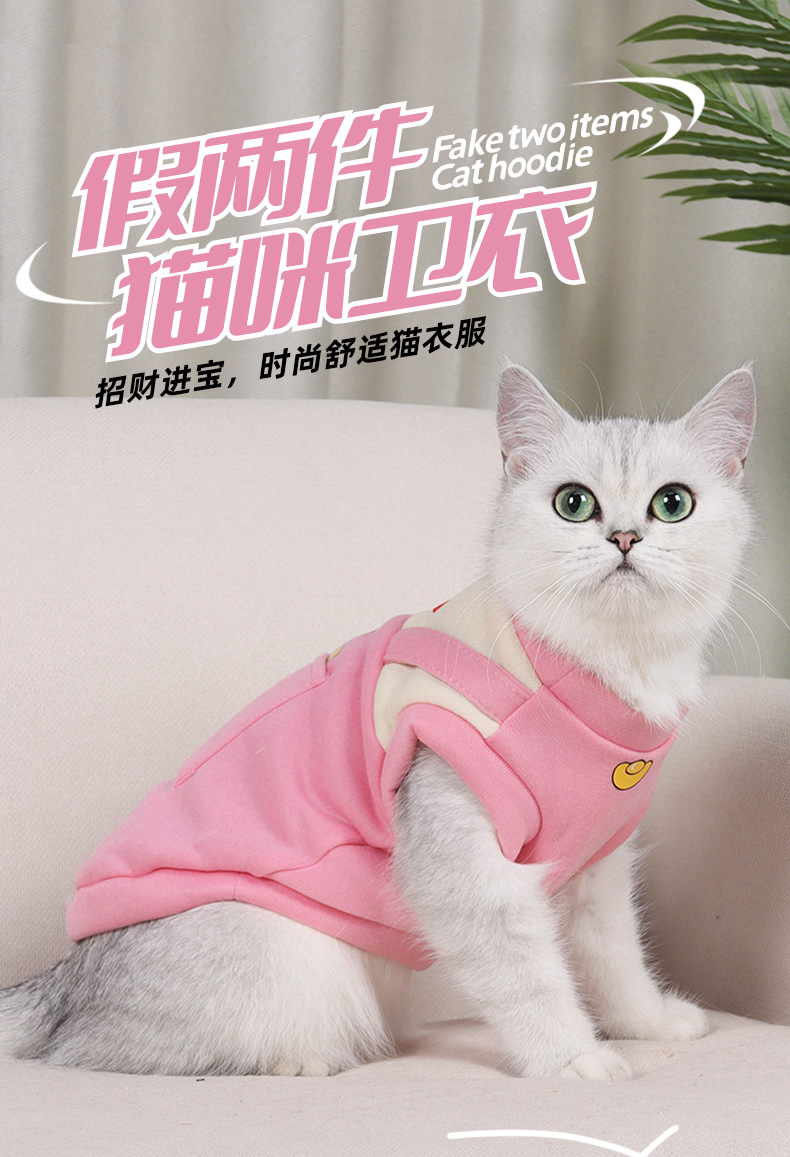 가짜 투피스 고양이 옷, 가을 겨울 패션 새끼 고양이 옷, 보온성 강화 강아지 옷, 털빠짐 방지 애완동물 옷스토어 가기