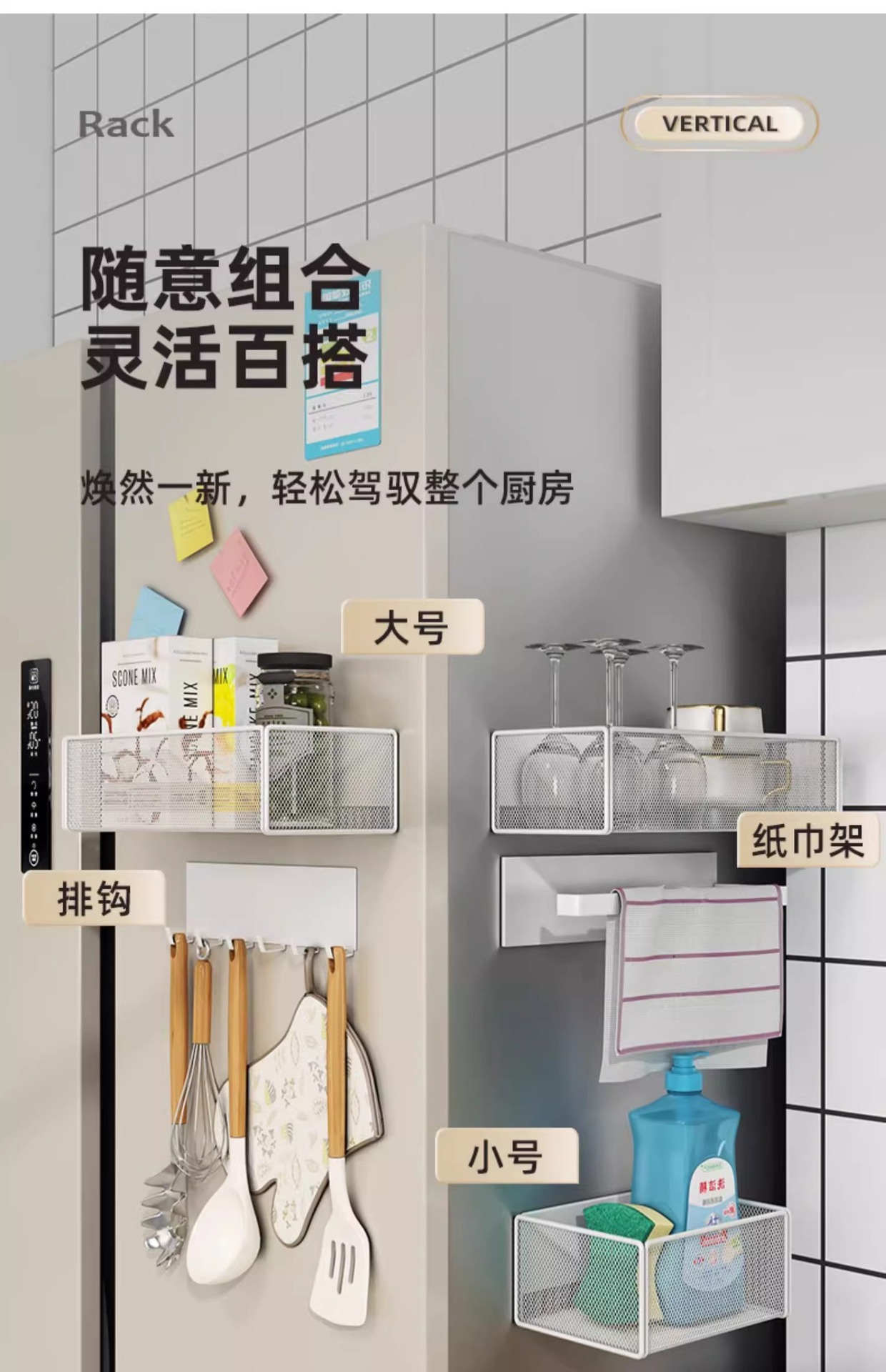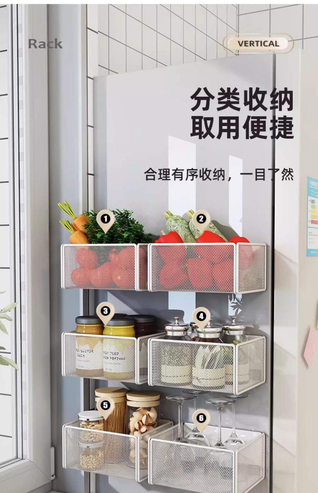 냉장고 자석 접착 필름 보관 랙 보관 바구니 다기능 창의적 보관 상자 금속 바구니 측면 보관스토어 가기