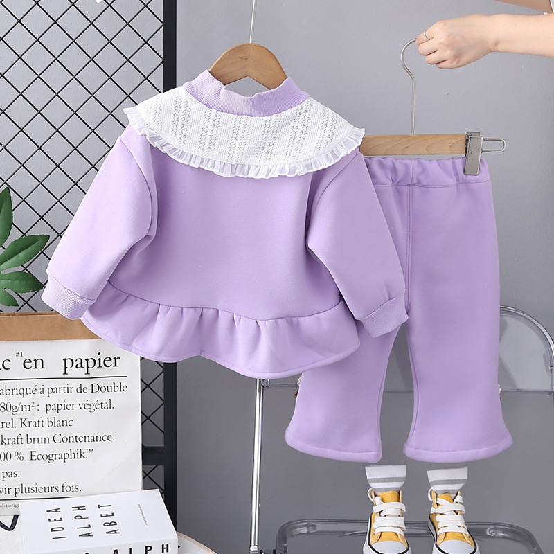 2024 겨울 새 소녀의 기모 옷깃 긴 소매 세트 소녀 캐주얼 따뜻한 바지 2 피스 세트스토어 가기