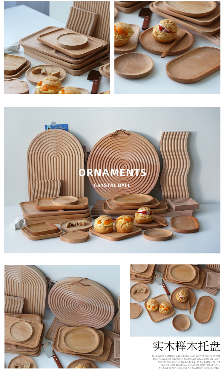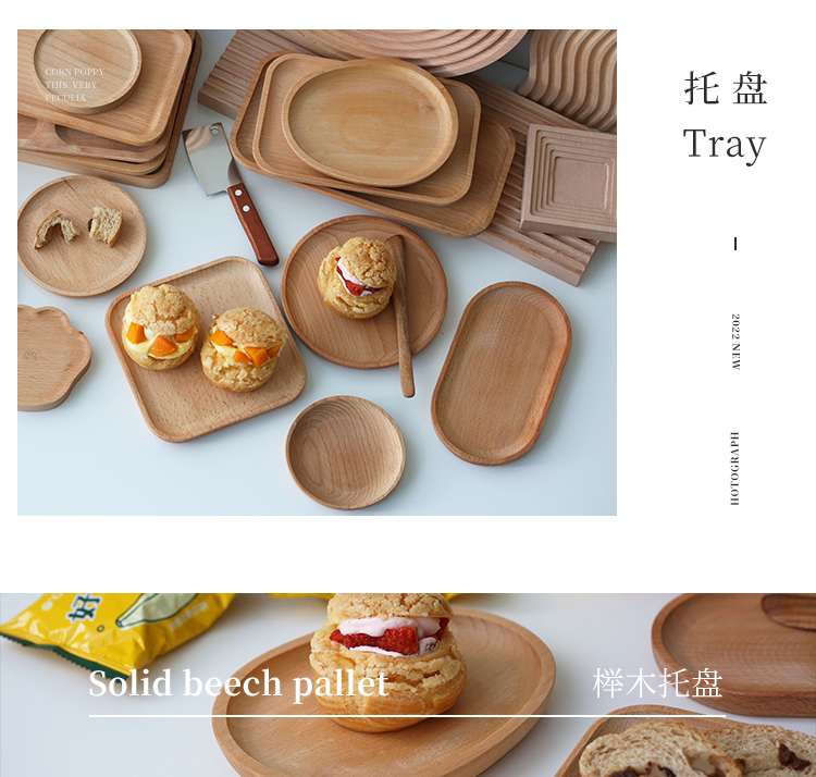 너도밤 나무 타원형 케이크 일본 스타일 나무 접시 신선한 Ins Dim Sum 가정용 디너 플레이트 나무 트레이