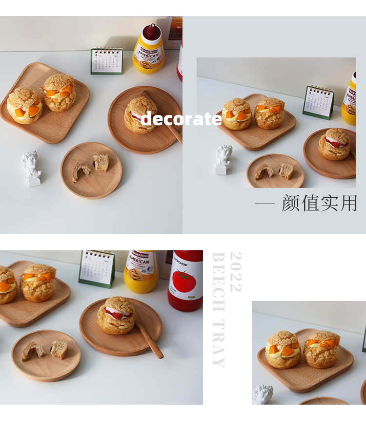 너도밤 나무 타원형 케이크 일본 스타일 나무 접시 신선한 Ins Dim Sum 가정용 디너 플레이트 나무 트레이스토어 가기