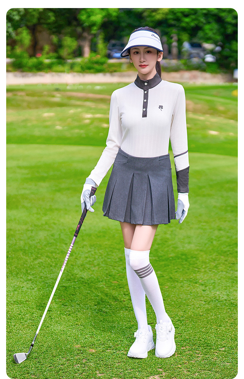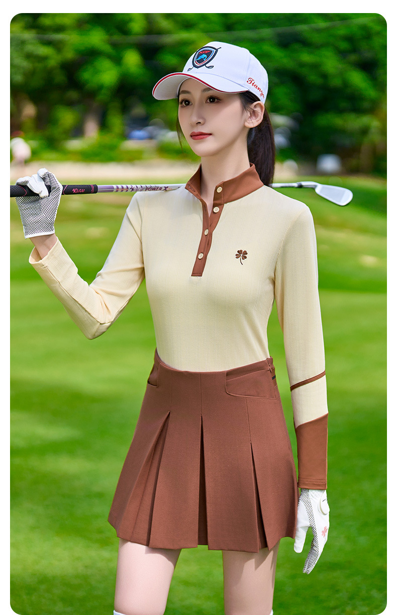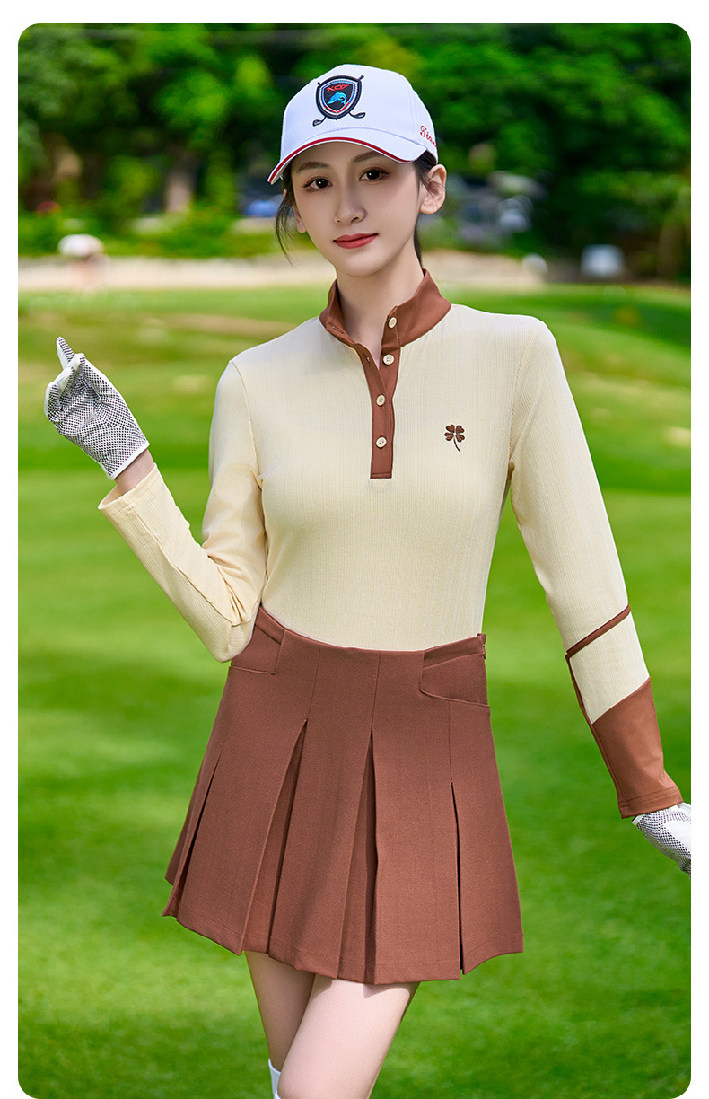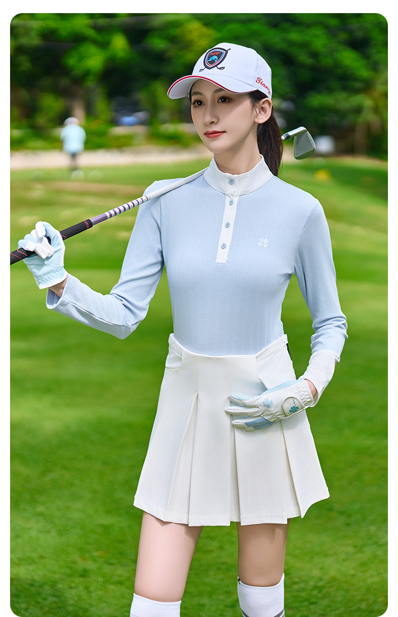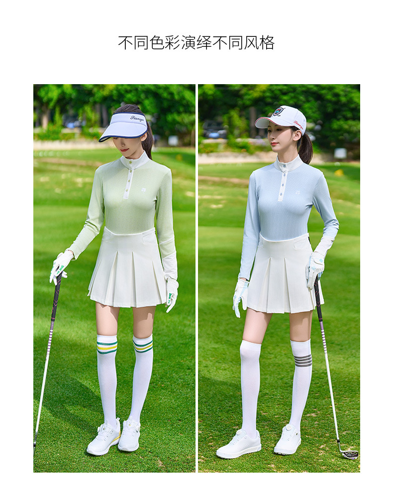 여성용 골프웨어 2025 가을 신상 슬림핏 스탠드 칼라 캐주얼 다용도 스포츠 스타일 긴팔 상의 티셔츠스토어 가기