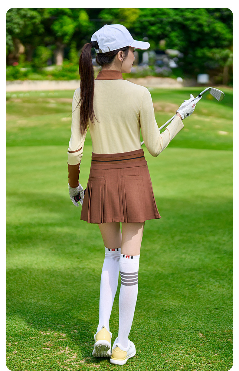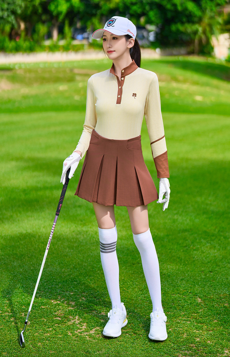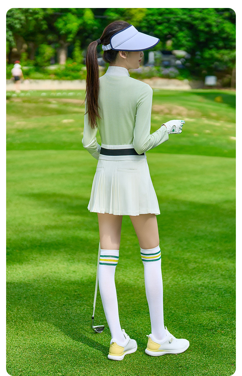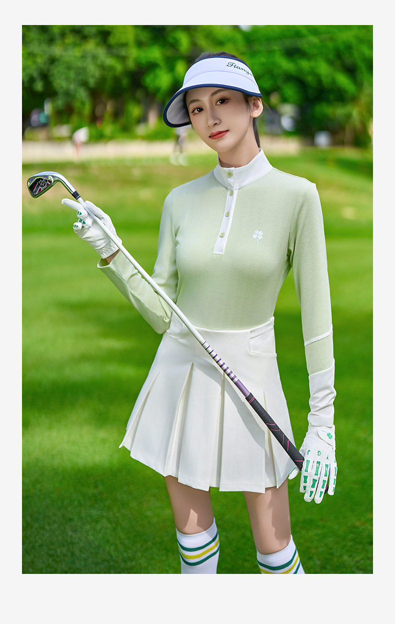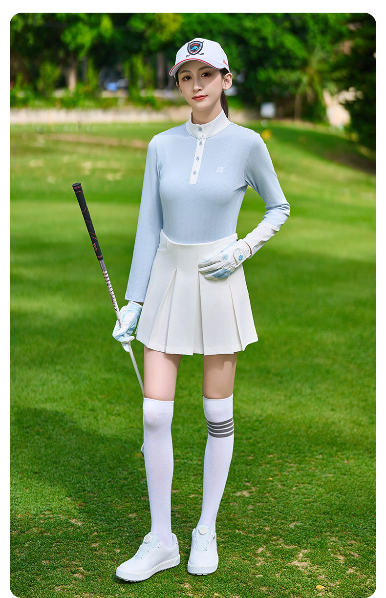 여성용 골프웨어 2025 가을 신상 슬림핏 스탠드 칼라 캐주얼 다용도 스포츠 스타일 긴팔 상의 티셔츠스토어 가기