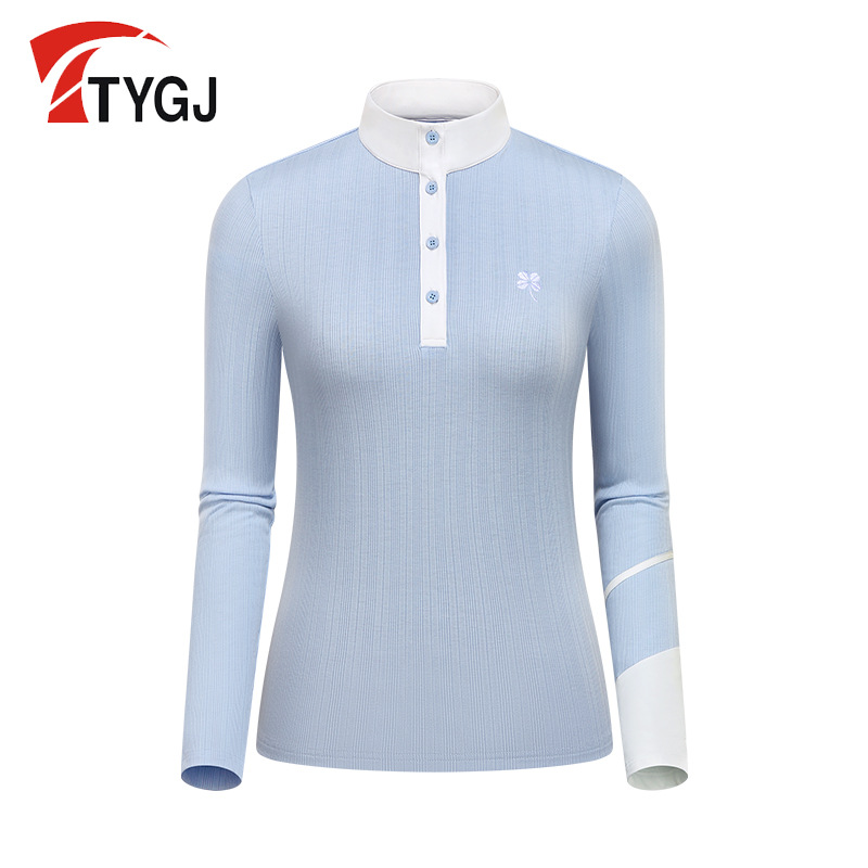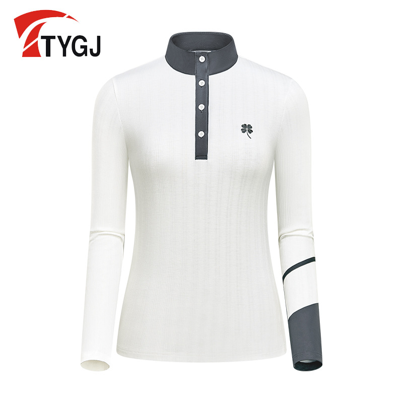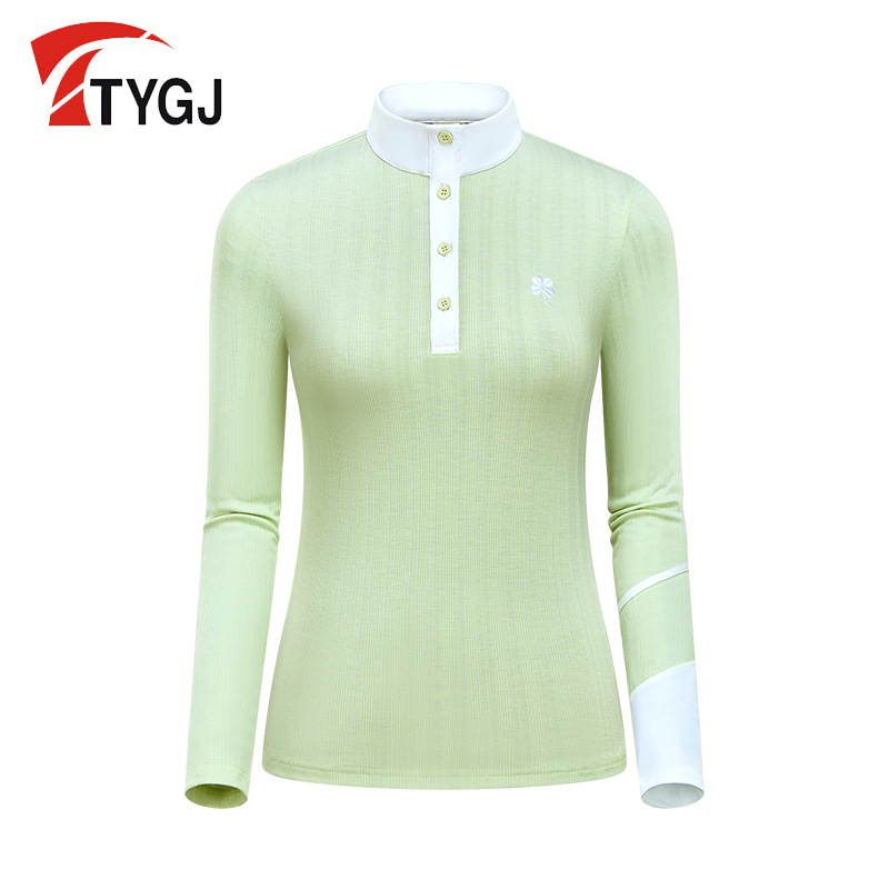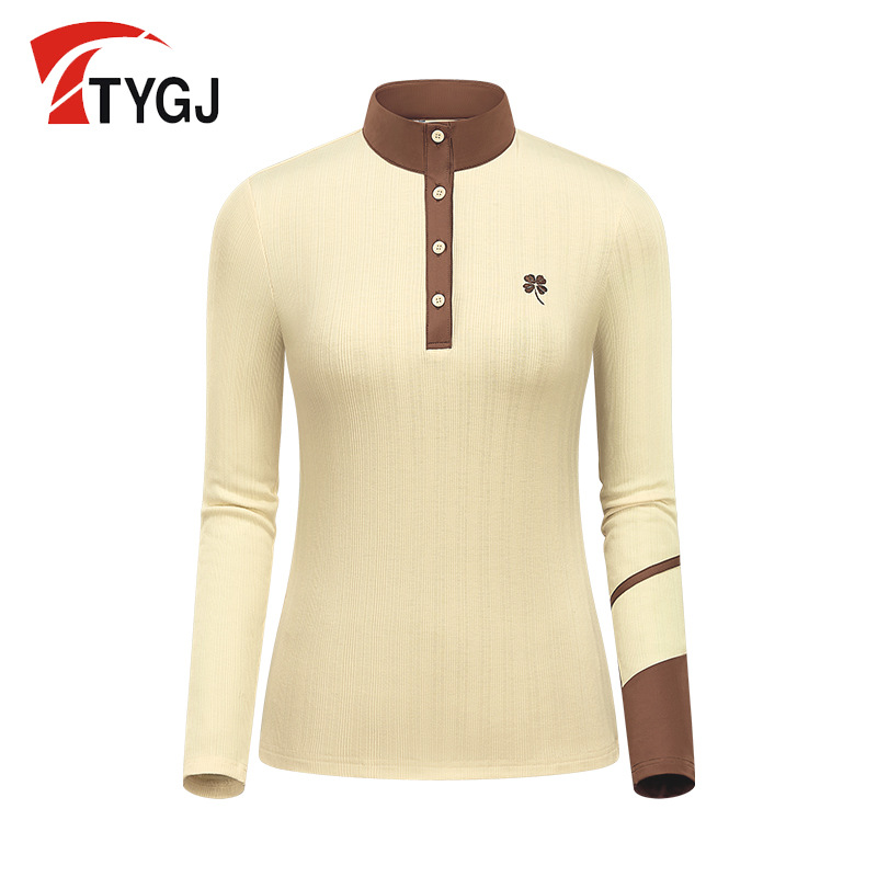 여성용 골프웨어 2025 가을 신상 슬림핏 스탠드 칼라 캐주얼 다용도 스포츠 스타일 긴팔 상의 티셔츠