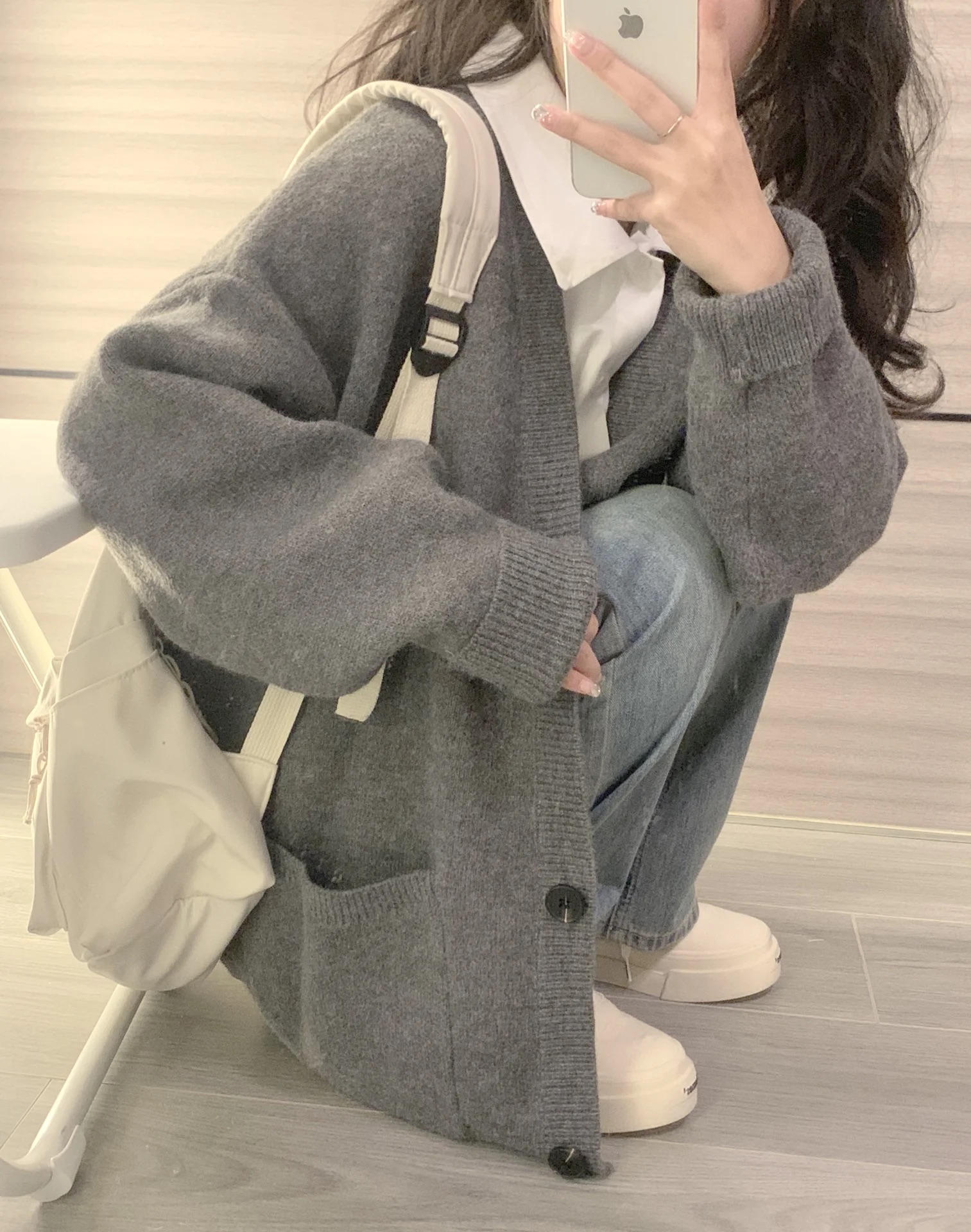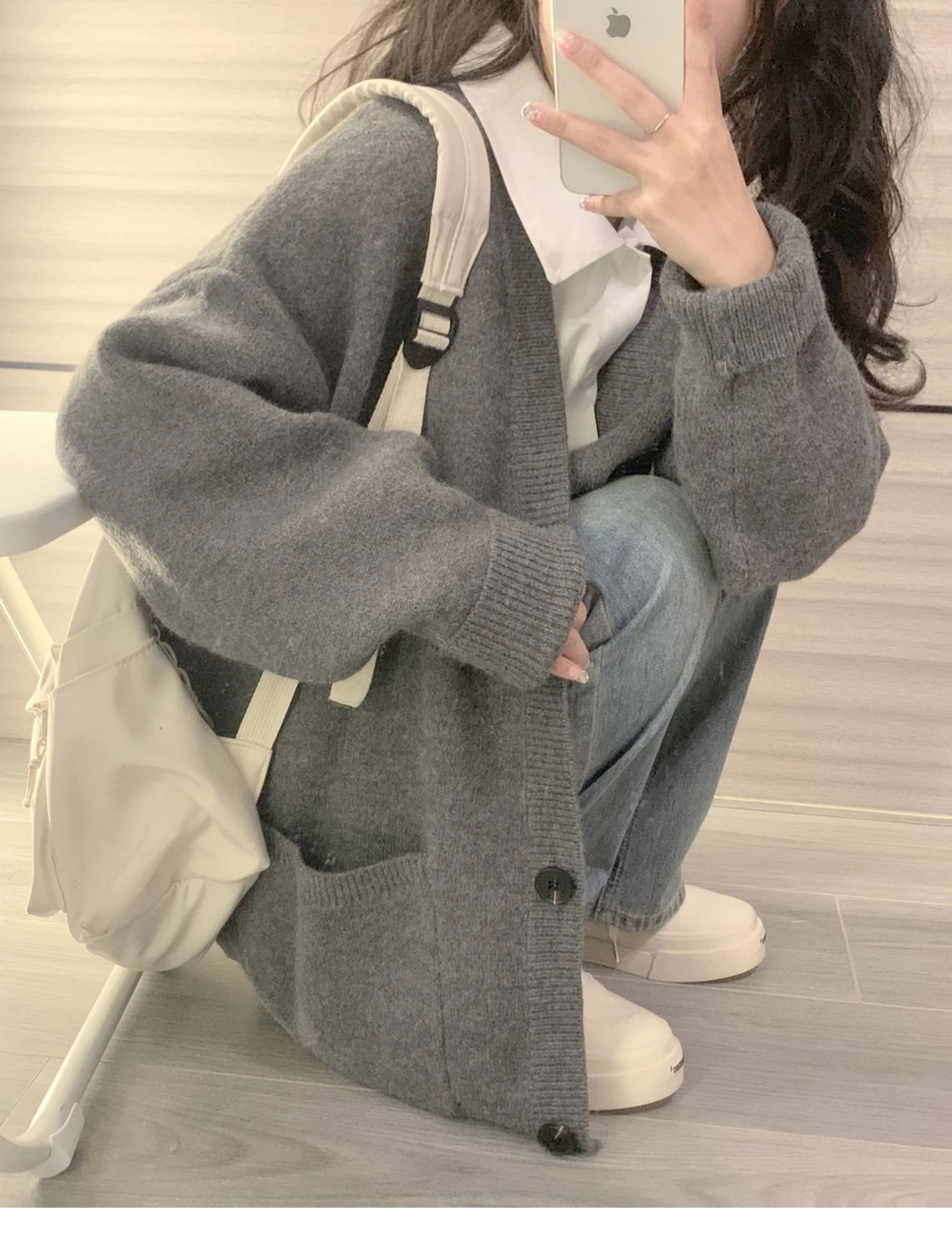 소프트 왁스 게으른 스타일 스웨터 카디건 여성 2024 봄과 가을 새로운 한국 스타일 V-Neck 이른 봄 니트 자켓스토어 가기