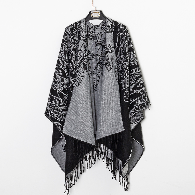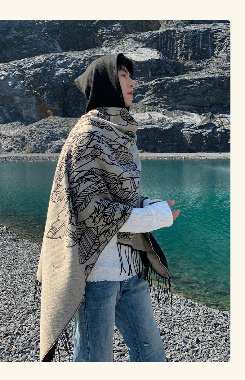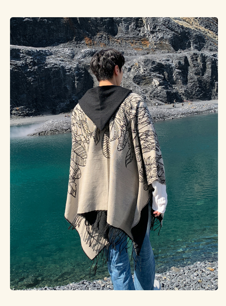관광 틈새 에어컨 모방 캐시미어 후드 망토 가을과 겨울 따뜻한 양면 민족 망토 남성과 여성의 망토 스카프 트렌디스토어 가기