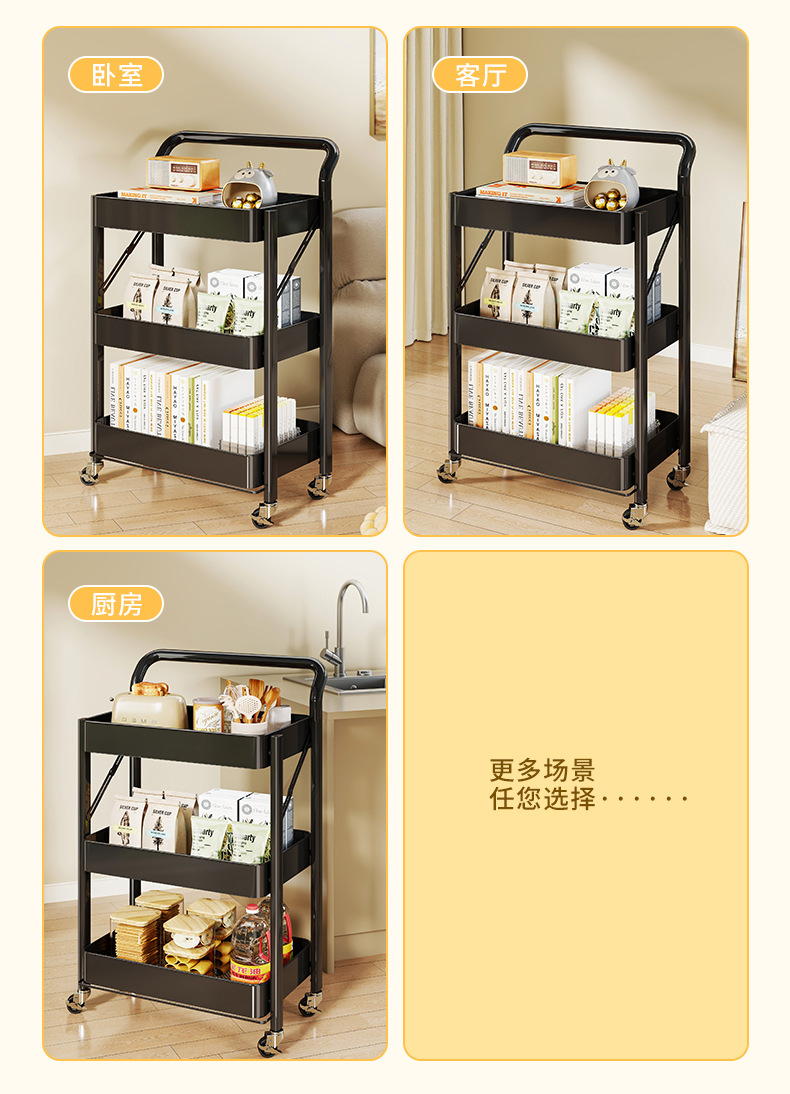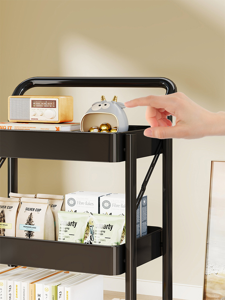 트롤리 스토리지 랙 이동식 바닥 스탠딩 스토리지 랙 주방 스토리지 랙 용 스낵 스토리지 랙 접이식 책꽂이