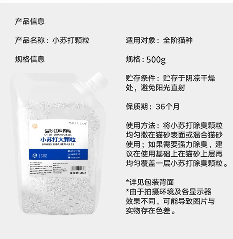 구운 소다 입자 고양이 쓰레기 반죽 애완 동물 방취제 유물 소변 처리 맛 제습 고양이 용품 특수 대형 입자