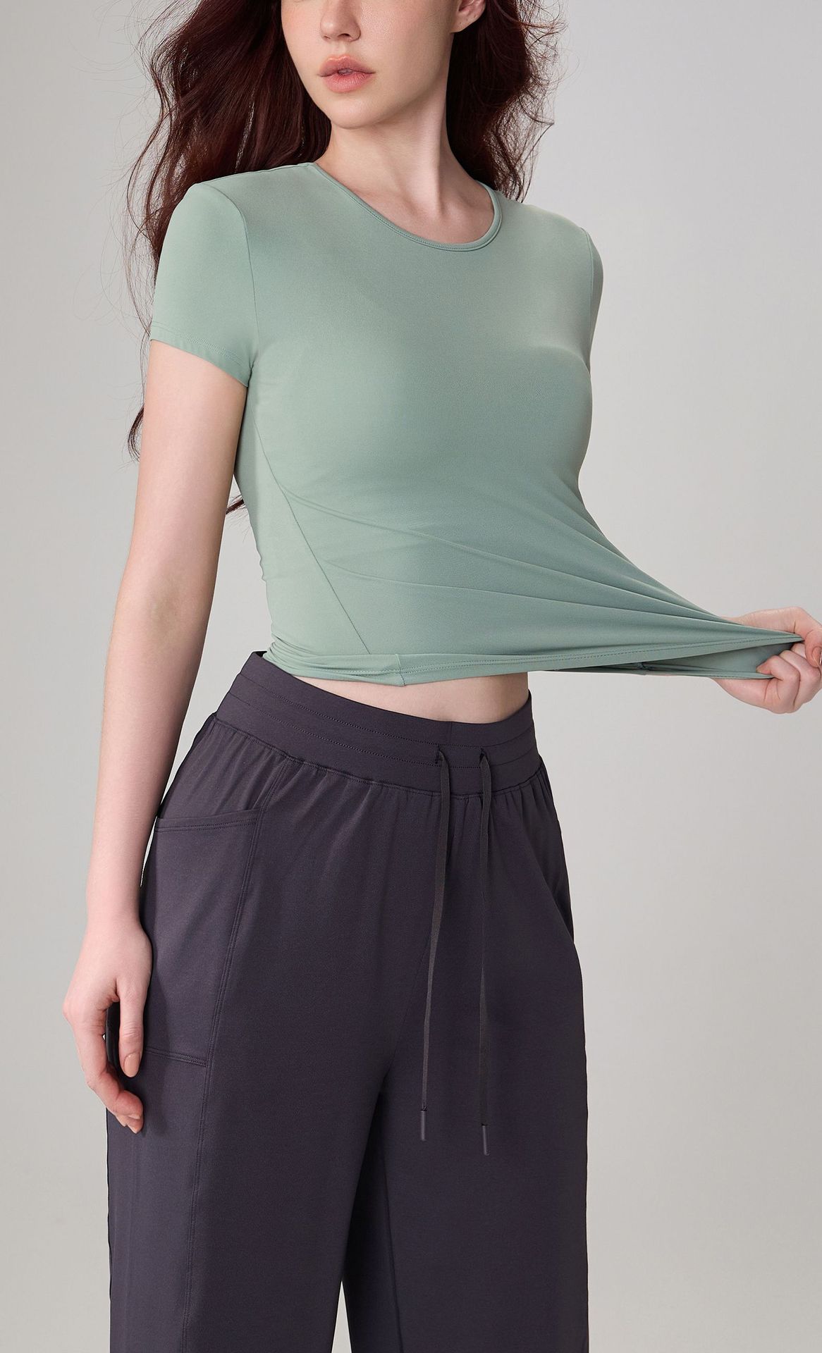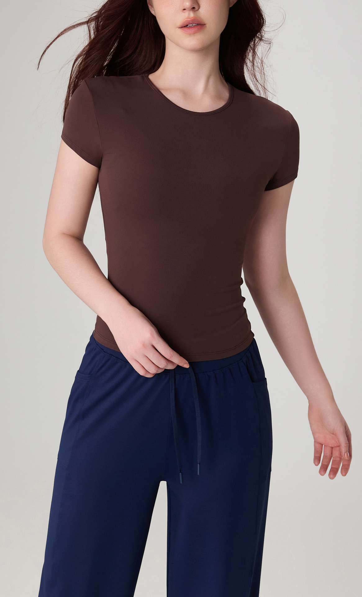 여성용 여름 타이트 라운드 넥 누드 요가 티셔츠, 슬림하고 다재다능한 피트니스 반팔 하이 엔드 캐주얼 스포츠 탑스토어 가기