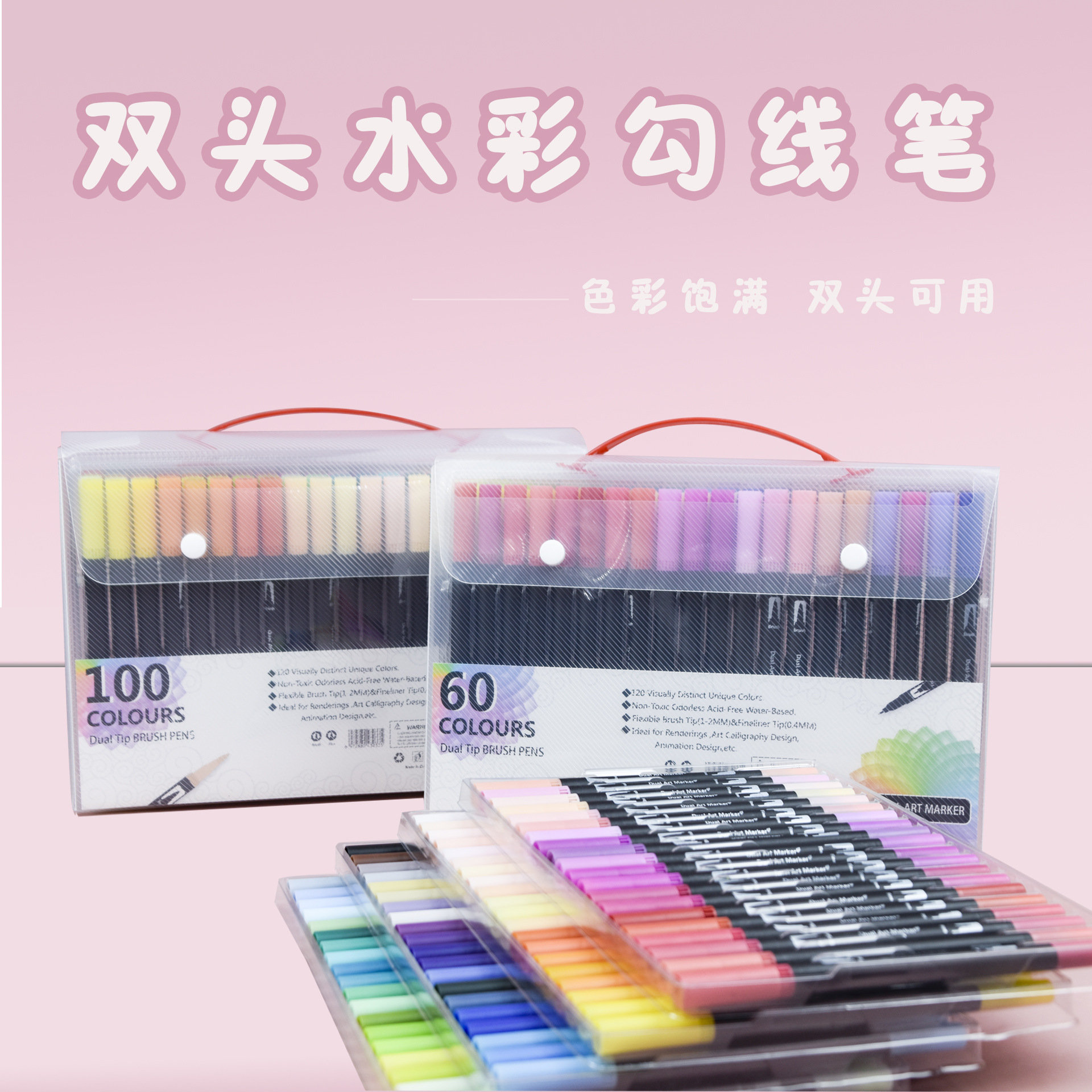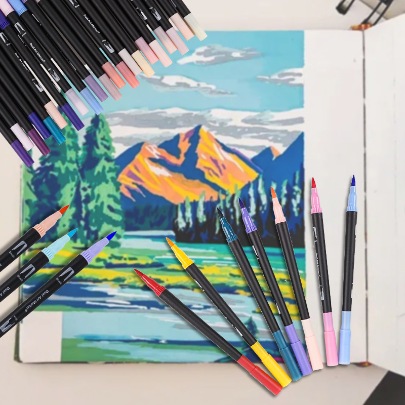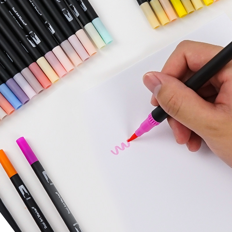 부드러운 머리 양두 수채화 펜 60-100 컬러 세트 Gouline 펜 그림 어린이 펜 다기능 문구