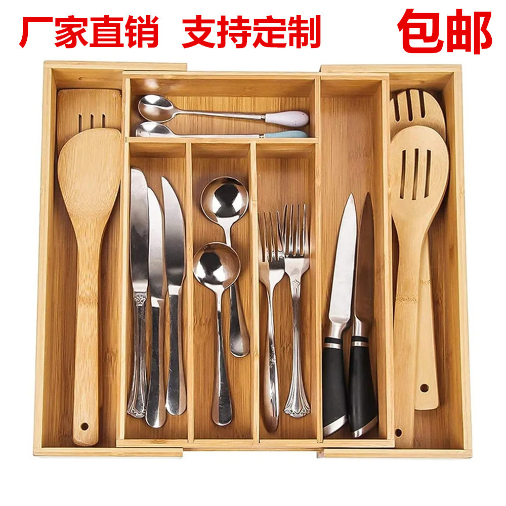 厨房餐具刀具锅铲 收纳盒bamboo伸缩收纳盒竹制品 木制品kitchen