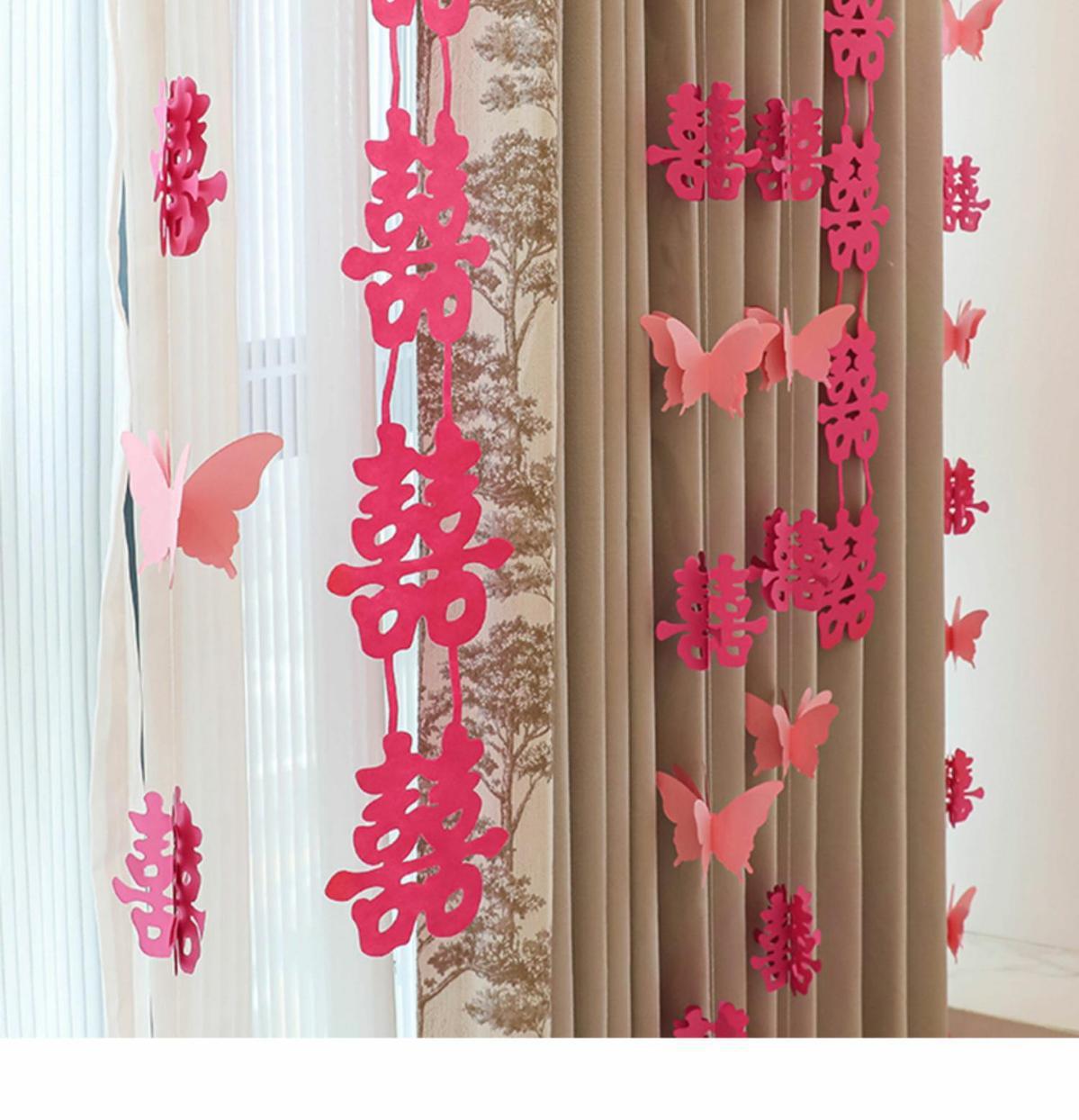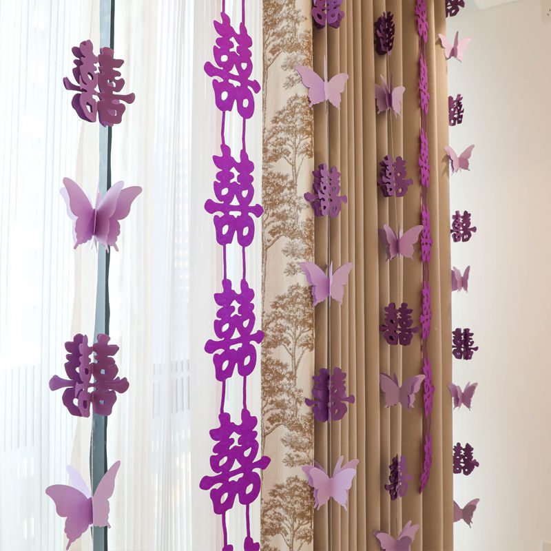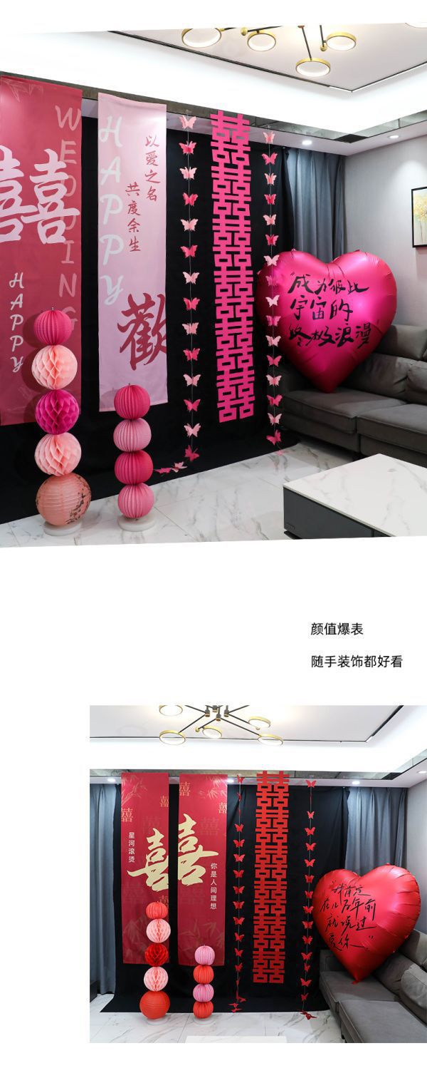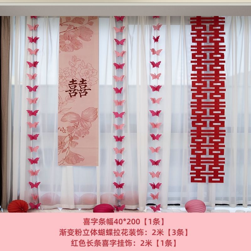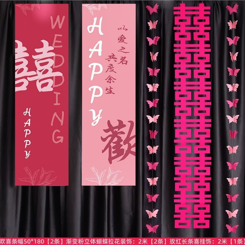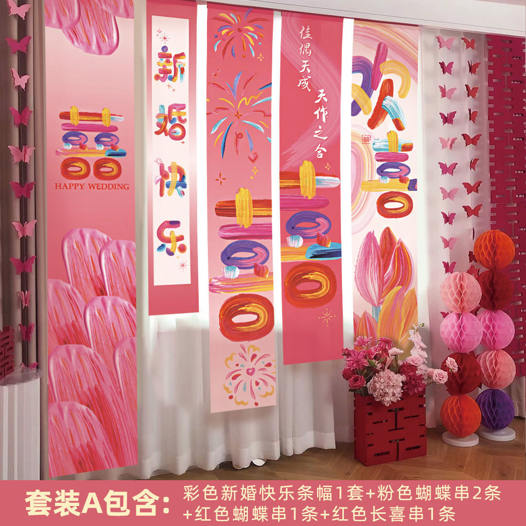 웨딩 교수형 천 다채로운 파우더 해피 캐릭터 배너 웨딩 룸 배열 침실 나비 긴 해피 캐릭터 모닝 로브 사진 배경 장식
