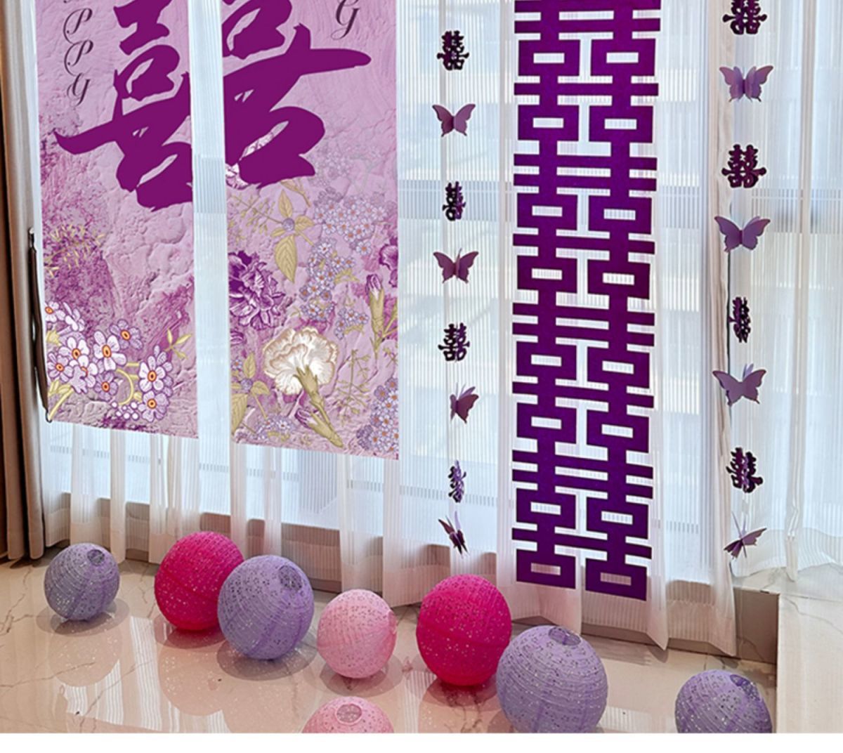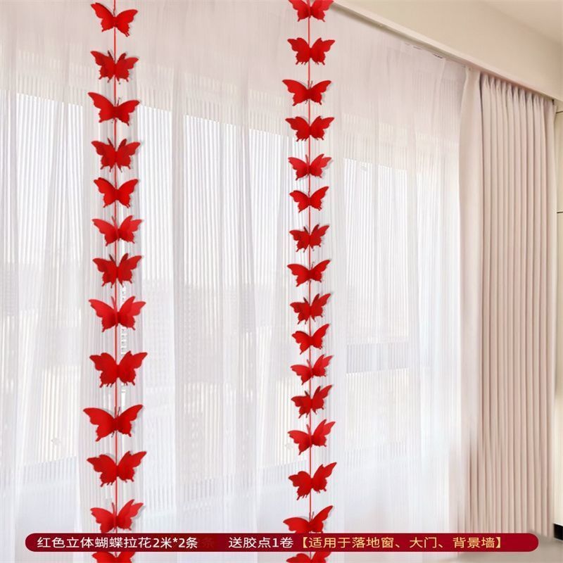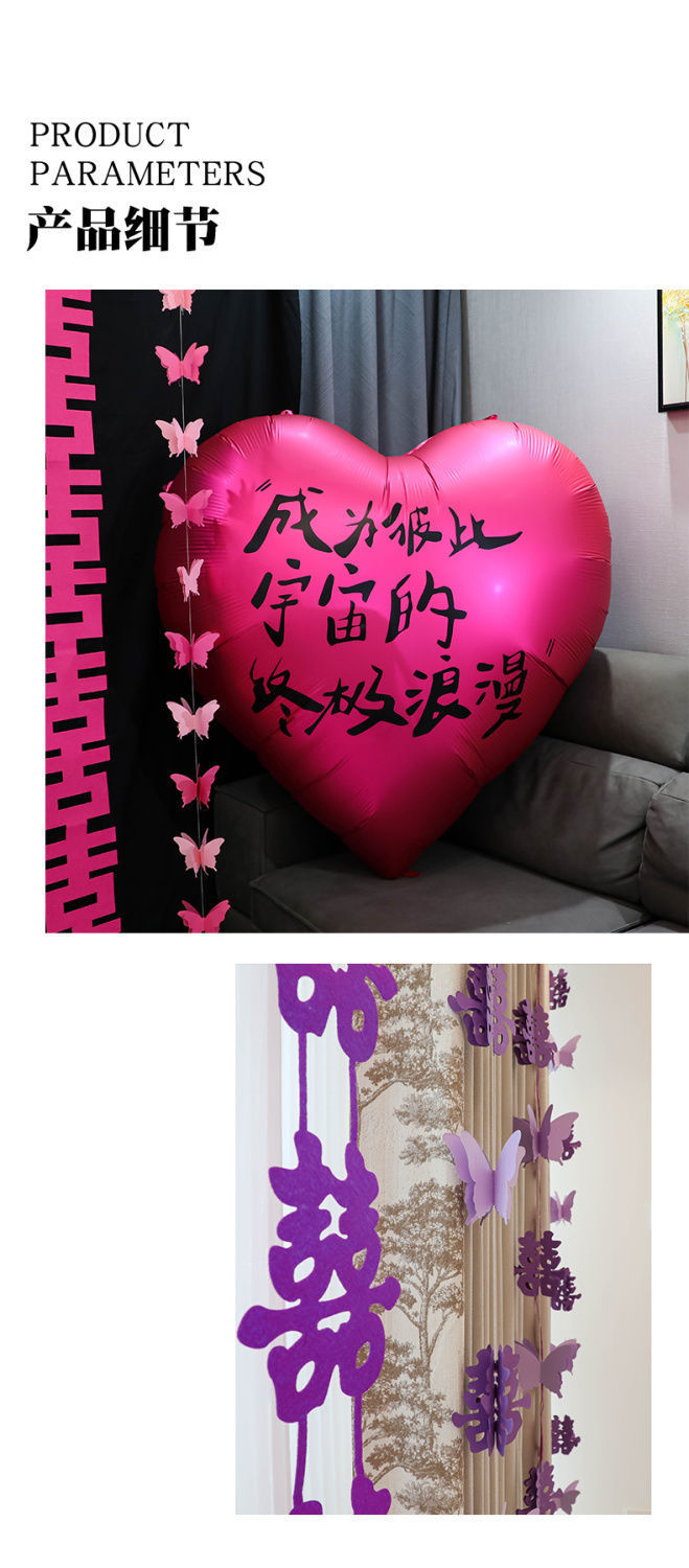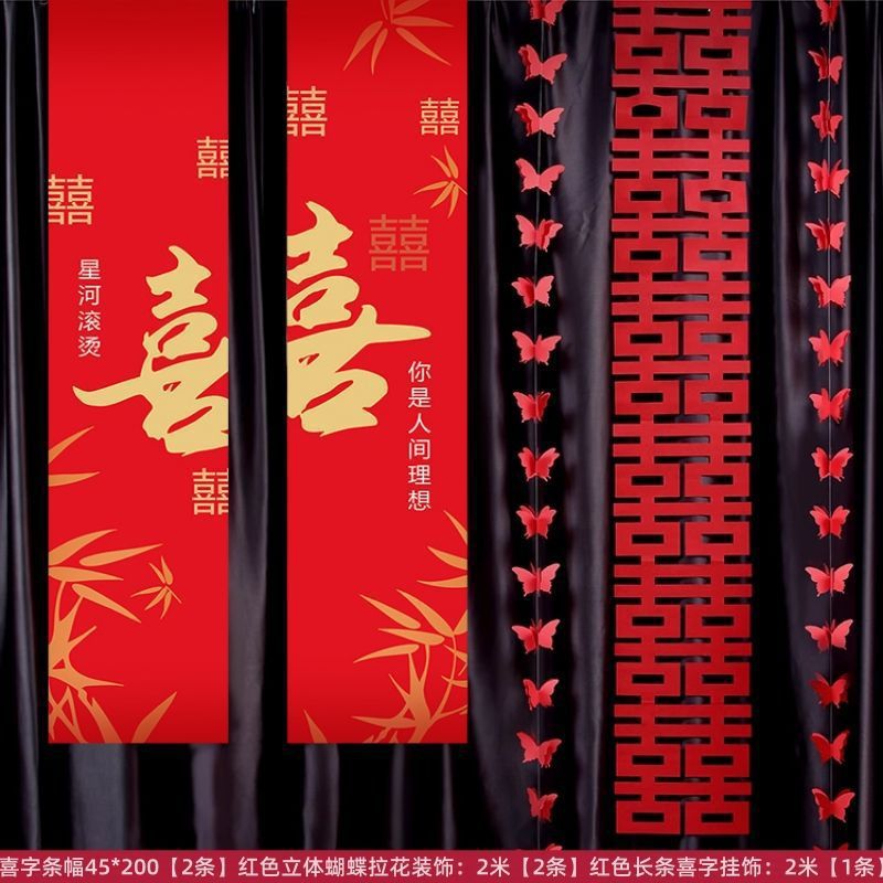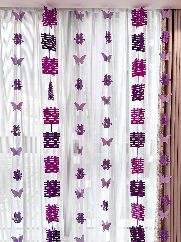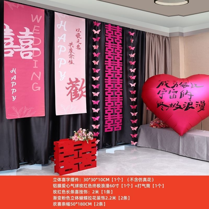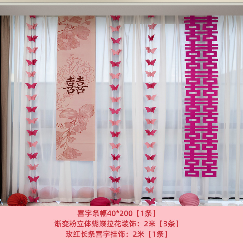 웨딩 교수형 천 다채로운 파우더 해피 캐릭터 배너 웨딩 룸 배열 침실 나비 긴 해피 캐릭터 모닝 로브 사진 배경 장식