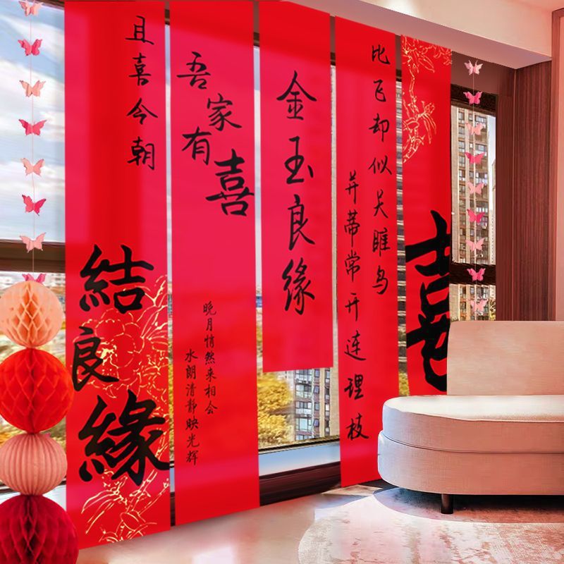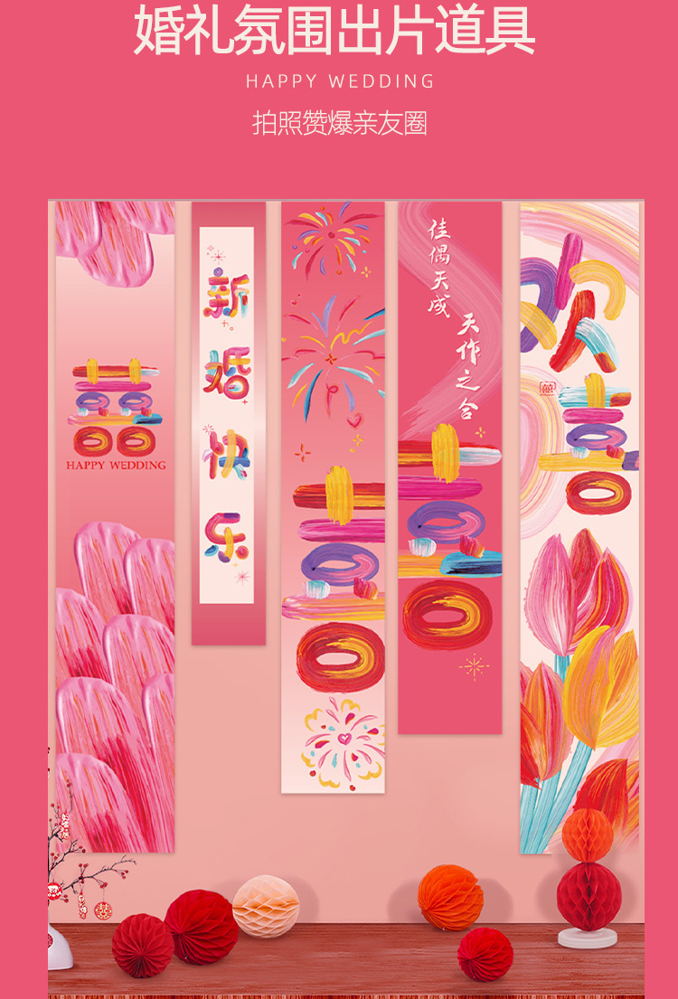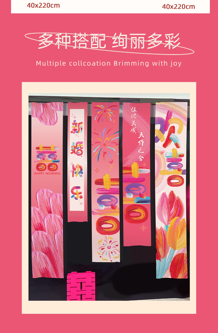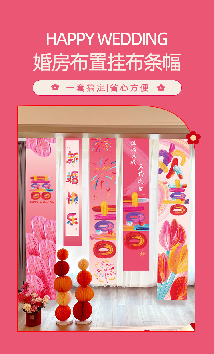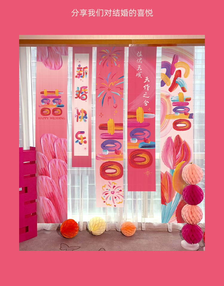 웨딩 교수형 천 다채로운 파우더 해피 캐릭터 배너 웨딩 룸 배열 침실 나비 긴 해피 캐릭터 모닝 로브 사진 배경 장식스토어 가기