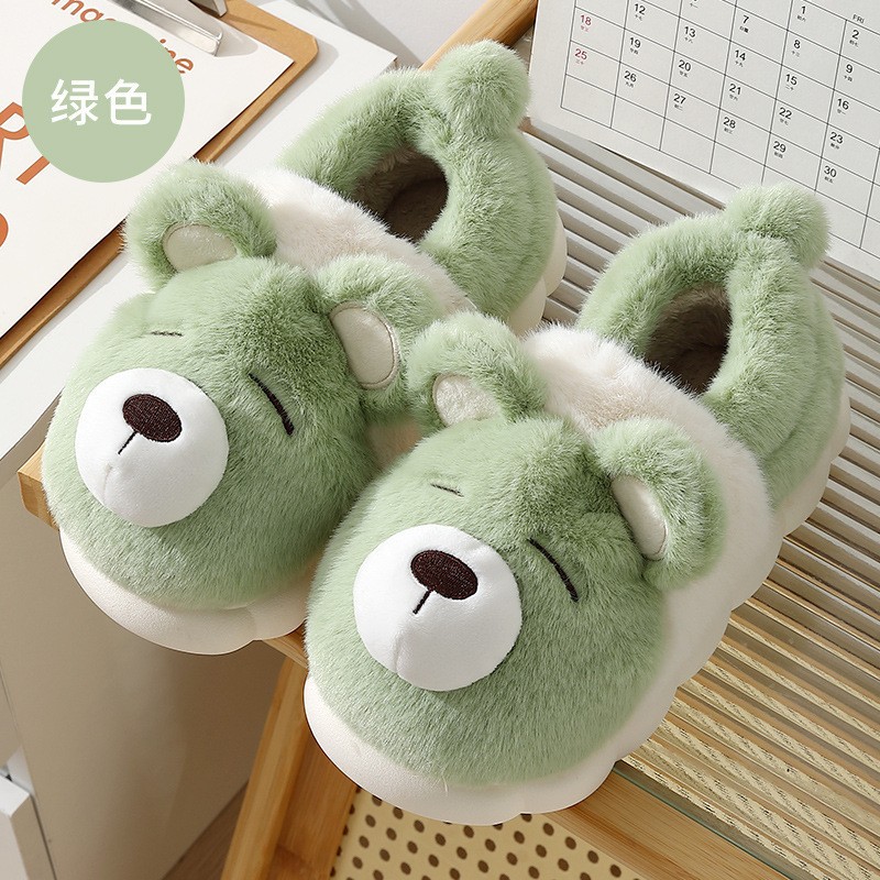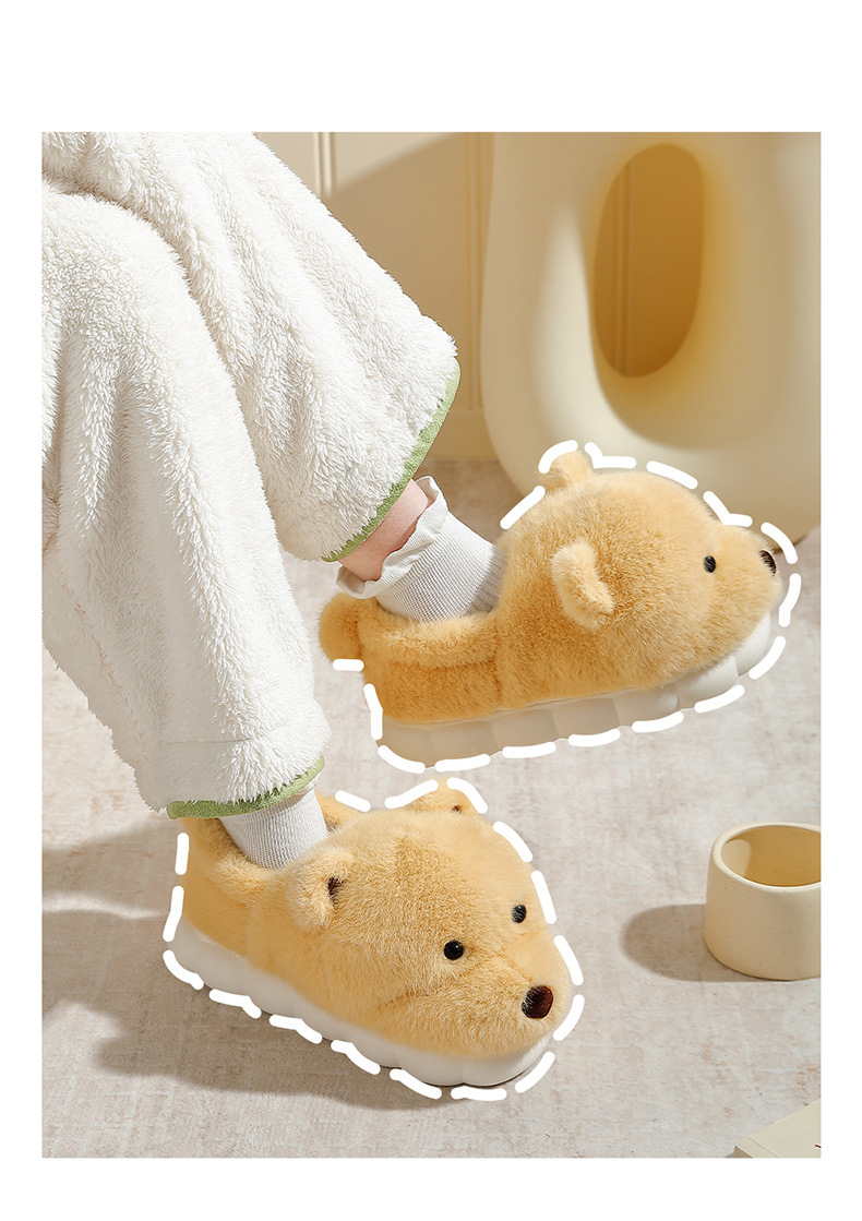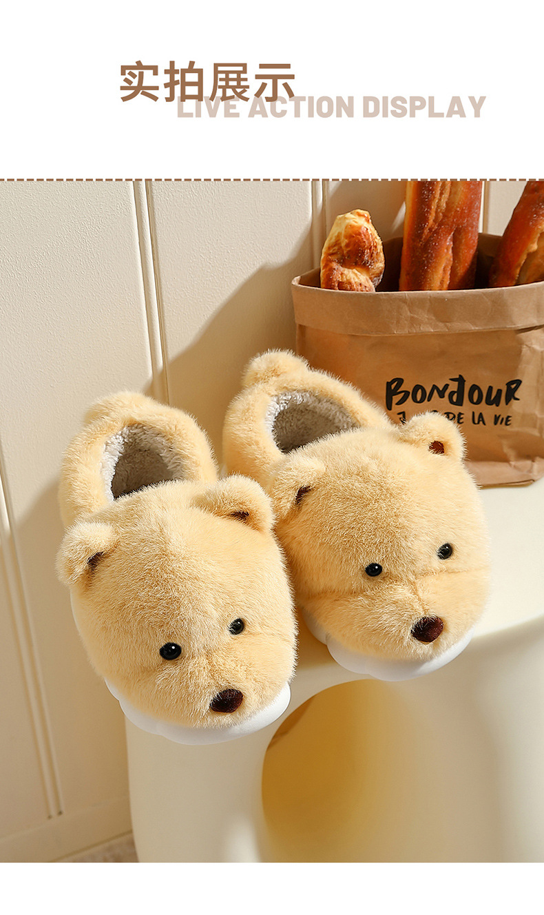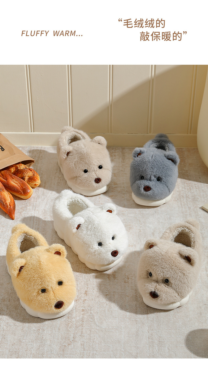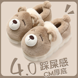 귀여운 곰돌이 모양의 여성용 겨울용 따뜻한 두꺼운 털 슬리퍼, 커플용 실내용 두꺼운 밑창 미끄럼 방지 덮개형 슬리퍼, 남성용스토어 가기