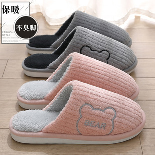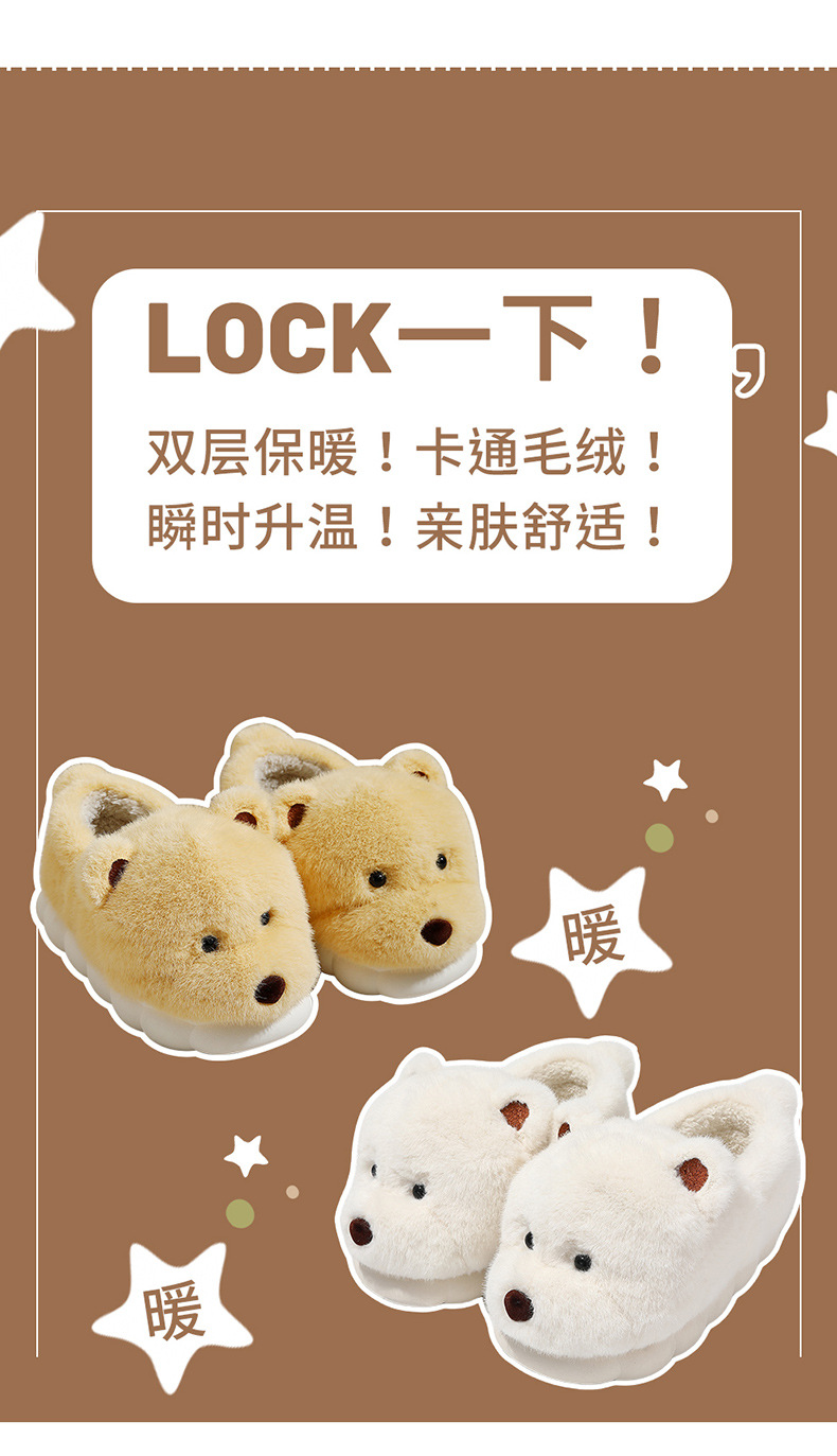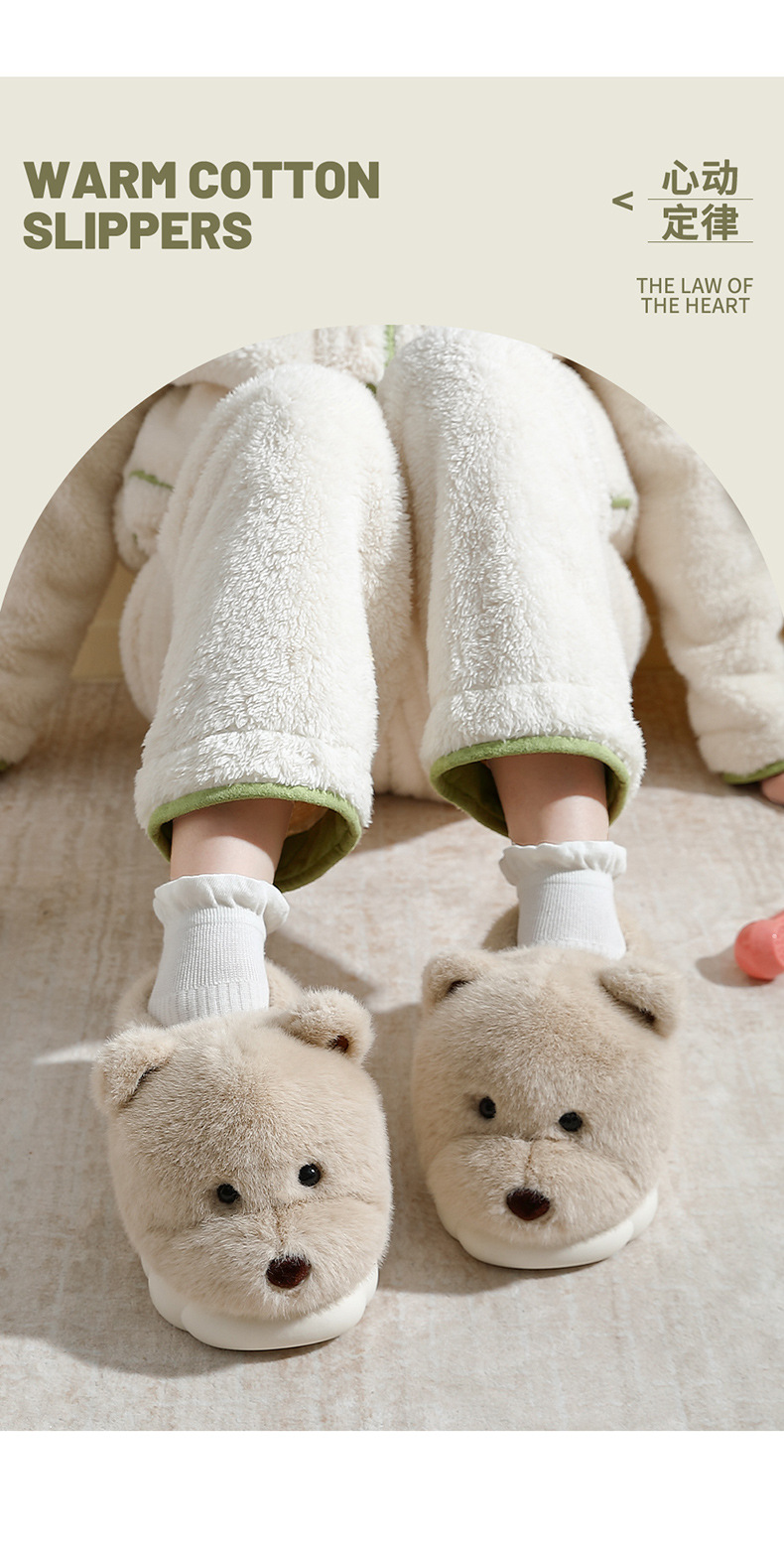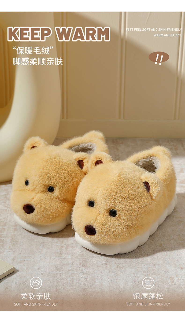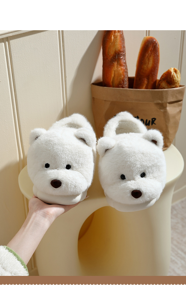 귀여운 곰돌이 모양의 여성용 겨울용 따뜻한 두꺼운 털 슬리퍼, 커플용 실내용 두꺼운 밑창 미끄럼 방지 덮개형 슬리퍼, 남성용스토어 가기