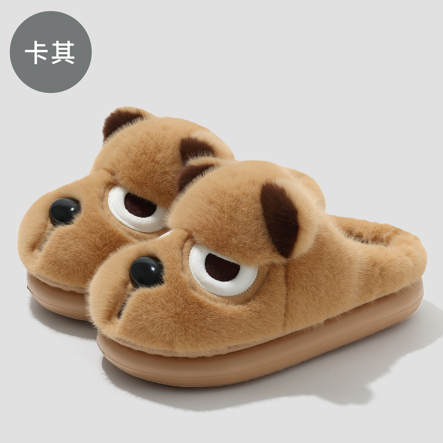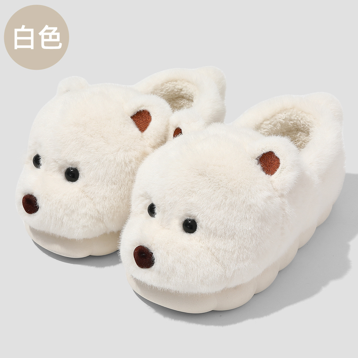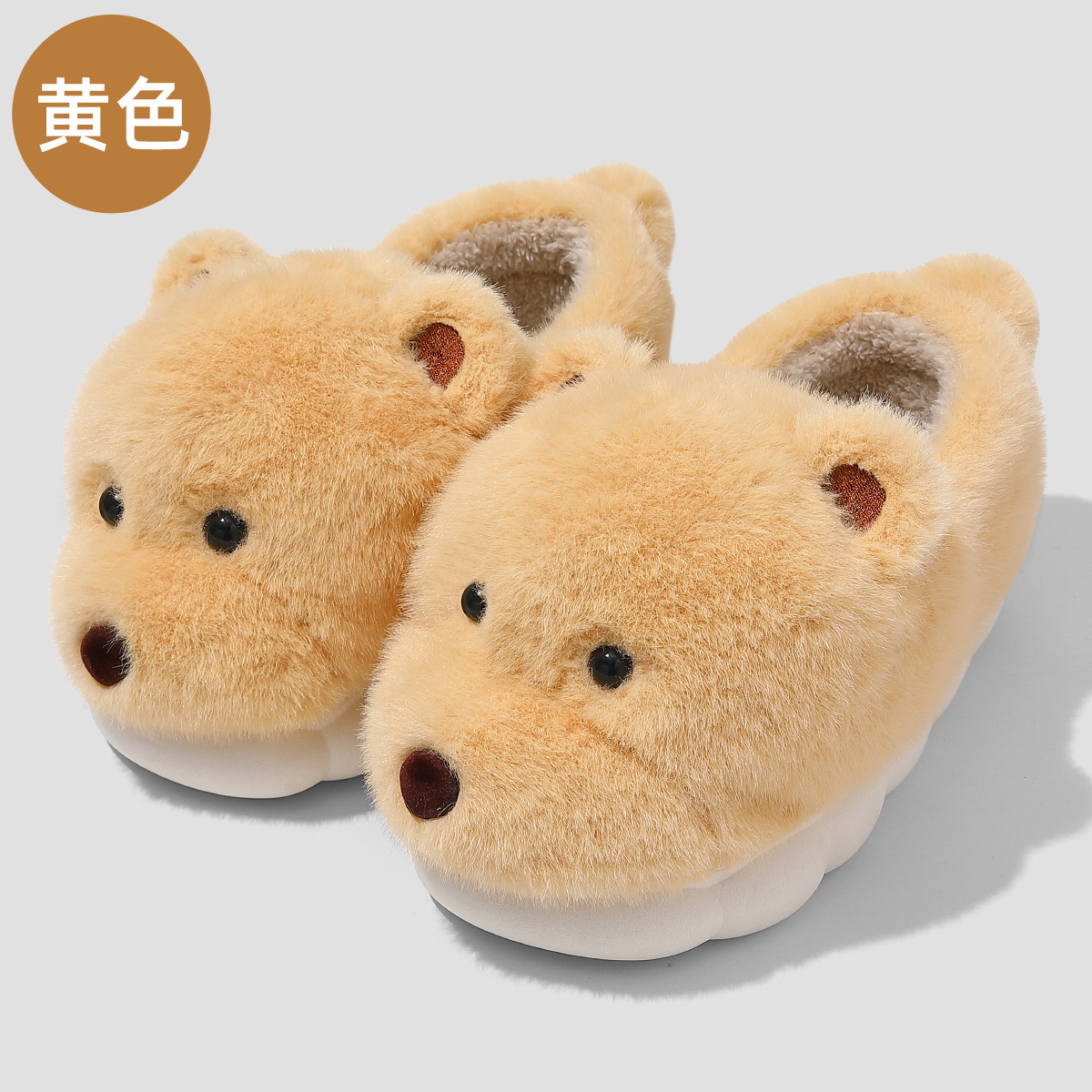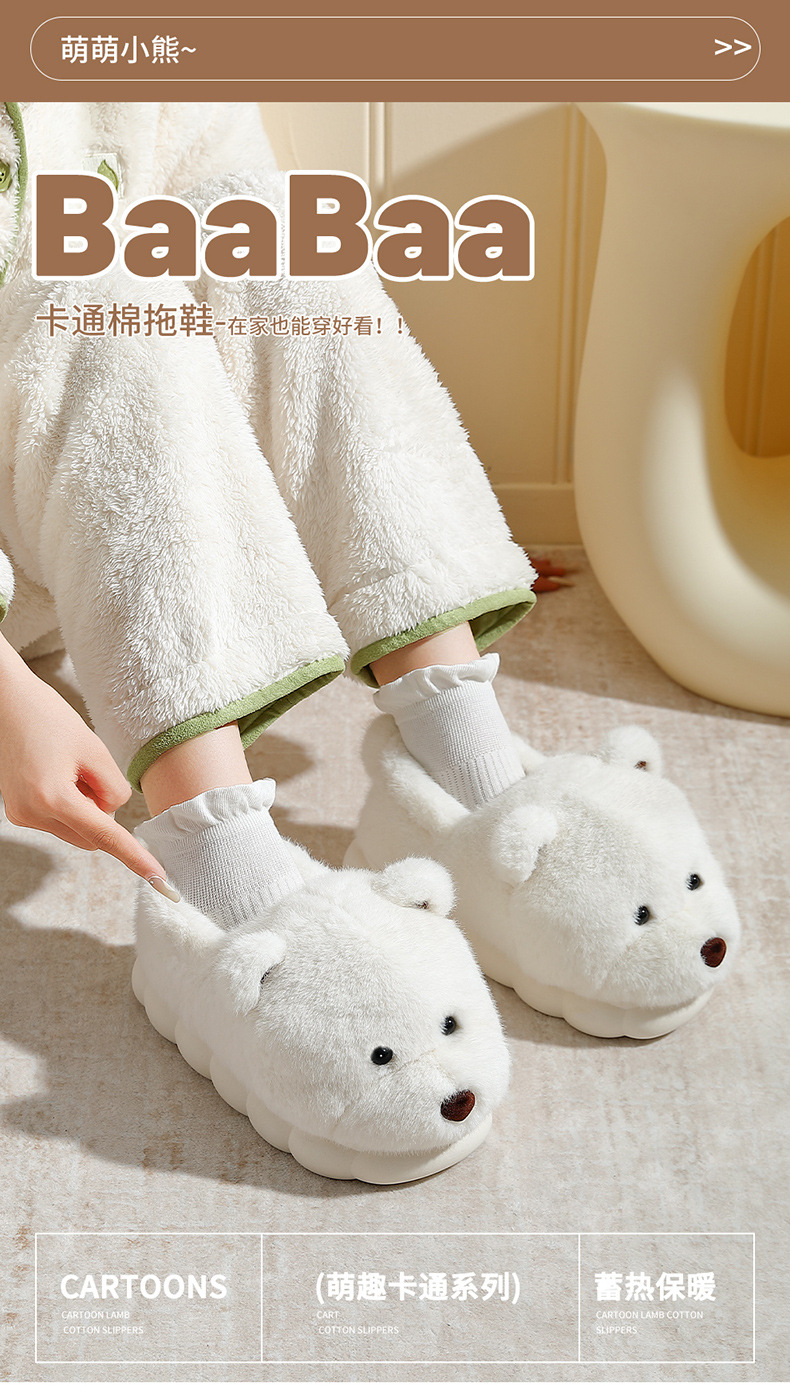 귀여운 곰돌이 모양의 여성용 겨울용 따뜻한 두꺼운 털 슬리퍼, 커플용 실내용 두꺼운 밑창 미끄럼 방지 덮개형 슬리퍼, 남성용스토어 가기