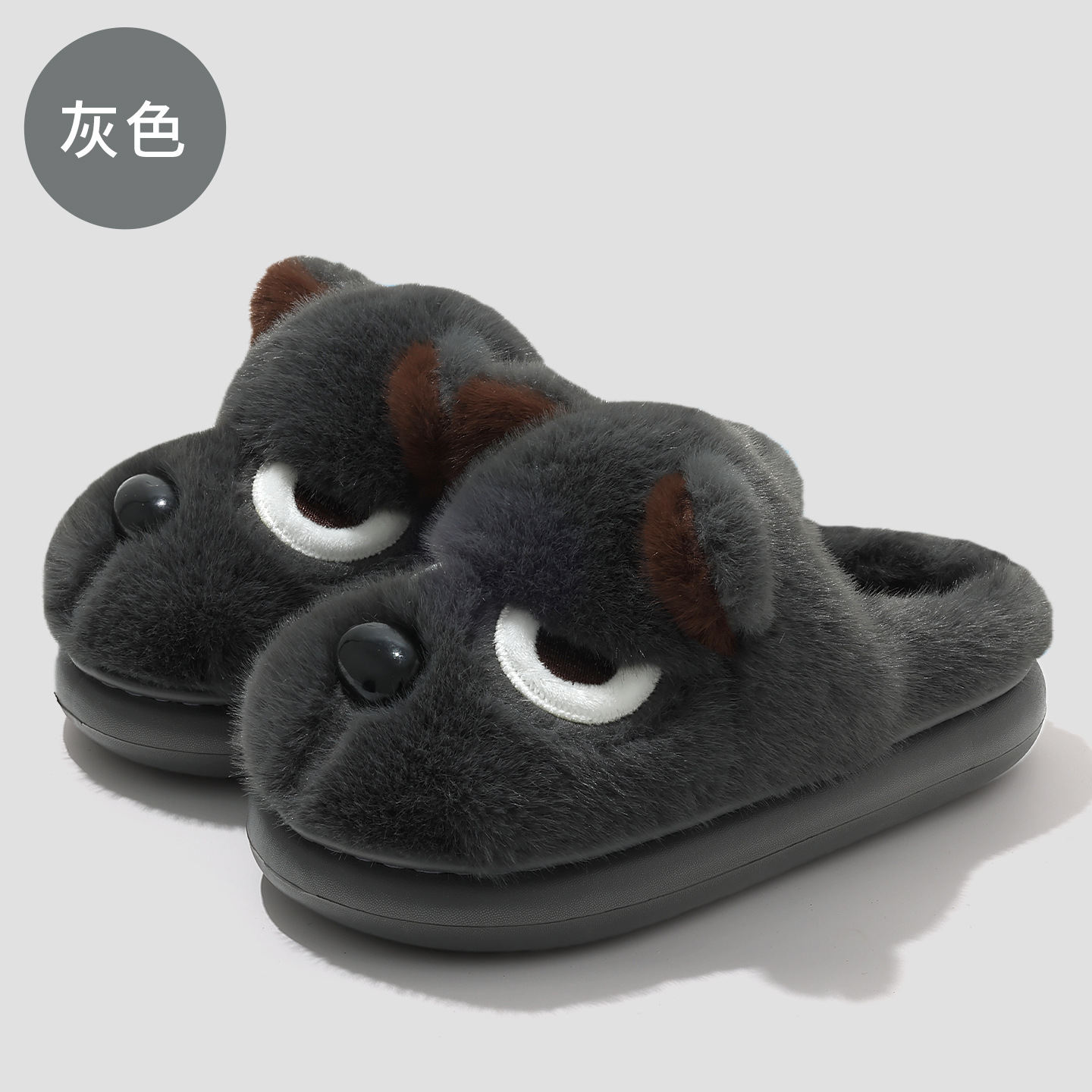 귀여운 곰돌이 모양의 여성용 겨울용 따뜻한 두꺼운 털 슬리퍼, 커플용 실내용 두꺼운 밑창 미끄럼 방지 덮개형 슬리퍼, 남성용