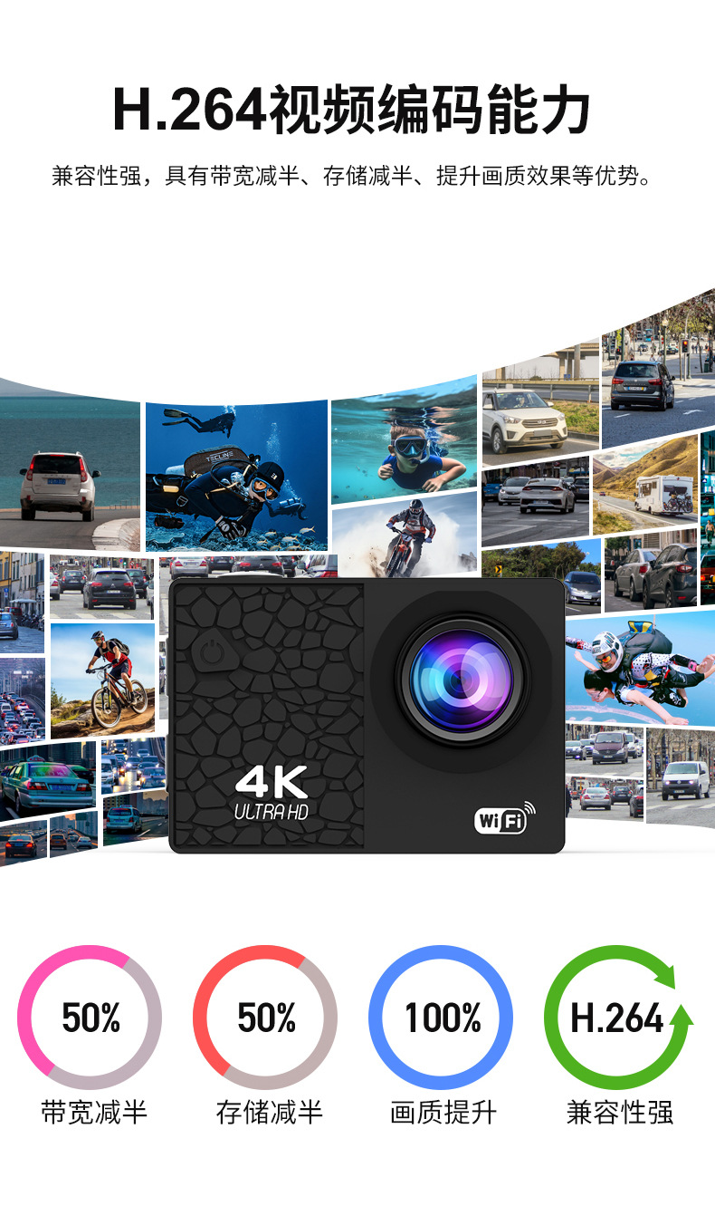 4K 야외 안티 쉐이크 스포츠 카메라 와이파이 무선 촬영 승마 카메라 높은 내구성 미니 레코더