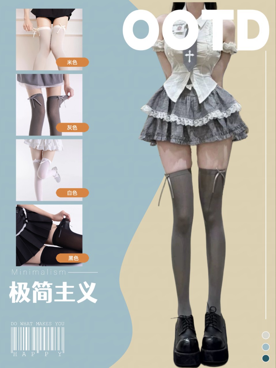 로리타 양말 리본 작은 활 연기 회색 긴 무릎-무릎 칼리지 스타일 JK 양말 중간 튜브