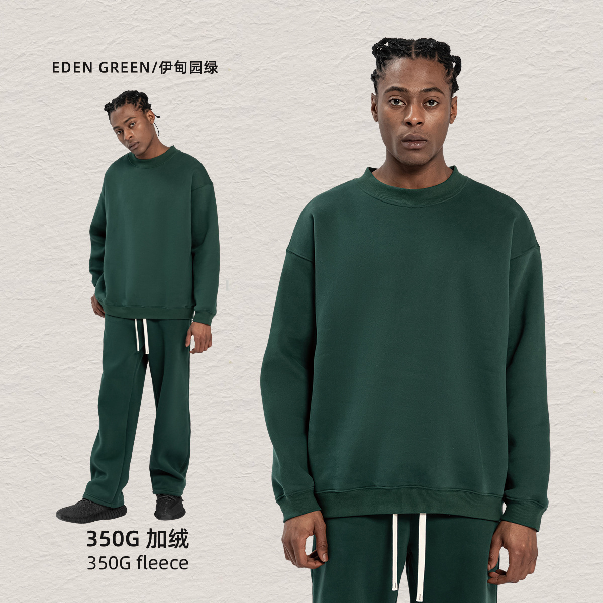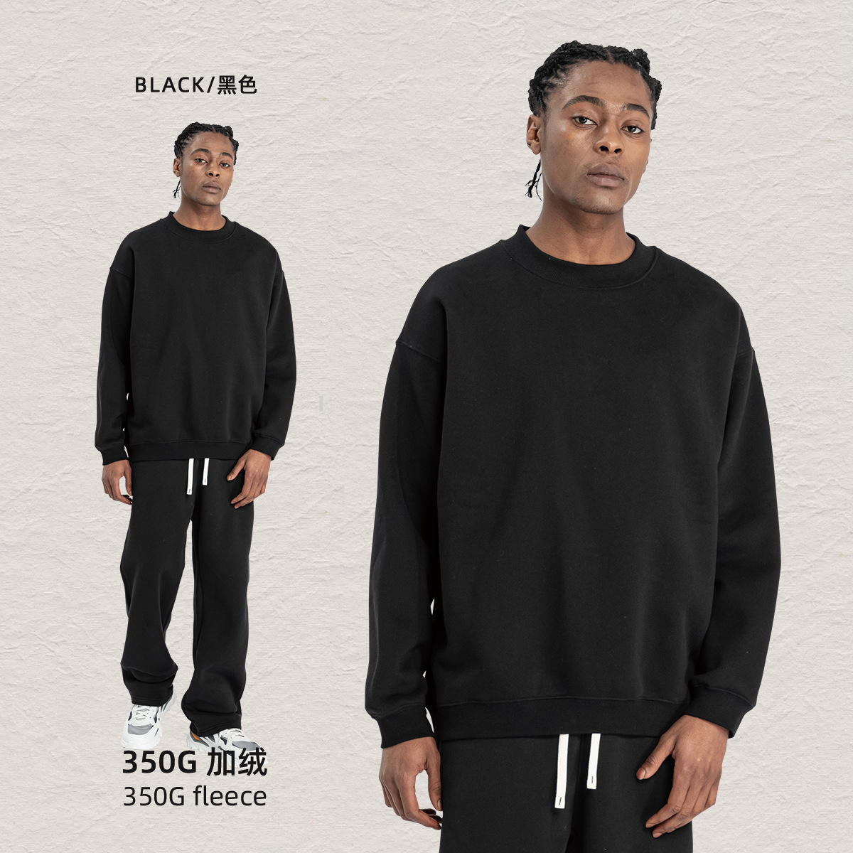 KITE 350g 기모 두꺼운 크루 넥 땀 남자 오비에르 가을 겨울 양털 패션 브랜드 루즈 남성 탑스토어 가기