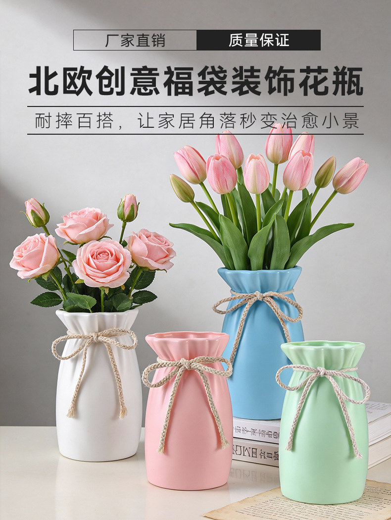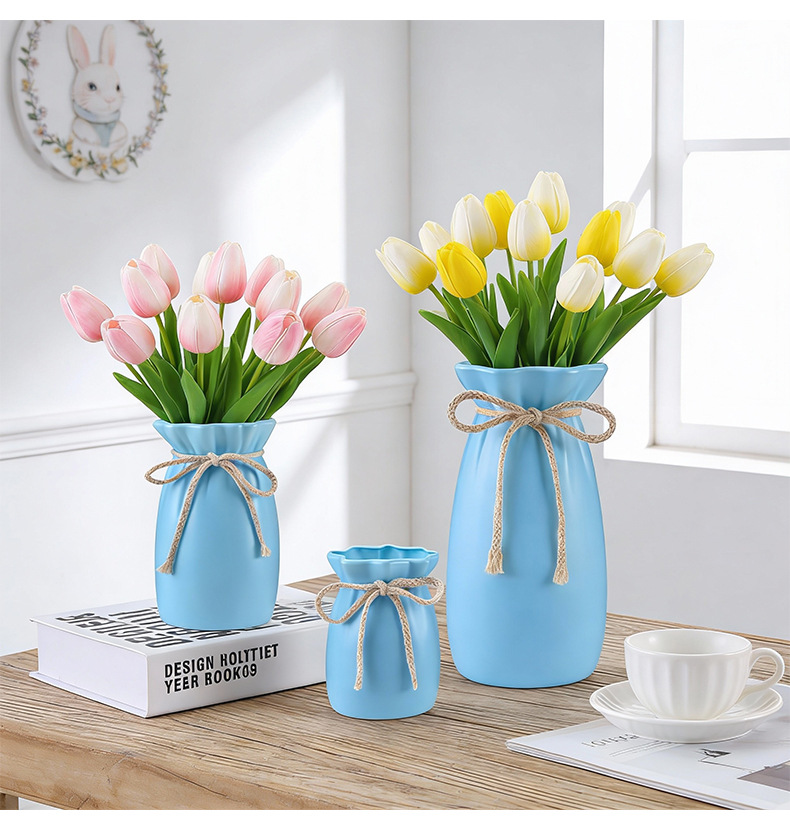 공장 도매 플라스틱 꽃병 모방 꽃 장식 꽃병 거실 튤립 꽃꽂이 장식품 모방 세라믹 블로우 성형 병스토어 가기