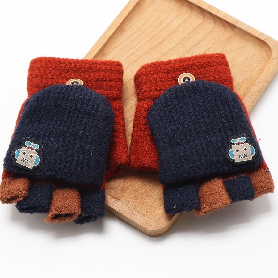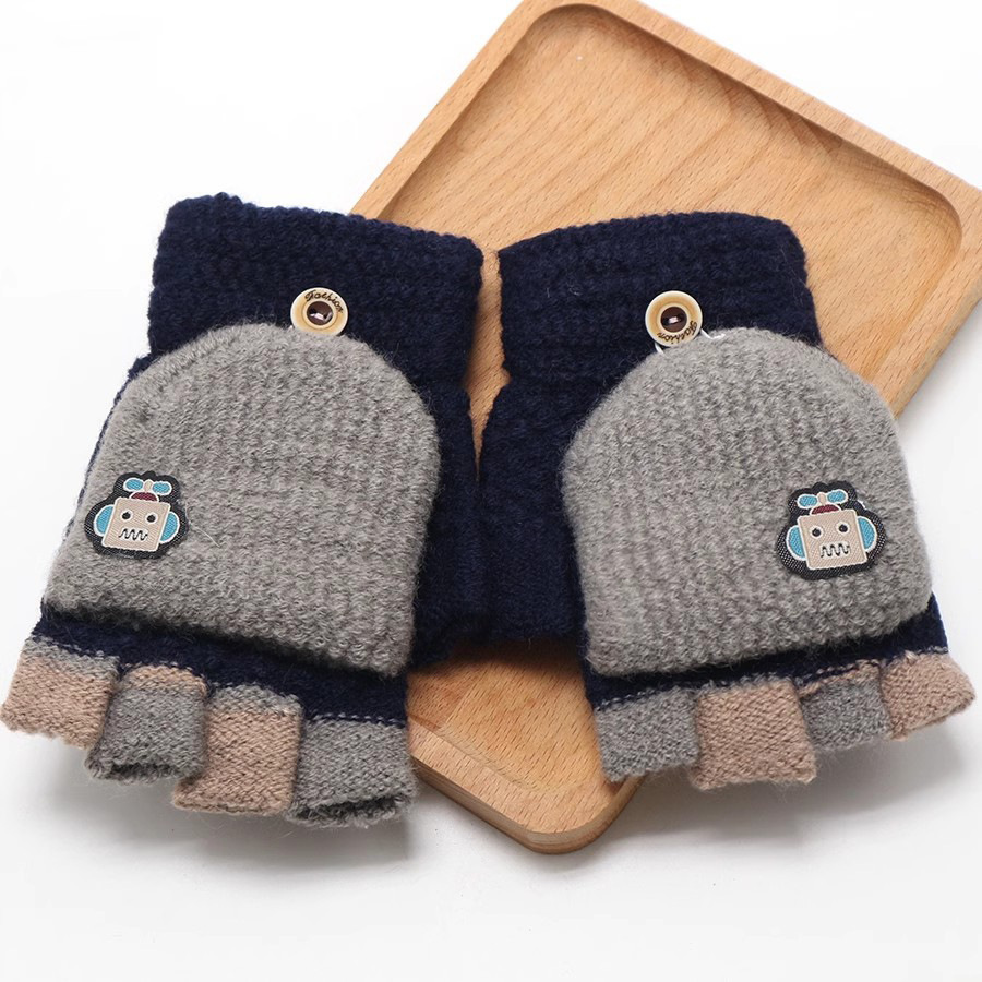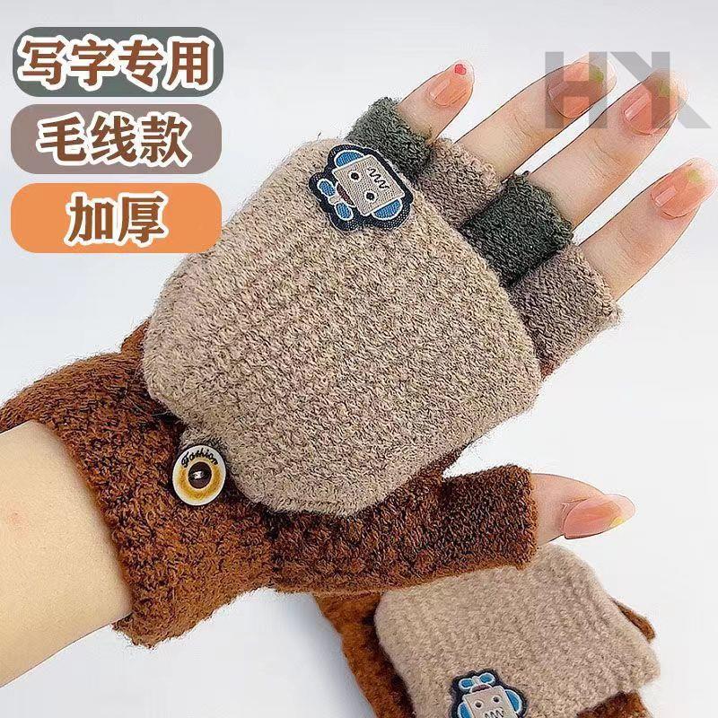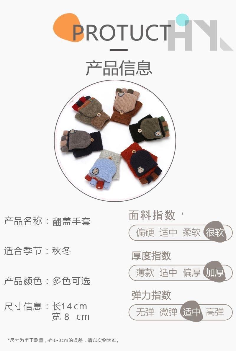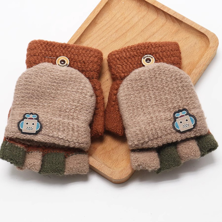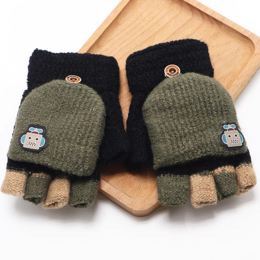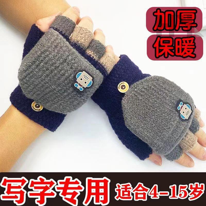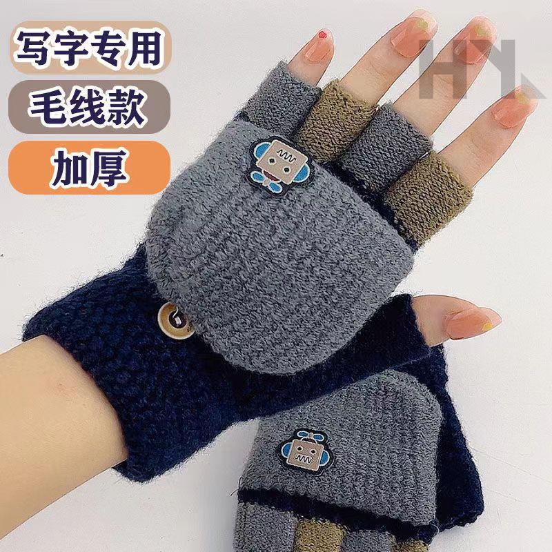 겨울 따뜻한 어린이 장갑 귀여운 만화 오픈 손가락 플립 반 손가락 양모 소년과 소녀 및 학생 글쓰기를 위해 니트