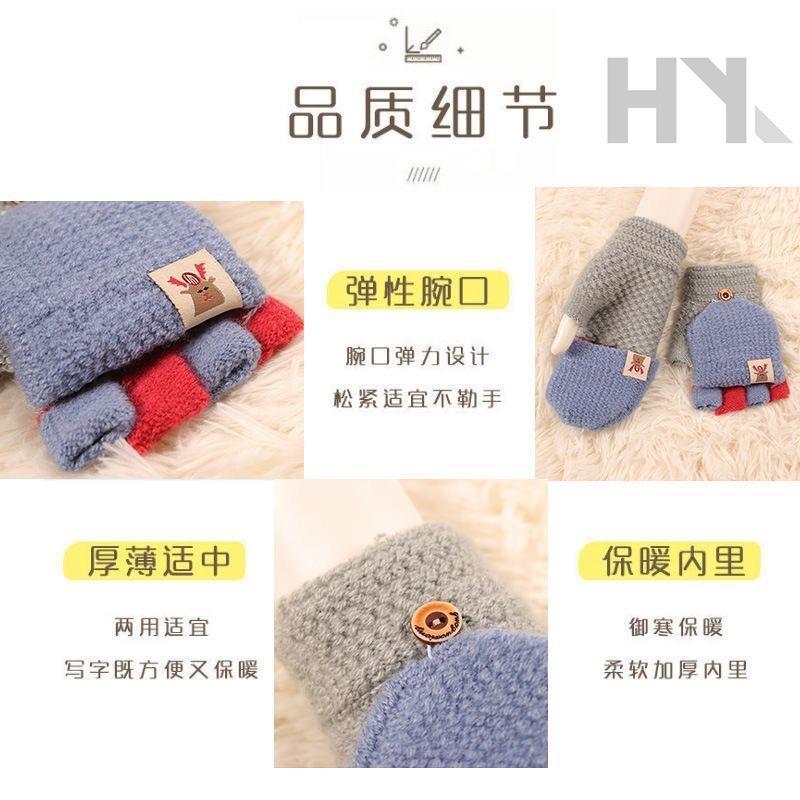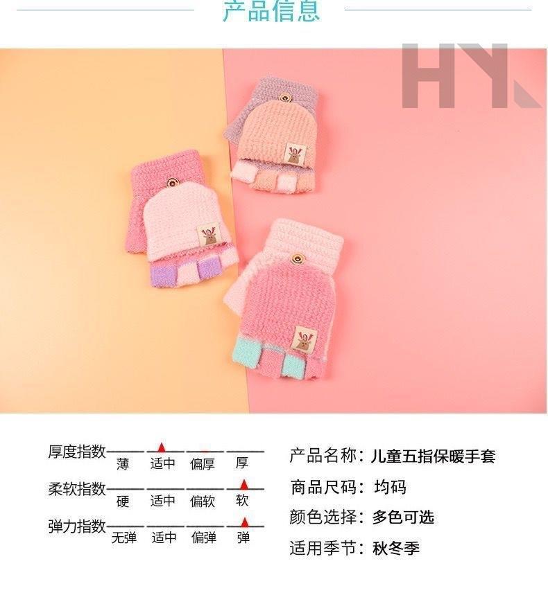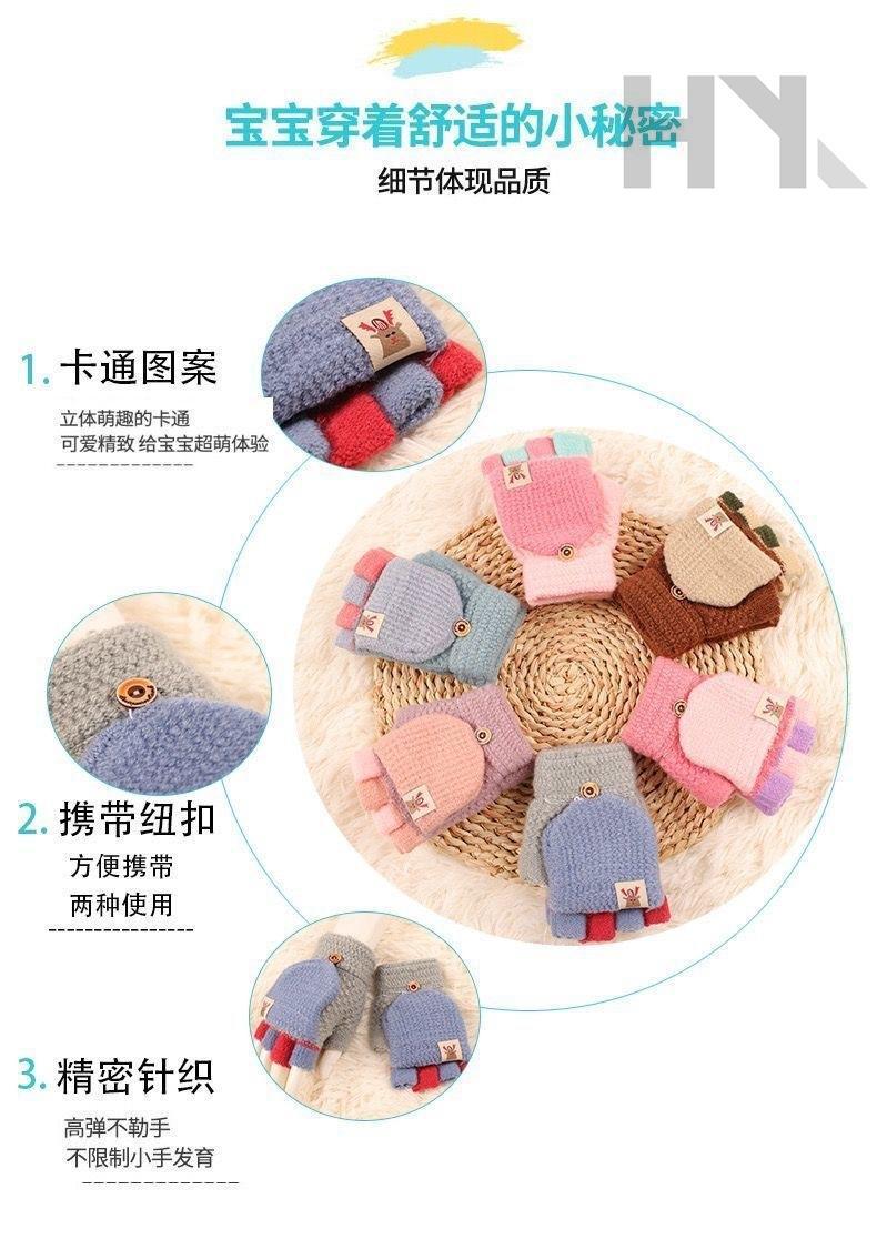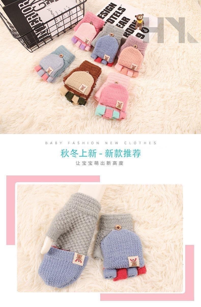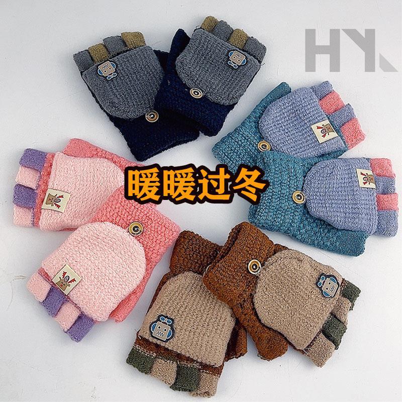 겨울 따뜻한 어린이 장갑 귀여운 만화 오픈 손가락 플립 반 손가락 양모 소년과 소녀 및 학생 글쓰기를 위해 니트스토어 가기