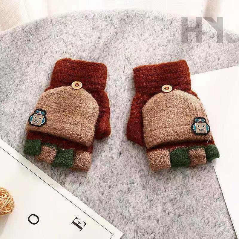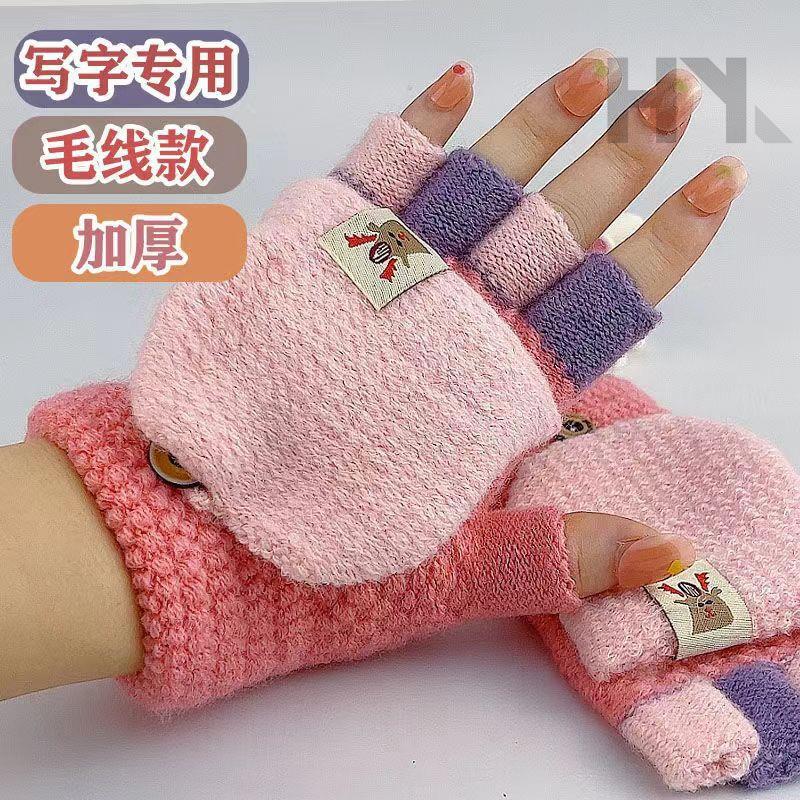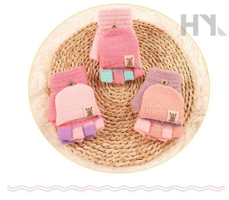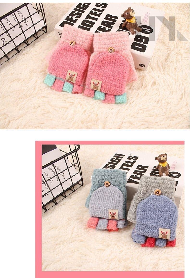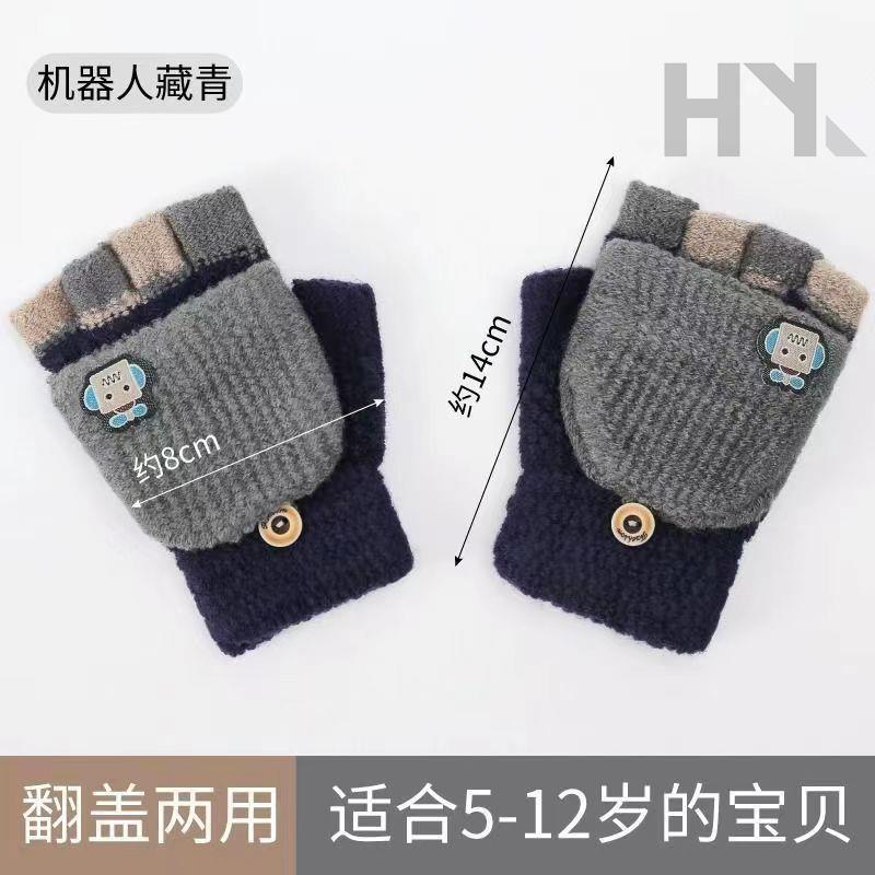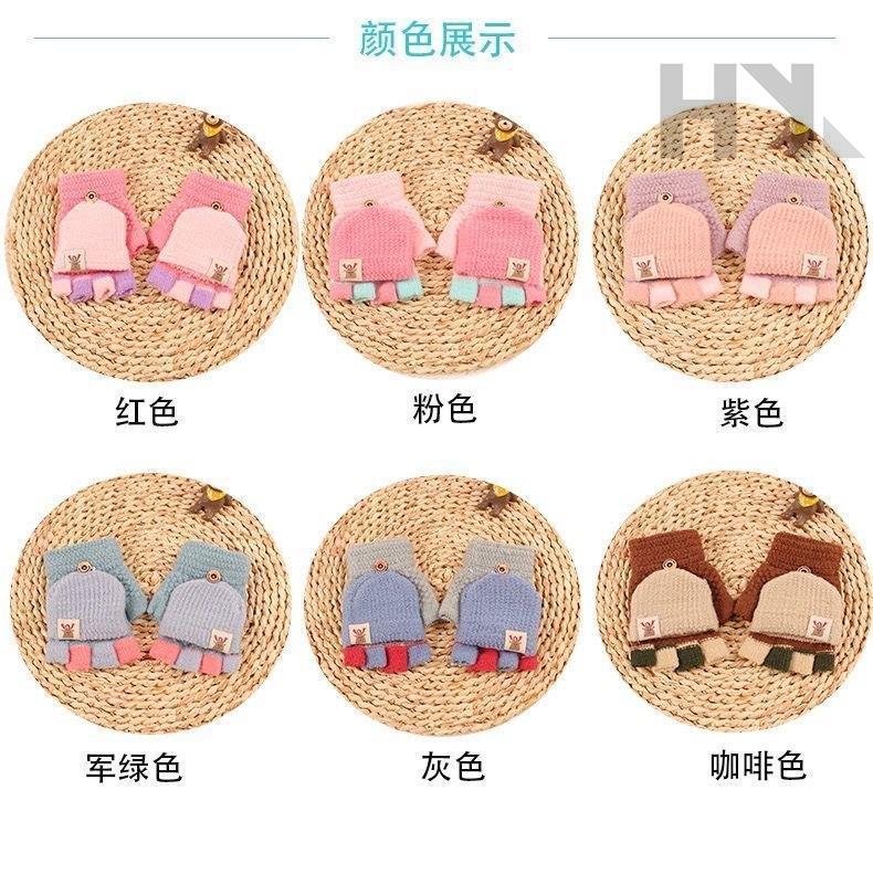 겨울 따뜻한 어린이 장갑 귀여운 만화 오픈 손가락 플립 반 손가락 양모 소년과 소녀 및 학생 글쓰기를 위해 니트스토어 가기