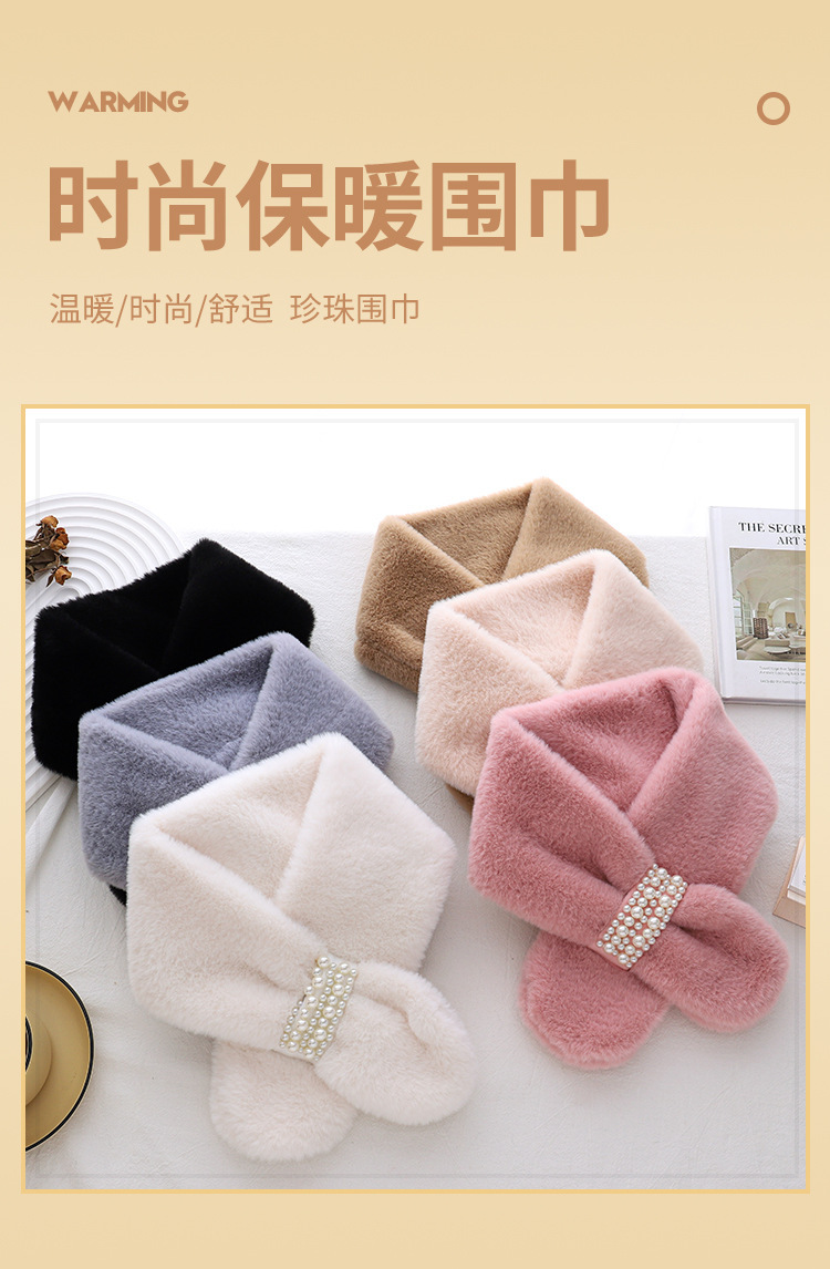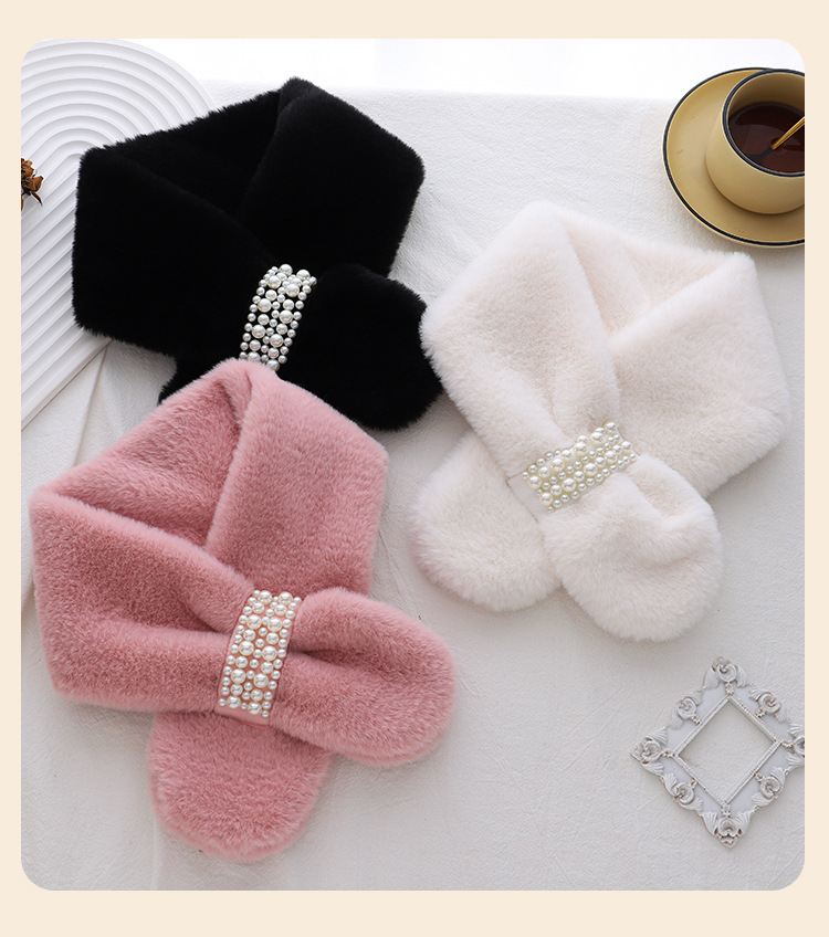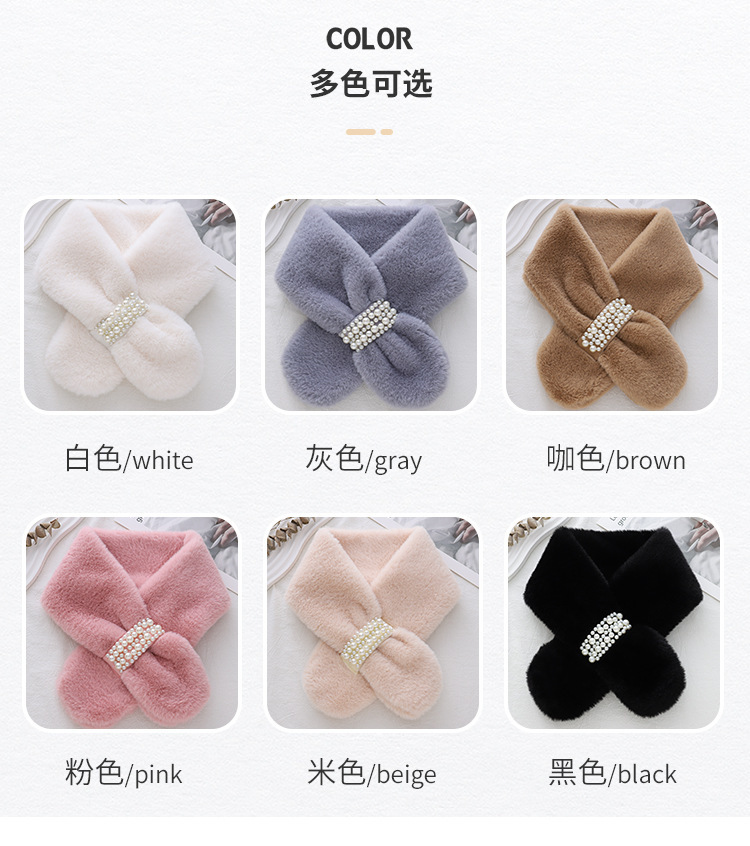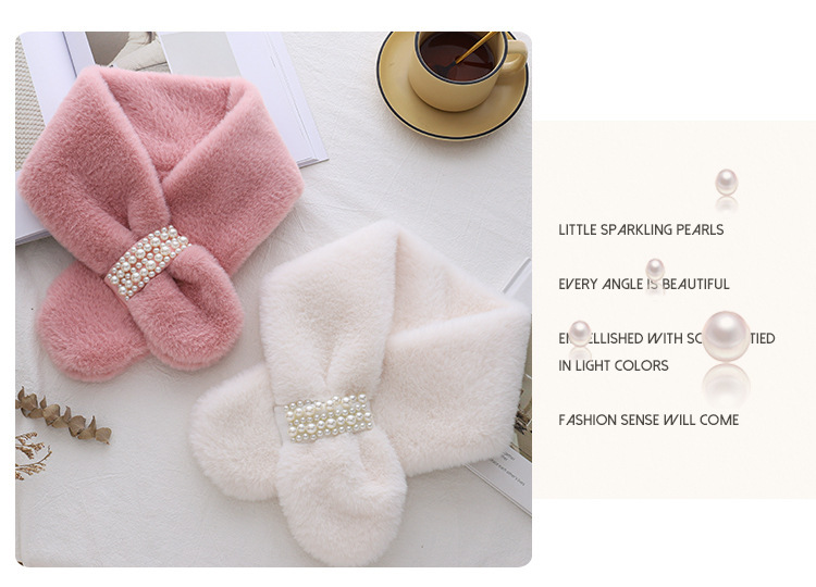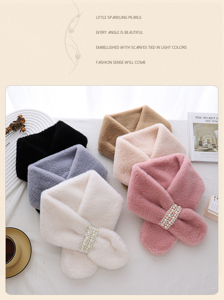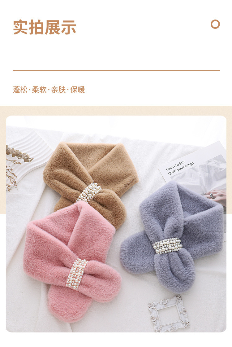 진주 스카프 겨울 모조 수달 머리 스카프 여자 패션 올매치 한국 스타일 귀여운 마오 마오 두꺼운 따뜻한 크로스 스카프스토어 가기