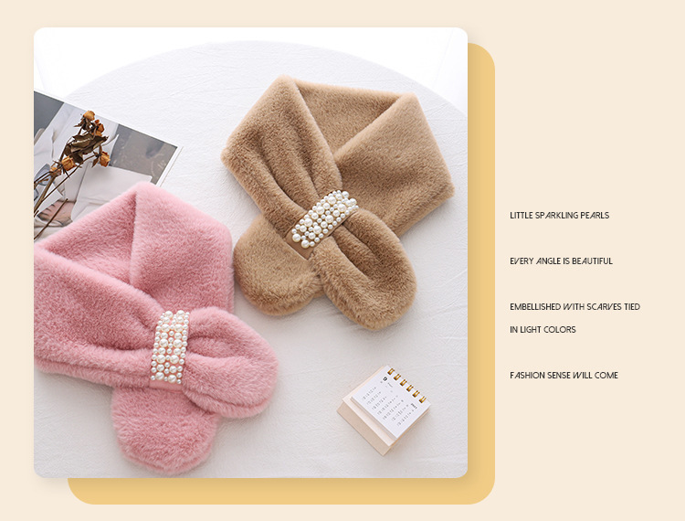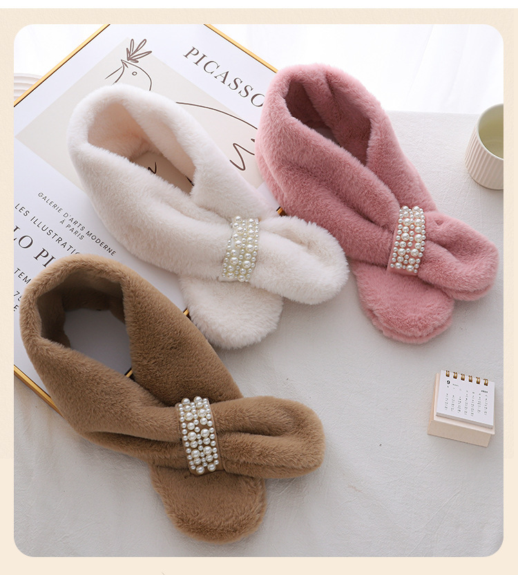 진주 스카프 겨울 모조 수달 머리 스카프 여자 패션 올매치 한국 스타일 귀여운 마오 마오 두꺼운 따뜻한 크로스 스카프