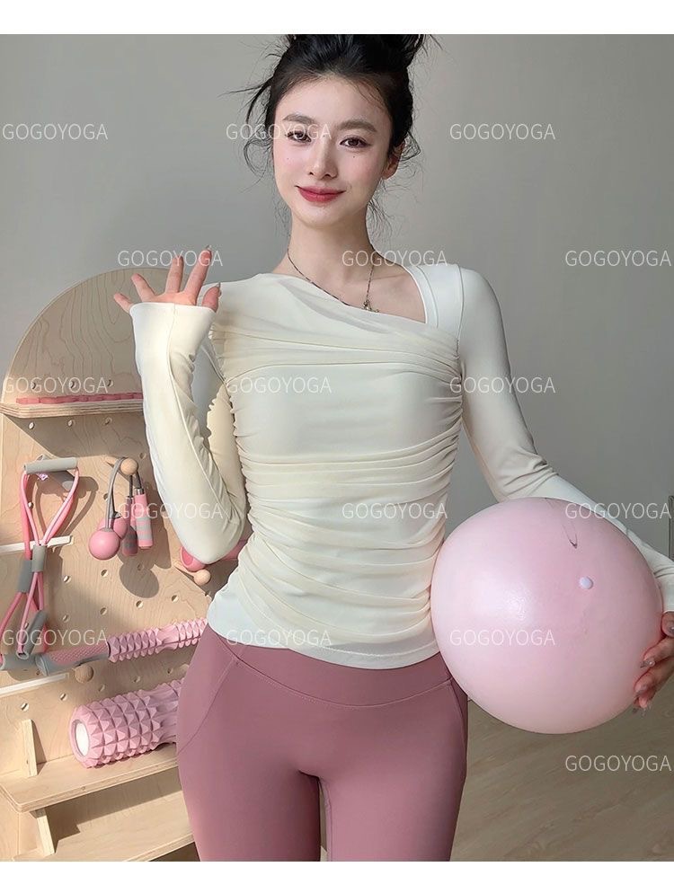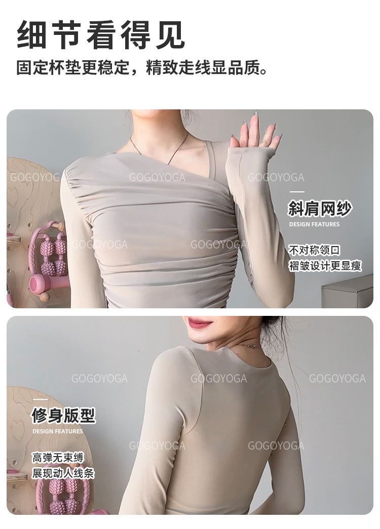 요가 의류 가슴 패드가 달린 여성용 고가 스포츠 탑 슬림핏 슬리밍 긴팔 필라테스 초가을을위한 피트니스 의류 훈련스토어 가기
