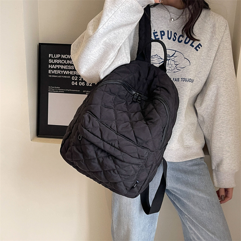 간단한 패션 여성 퍼프 대용량 배낭 가을 및 겨울 경량 통근 캐주얼 여성을위한 올 매치 틈새 배낭