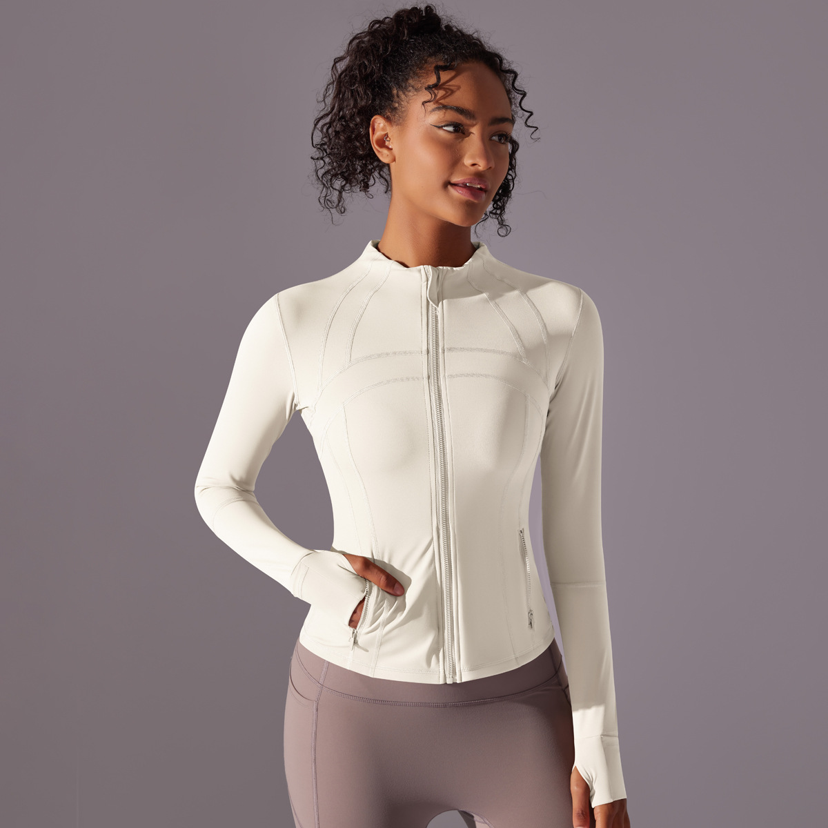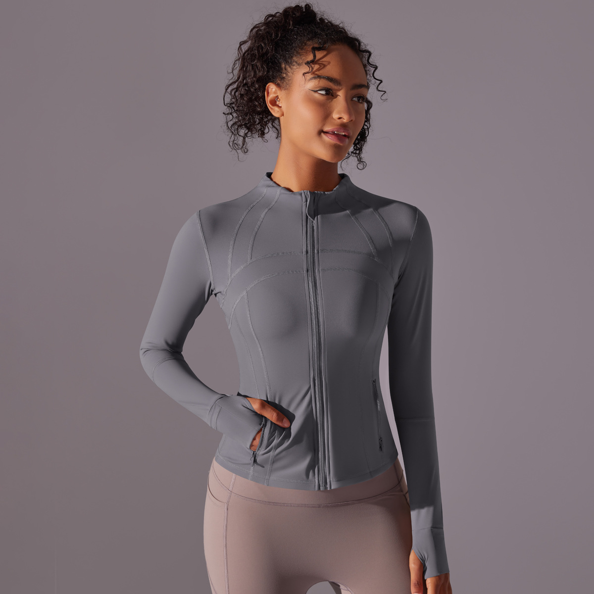 재고 정리! 양면 나일론 기모 스포츠 지퍼 스탠드 칼라 요가복 자켓, 스포츠 러닝 피트니스 긴팔 상의스토어 가기