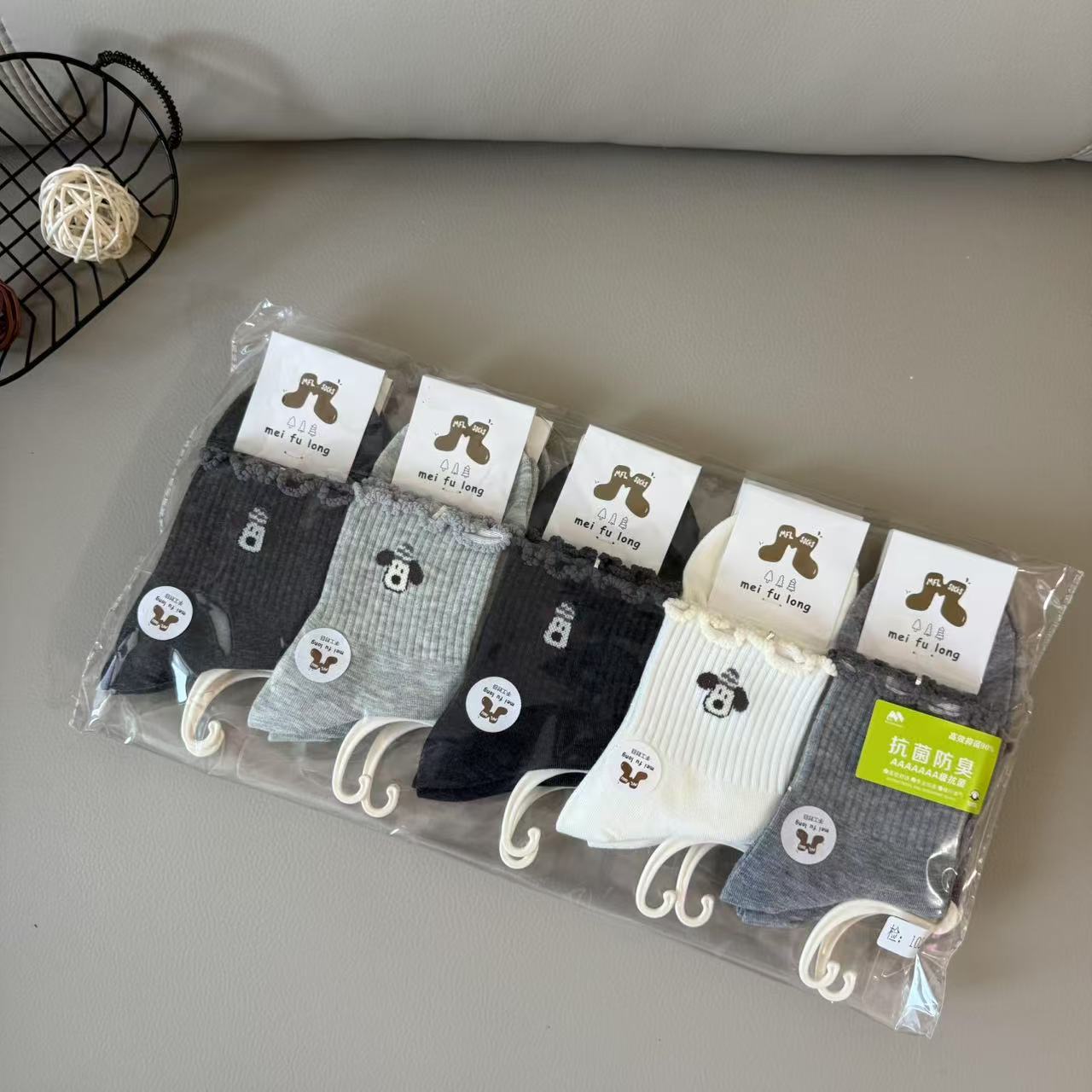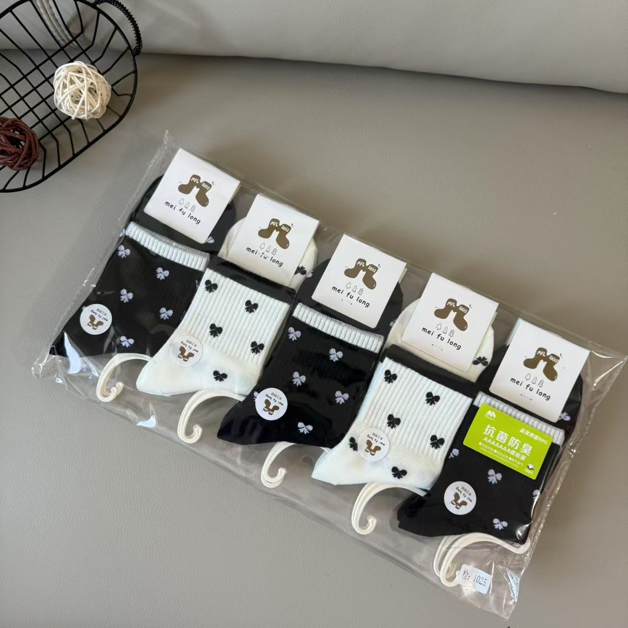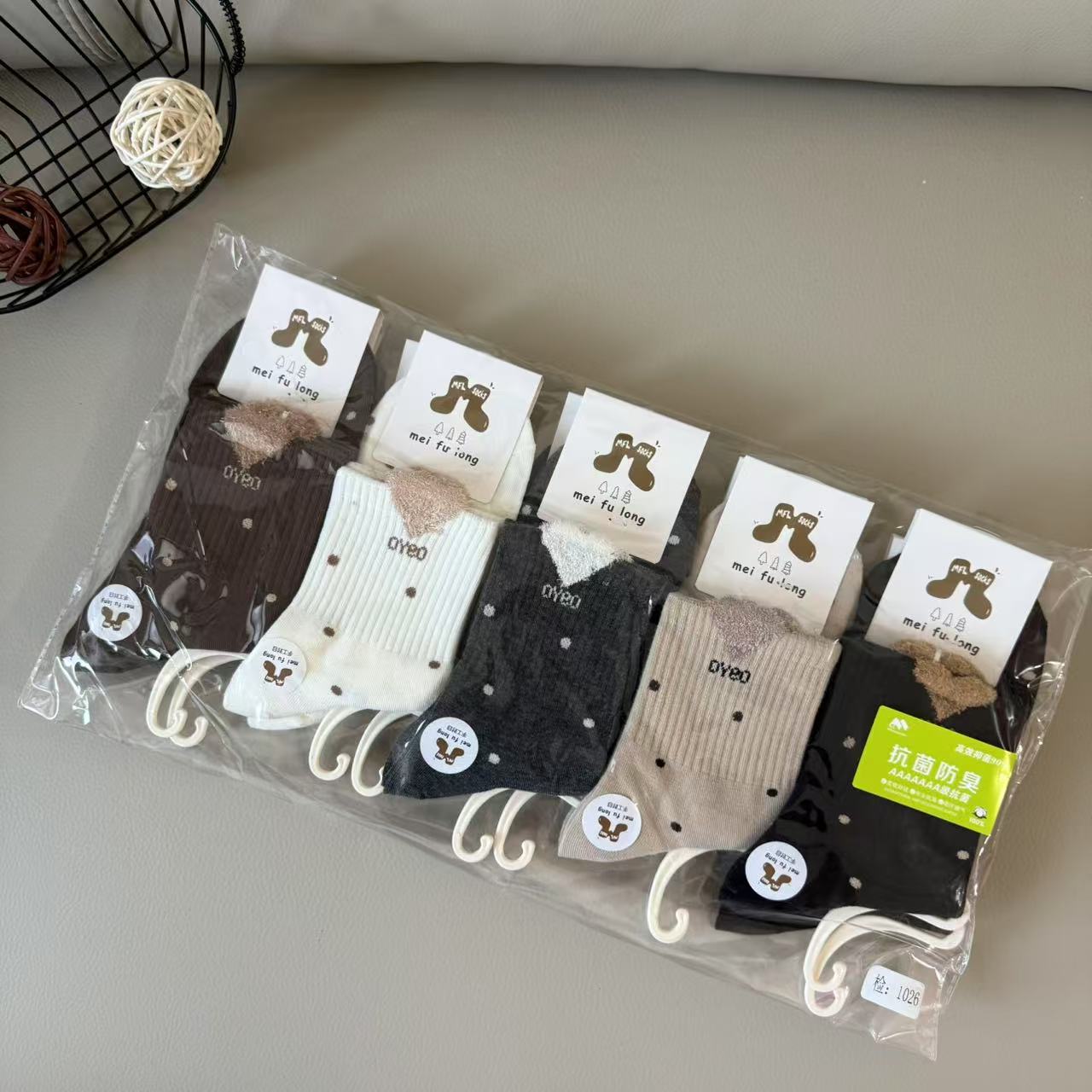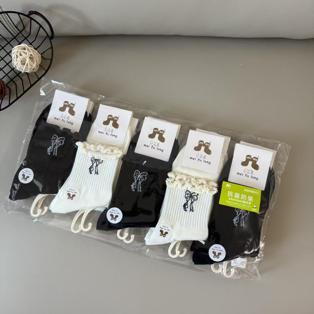 페어아일 가을 겨울 신상 여성 스포츠 양말 일본과 한국 대학 스타일 중간 길이 폴카 도트 리본 레이스 양말스토어 가기