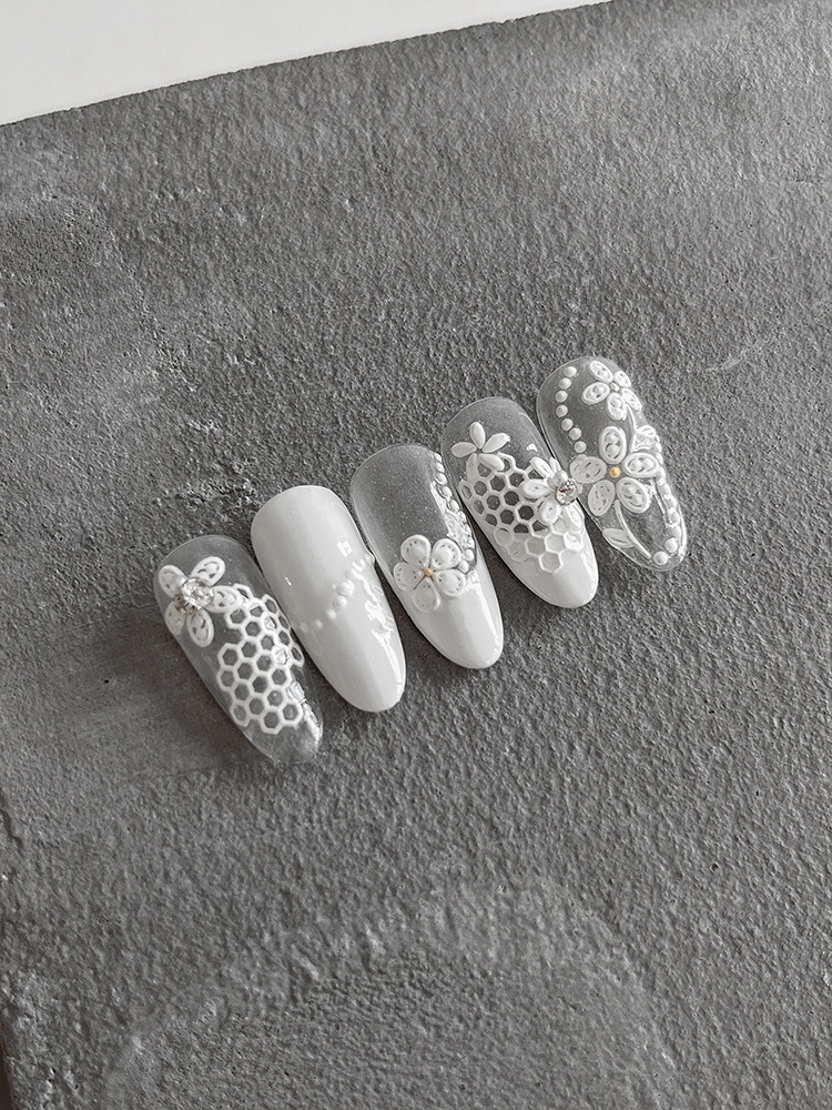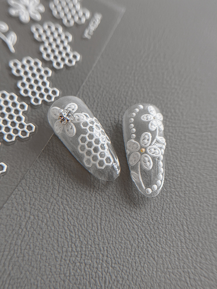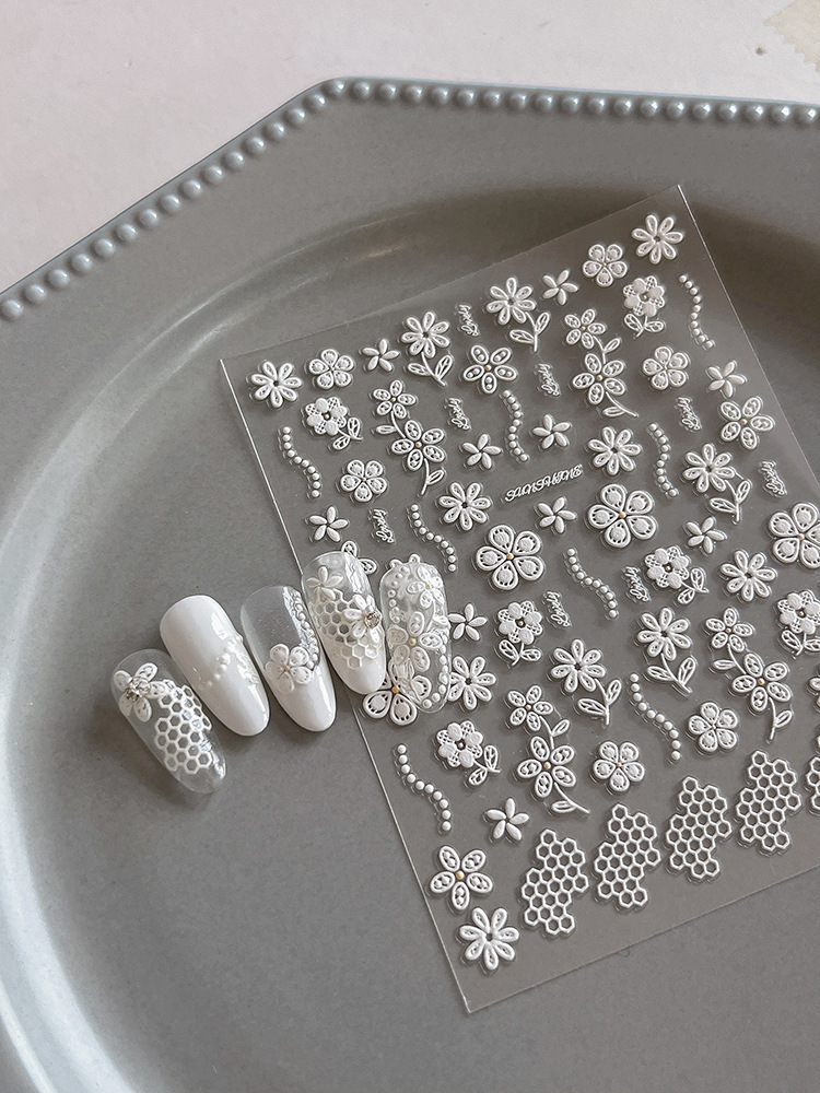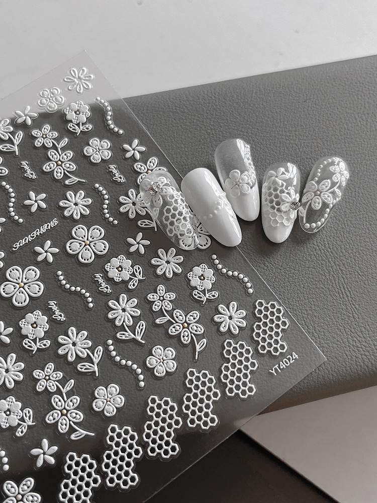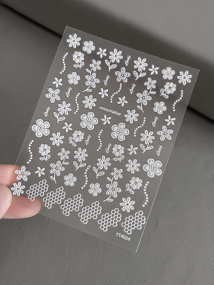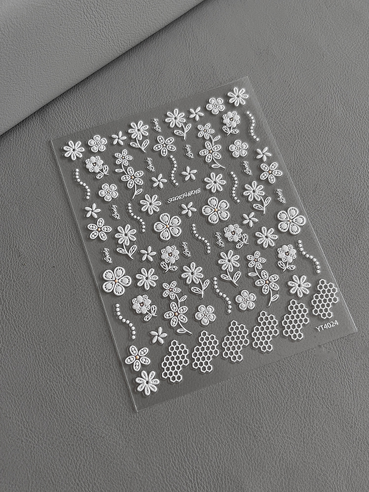 YITU 개미 그림 새로운 구호 입체 꽃 네일 아트 스티커 화이트 할로우 꽃 접착 네일 데칼 YT4024스토어 가기