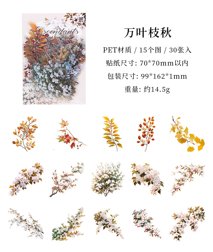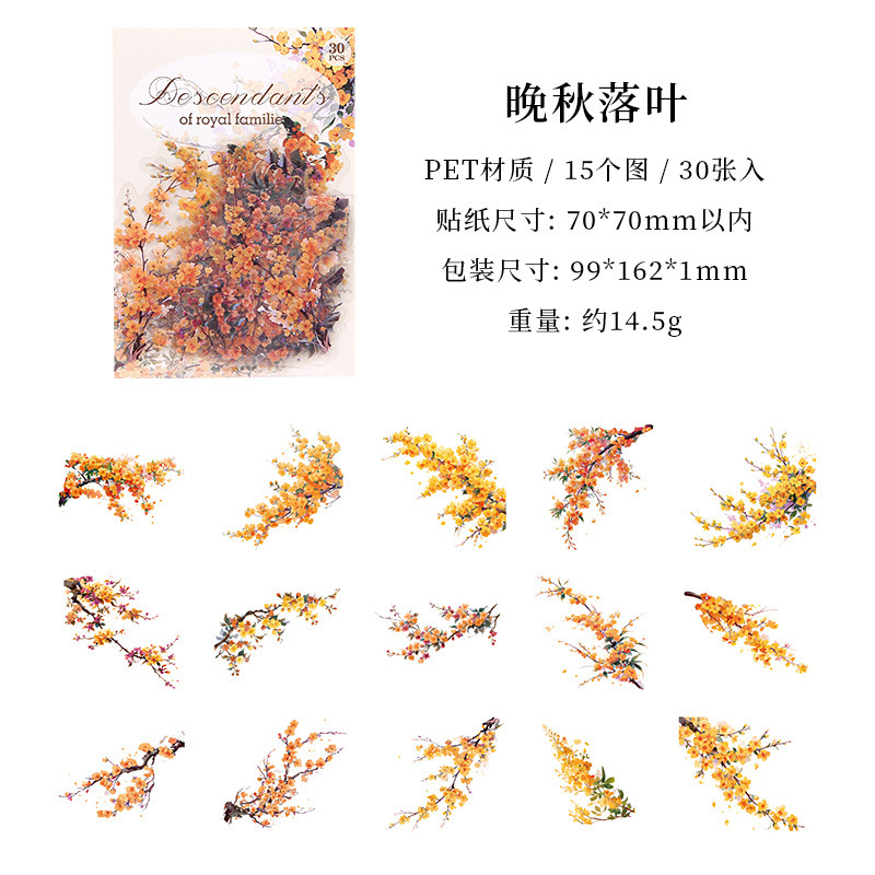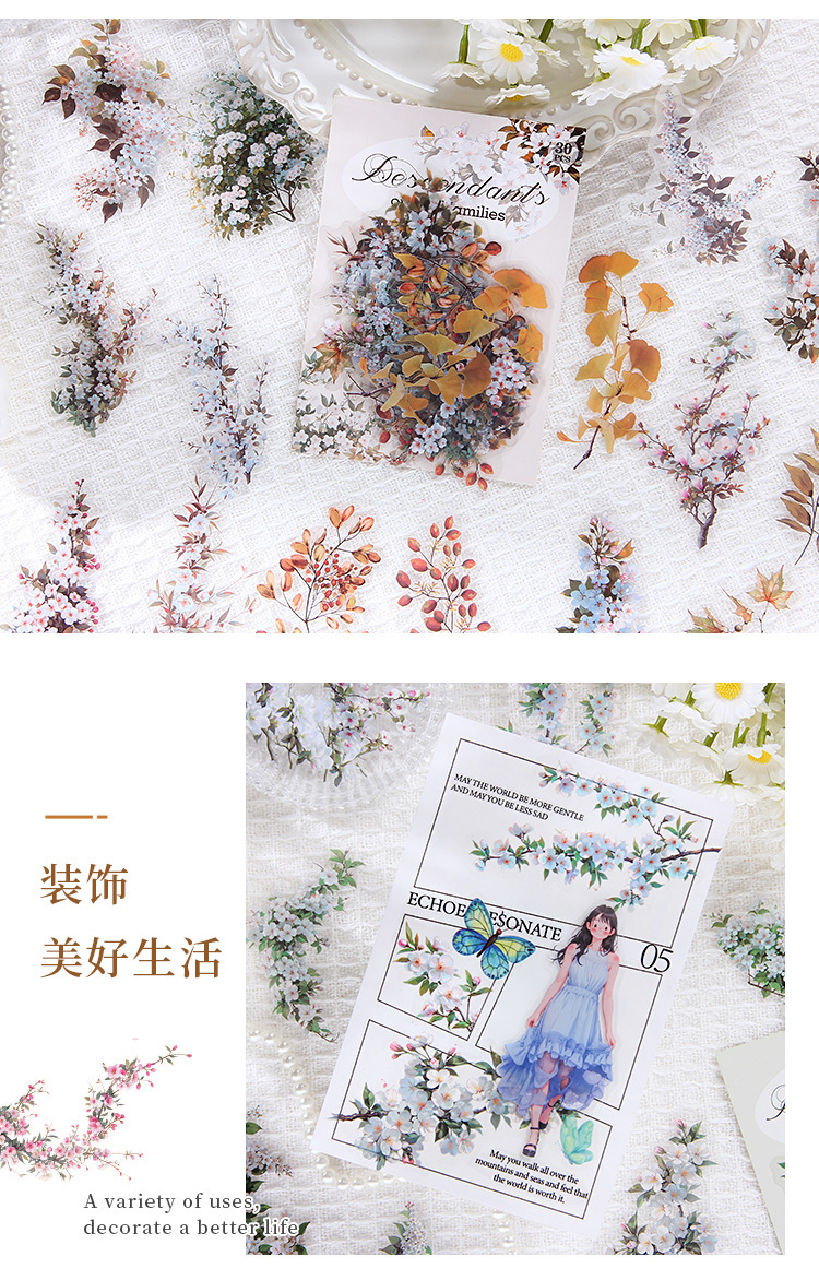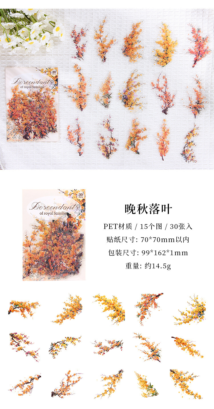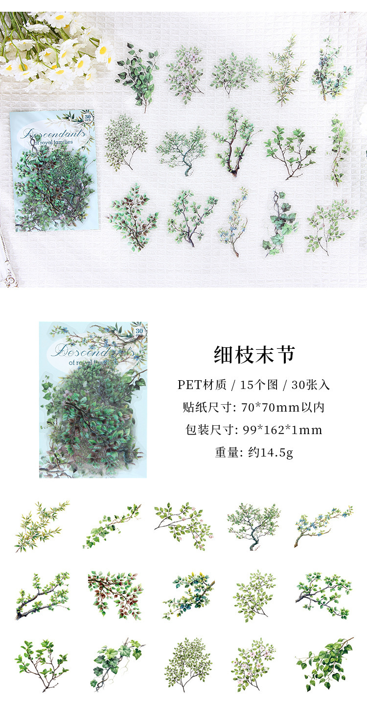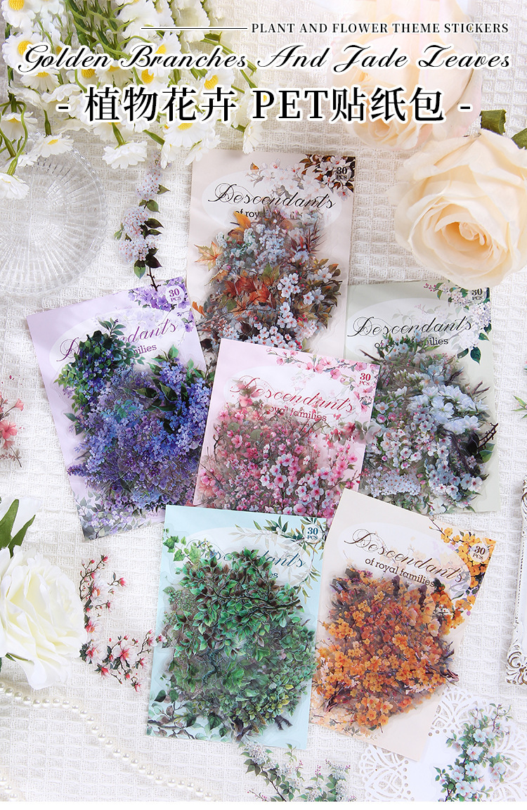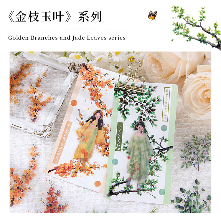 드림 댄스 PET 스티커 가방 황금 브랜치와 옥 잎 시리즈 식물 꽃 방수 스티커 그림 손 계정 구아 카드 풍경 콜라주