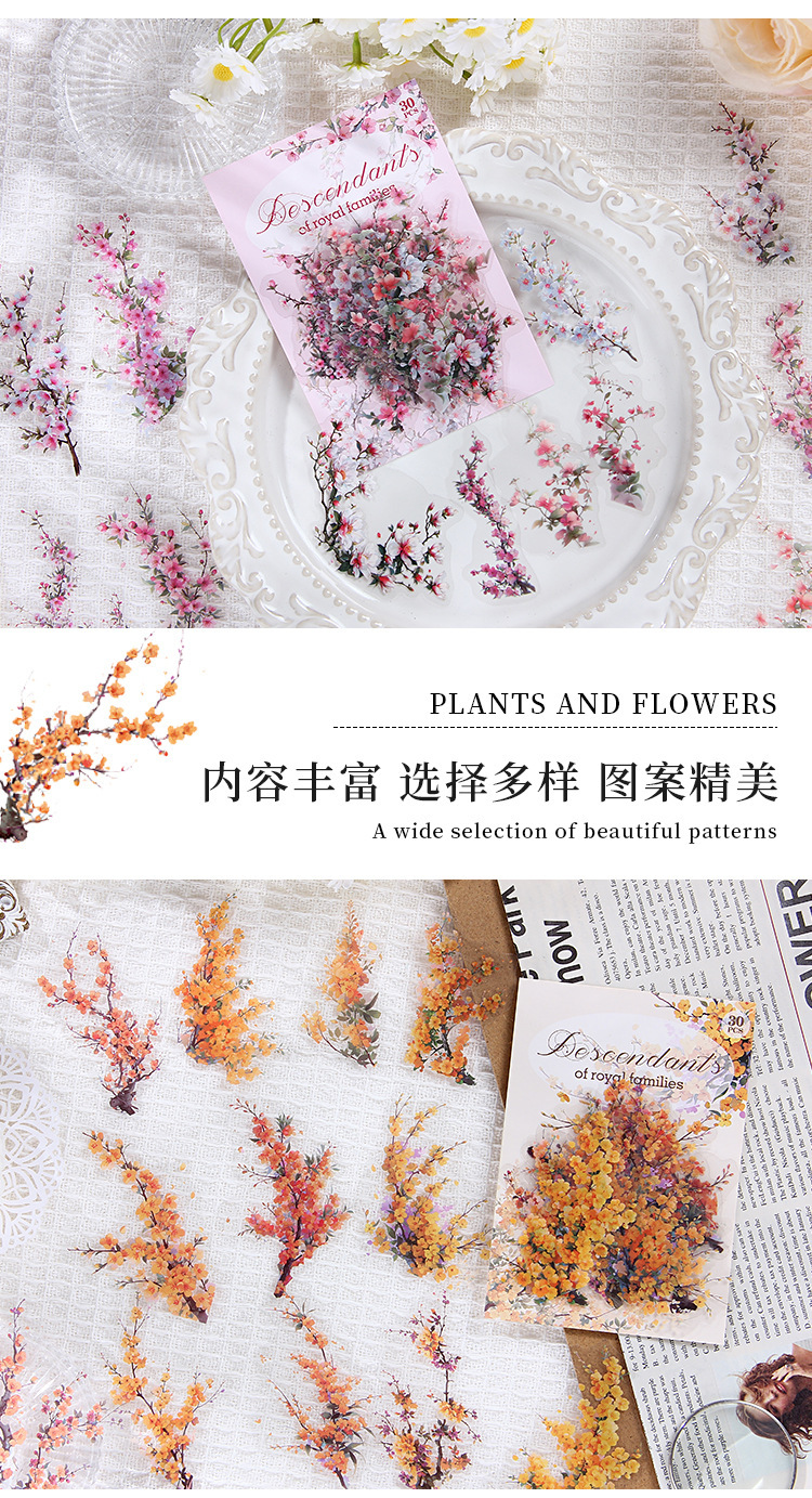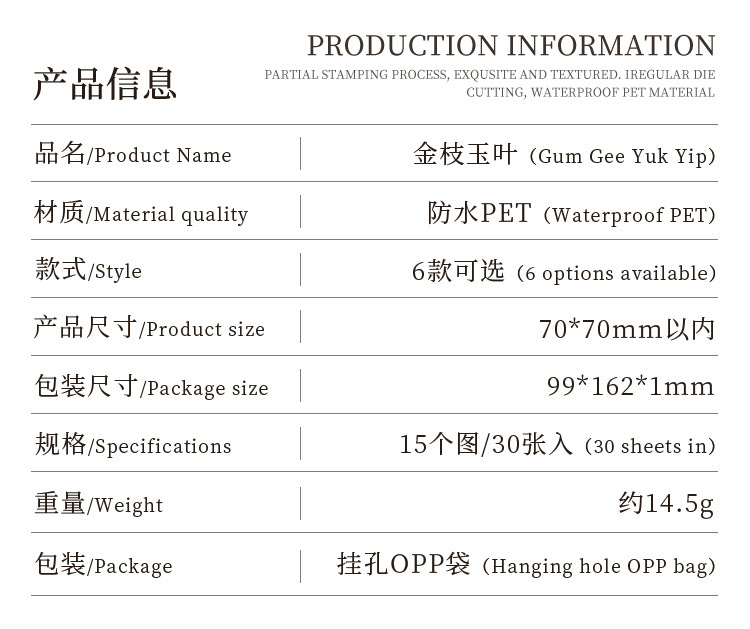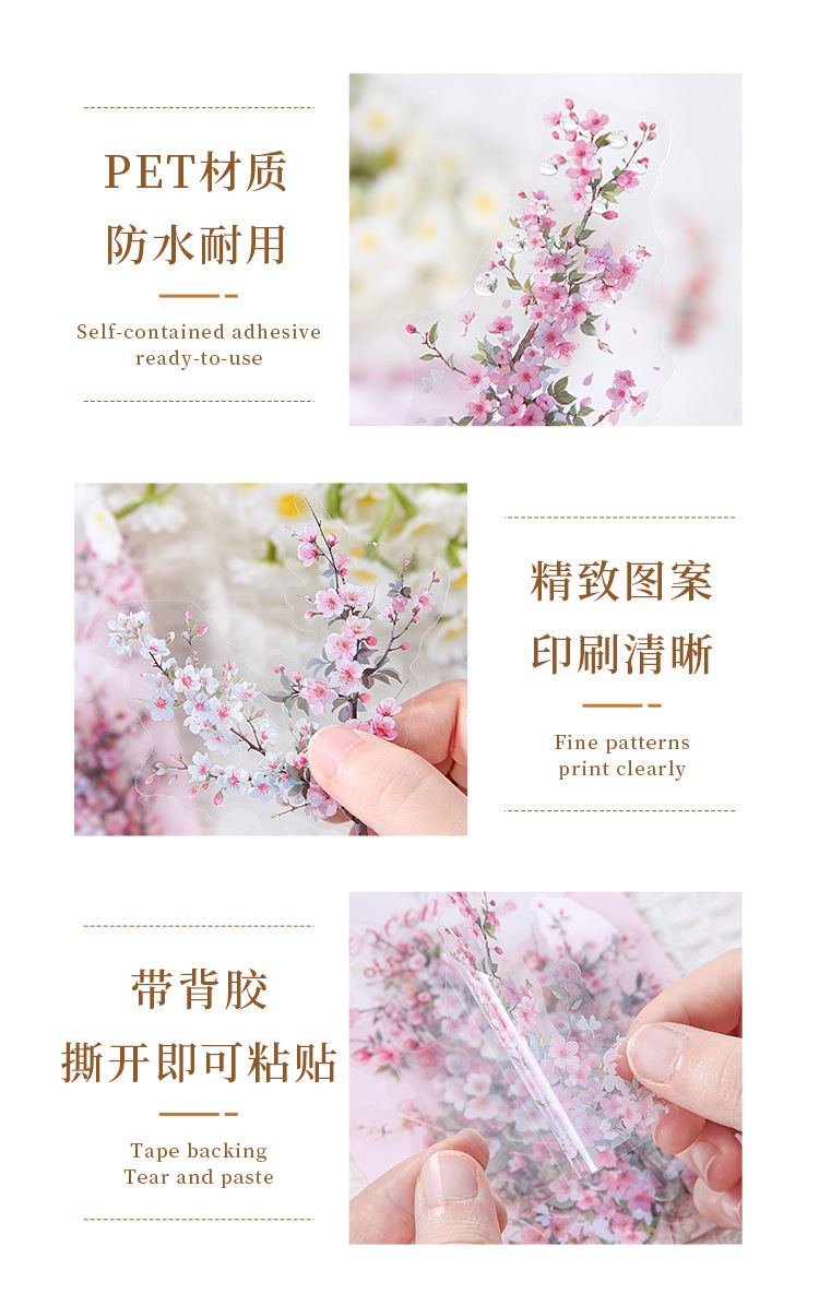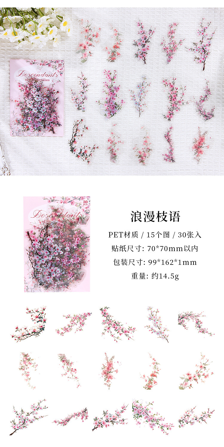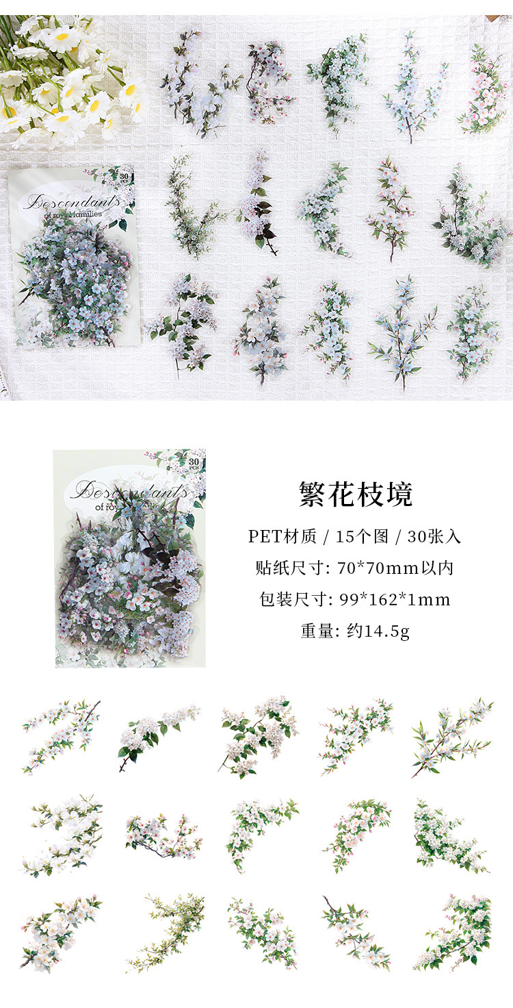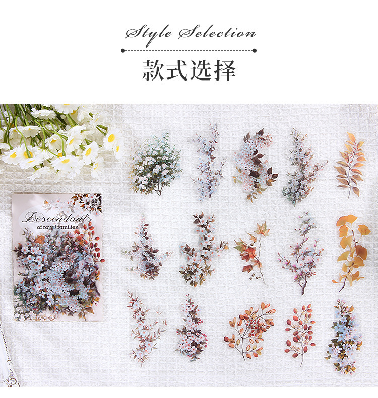 드림 댄스 PET 스티커 가방 황금 브랜치와 옥 잎 시리즈 식물 꽃 방수 스티커 그림 손 계정 구아 카드 풍경 콜라주