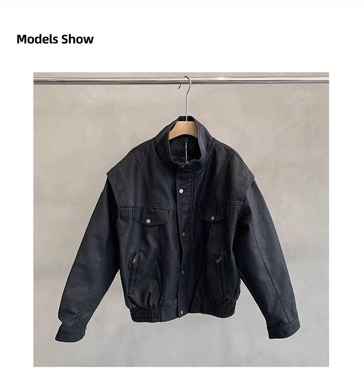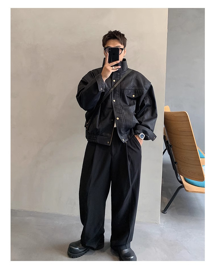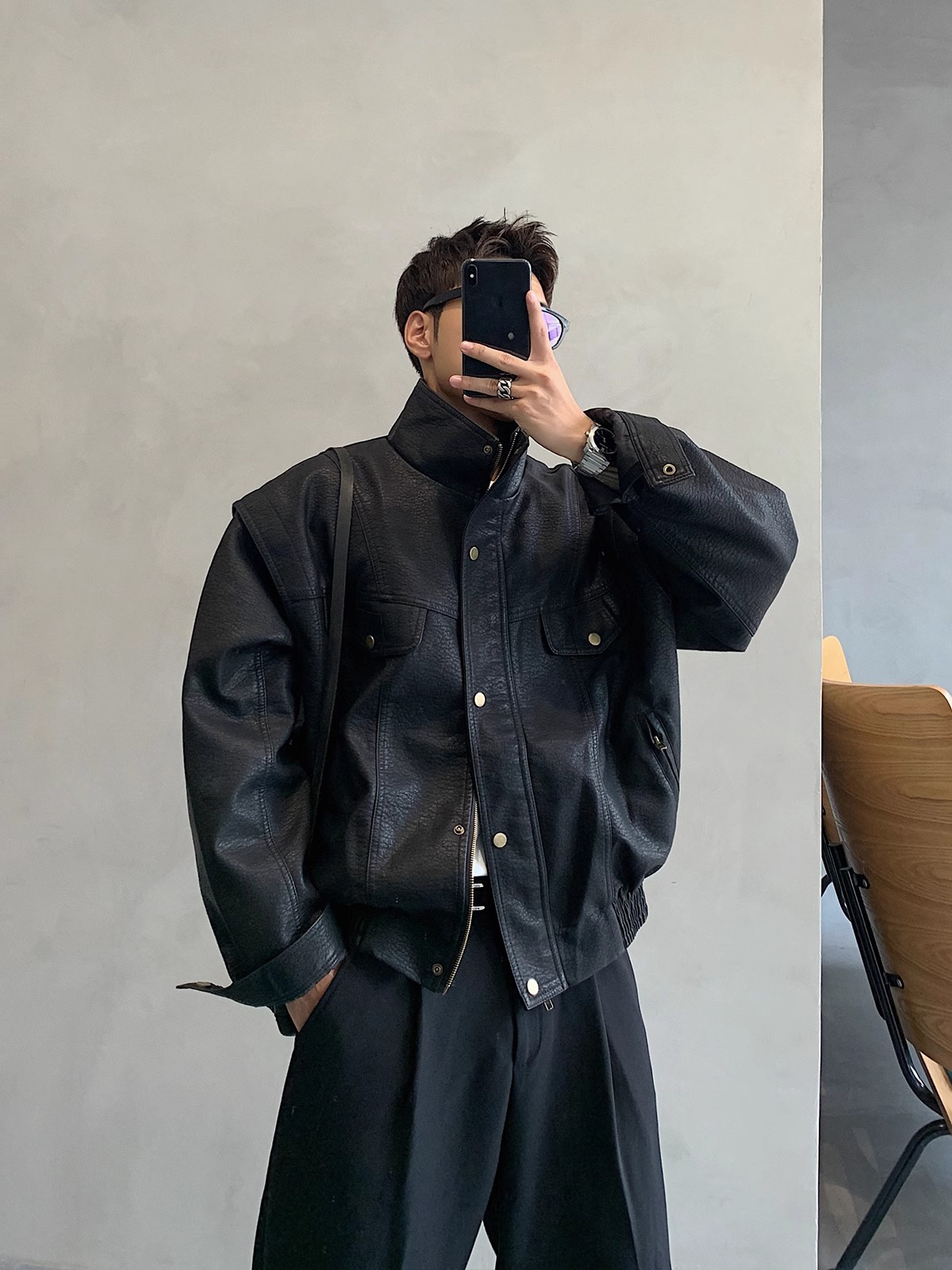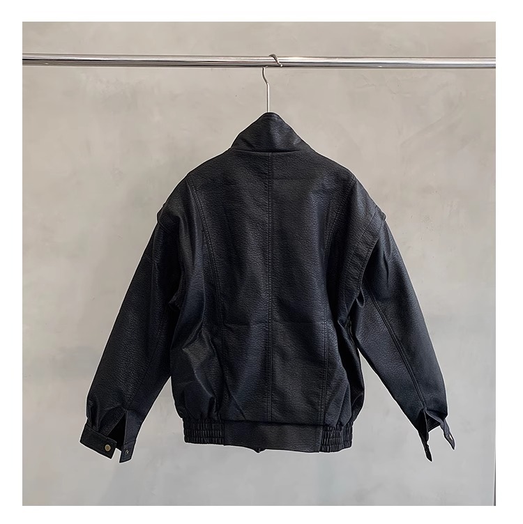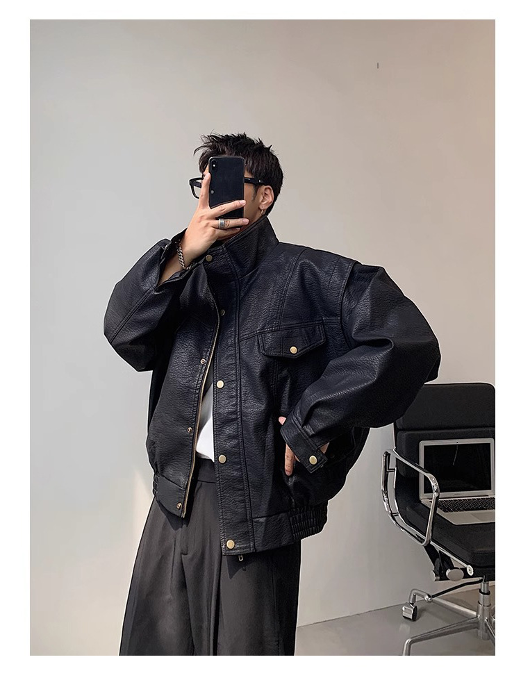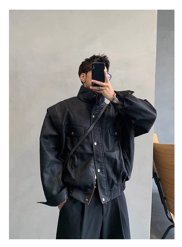 가을과 겨울 새로운 스타일 수직 칼라 기관차 스타일 부드러운 가죽 자켓 남성용 더피 잘 생긴 느슨한 PU 가죽 자켓 남성용 트렌디 코트스토어 가기