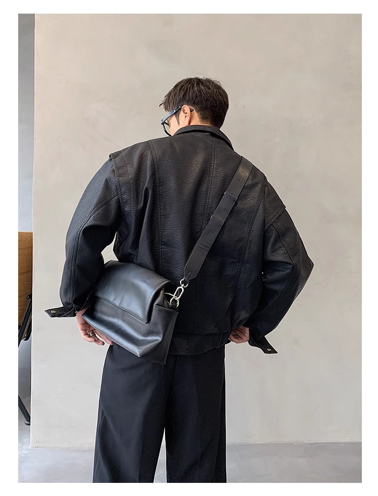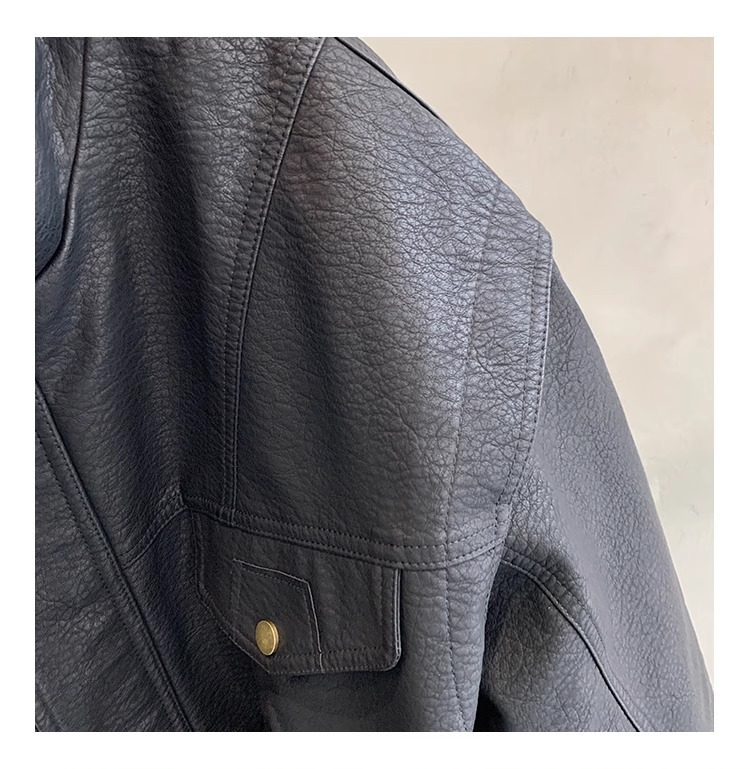 가을과 겨울 새로운 스타일 수직 칼라 기관차 스타일 부드러운 가죽 자켓 남성용 더피 잘 생긴 느슨한 PU 가죽 자켓 남성용 트렌디 코트