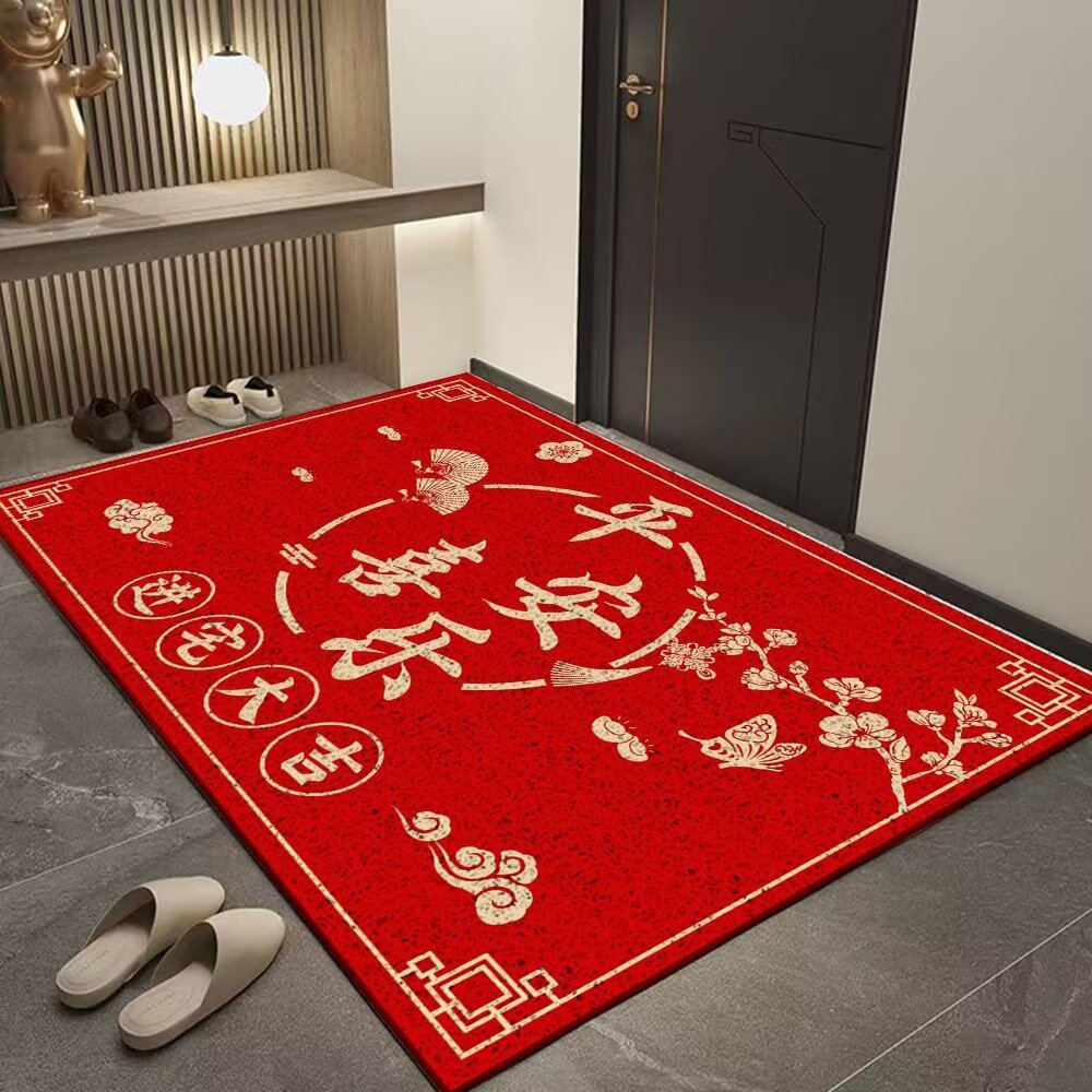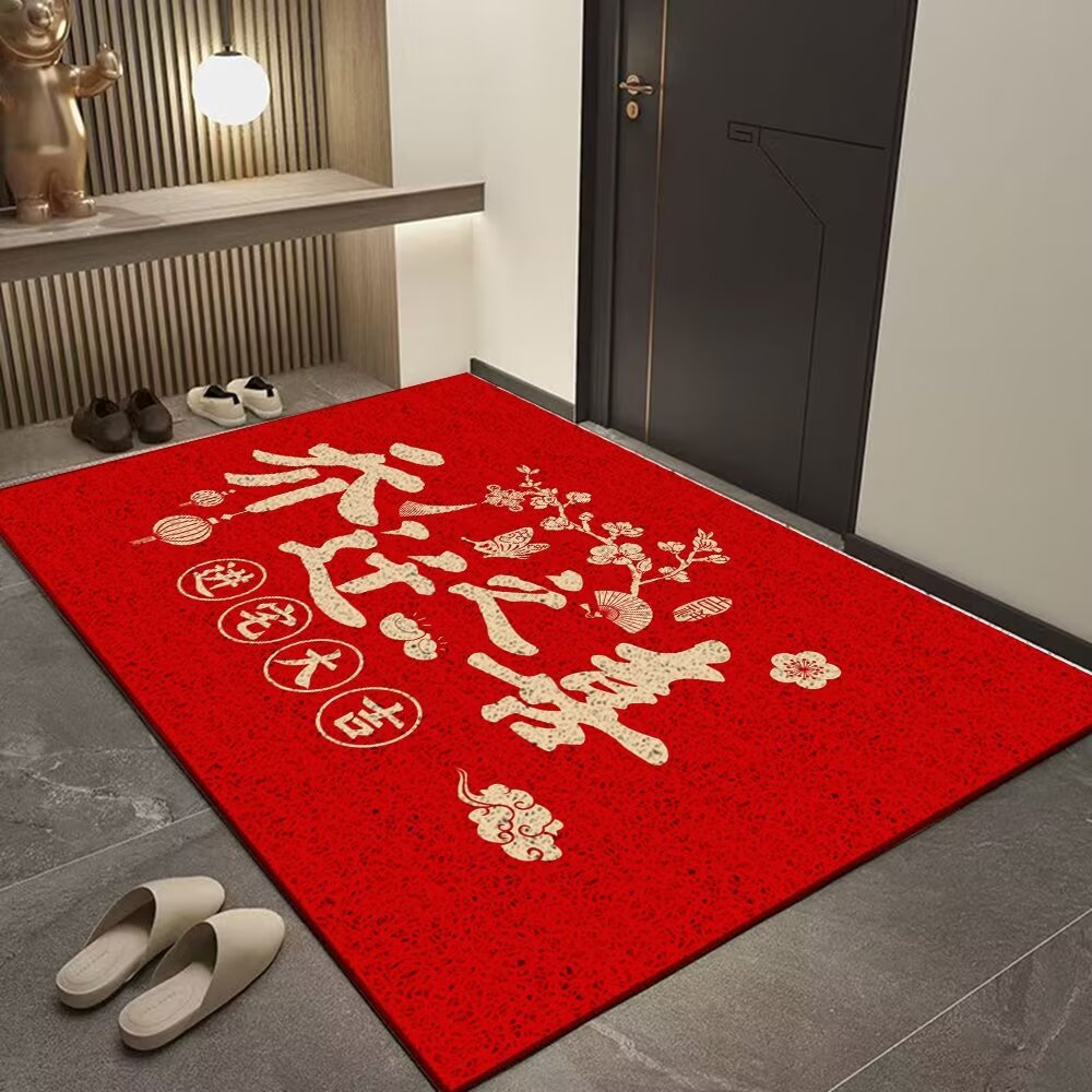 실크 링 바닥 매트 입구 바닥 매트 레드 축제 수직 새해 입구 바닥 매트 내마모성 카펫