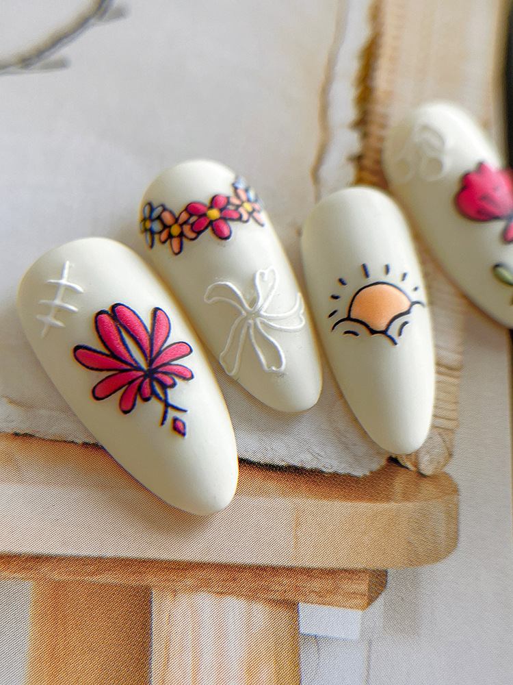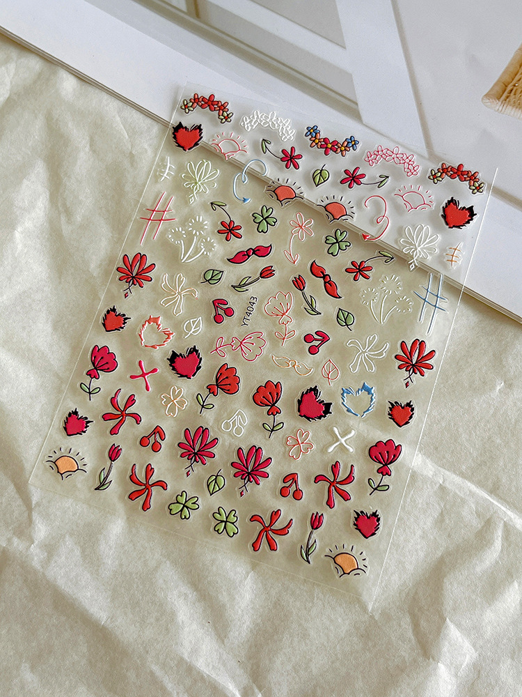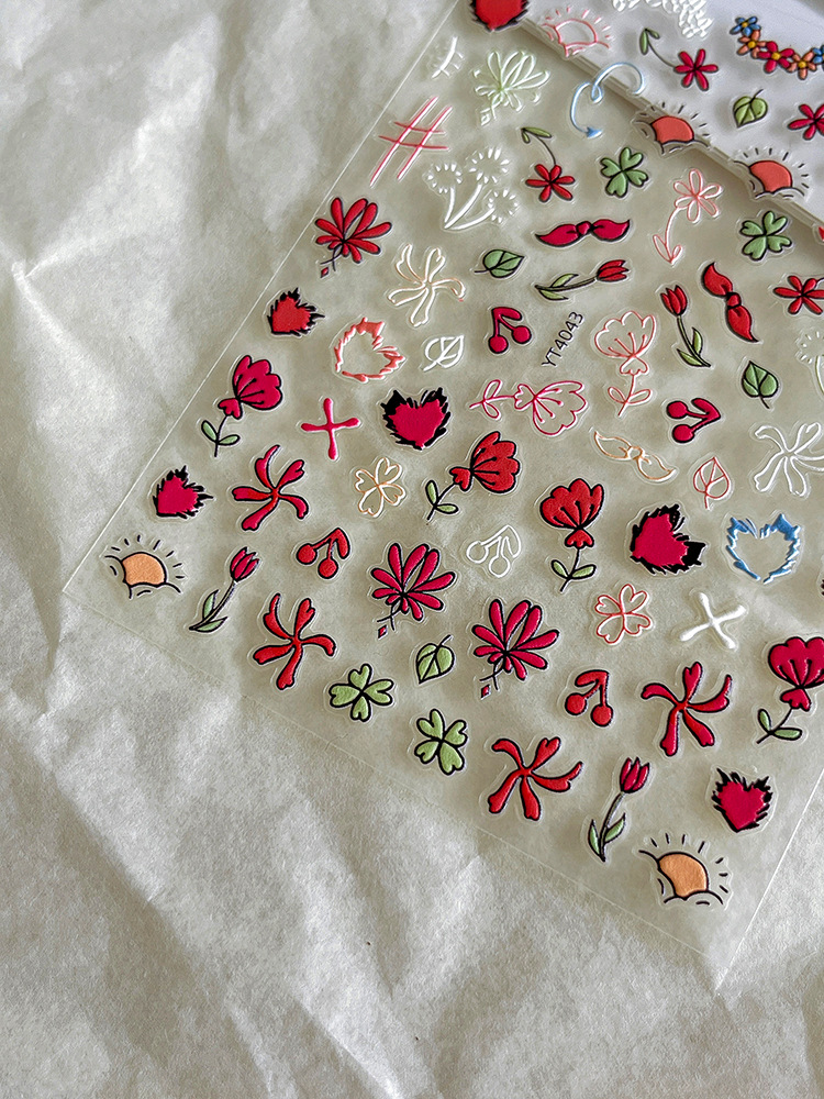 YITU 개미 그림 불타는 꽃 네일 아트 스티커 스테레오 릴리프 레드 플라워 불규칙한 네일 장식 스티커 YT4043스토어 가기