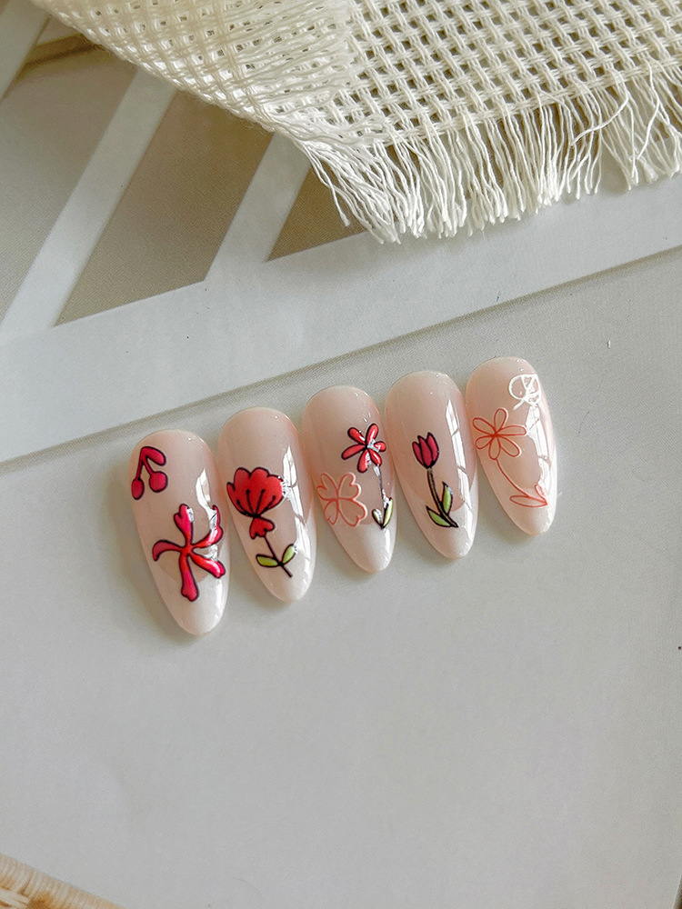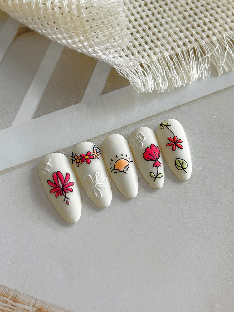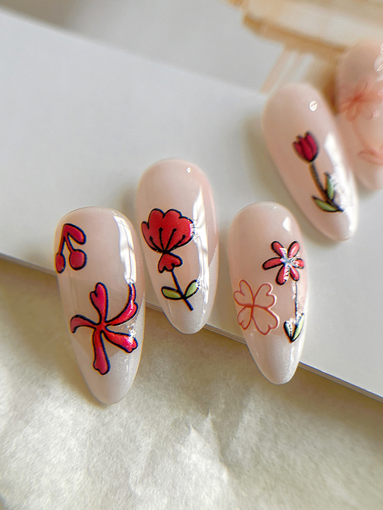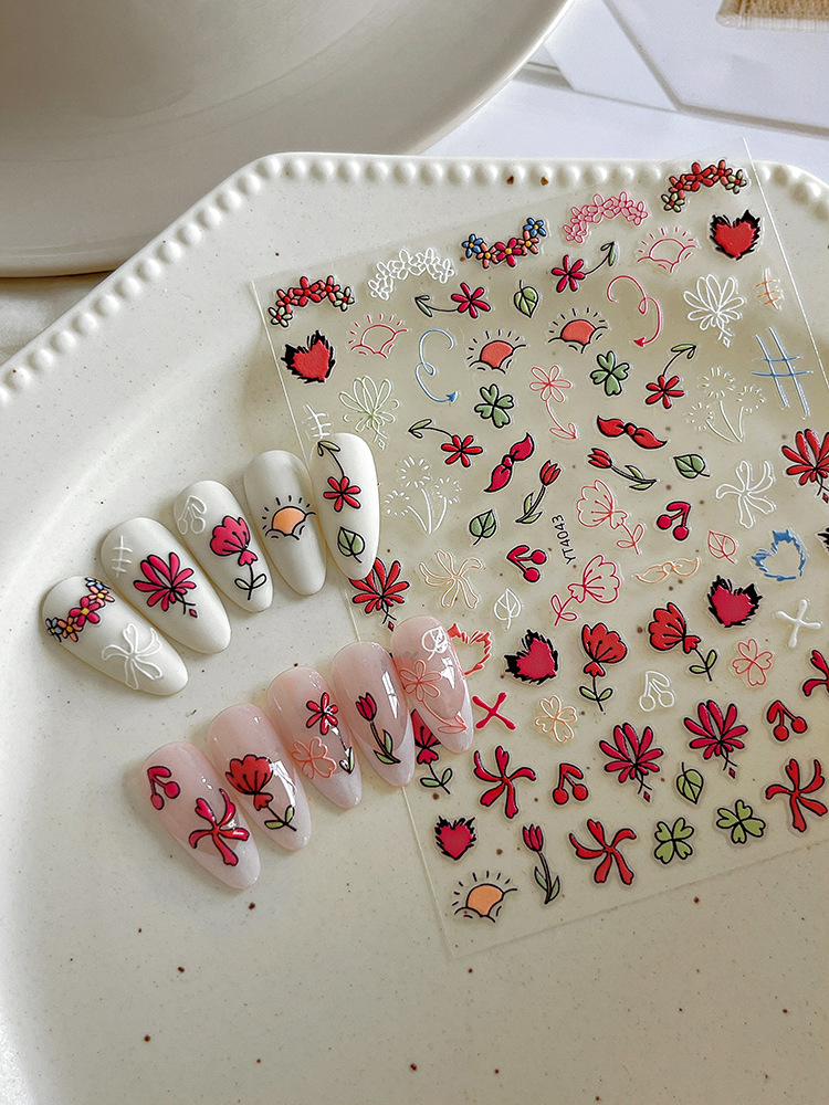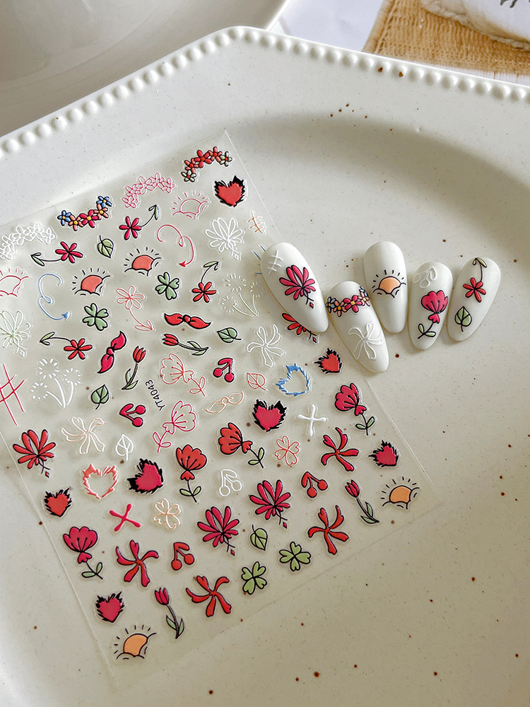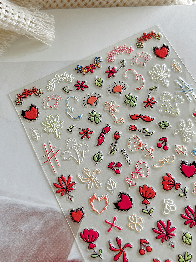 YITU 개미 그림 불타는 꽃 네일 아트 스티커 스테레오 릴리프 레드 플라워 불규칙한 네일 장식 스티커 YT4043