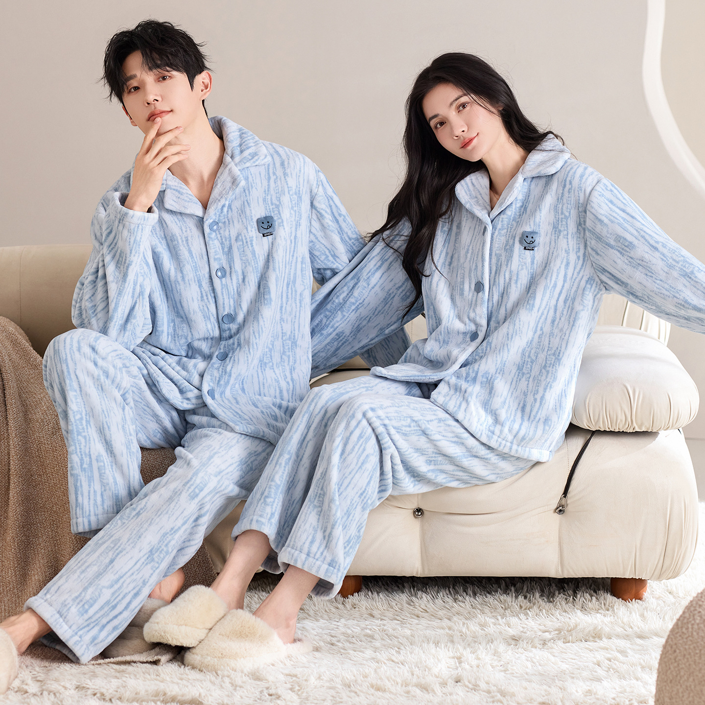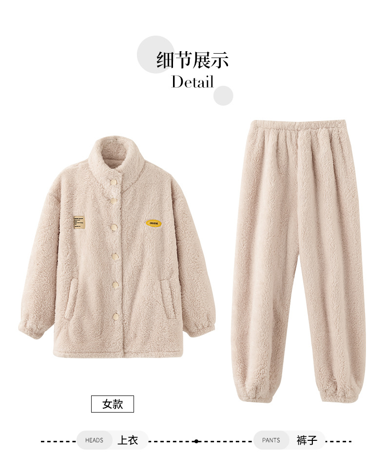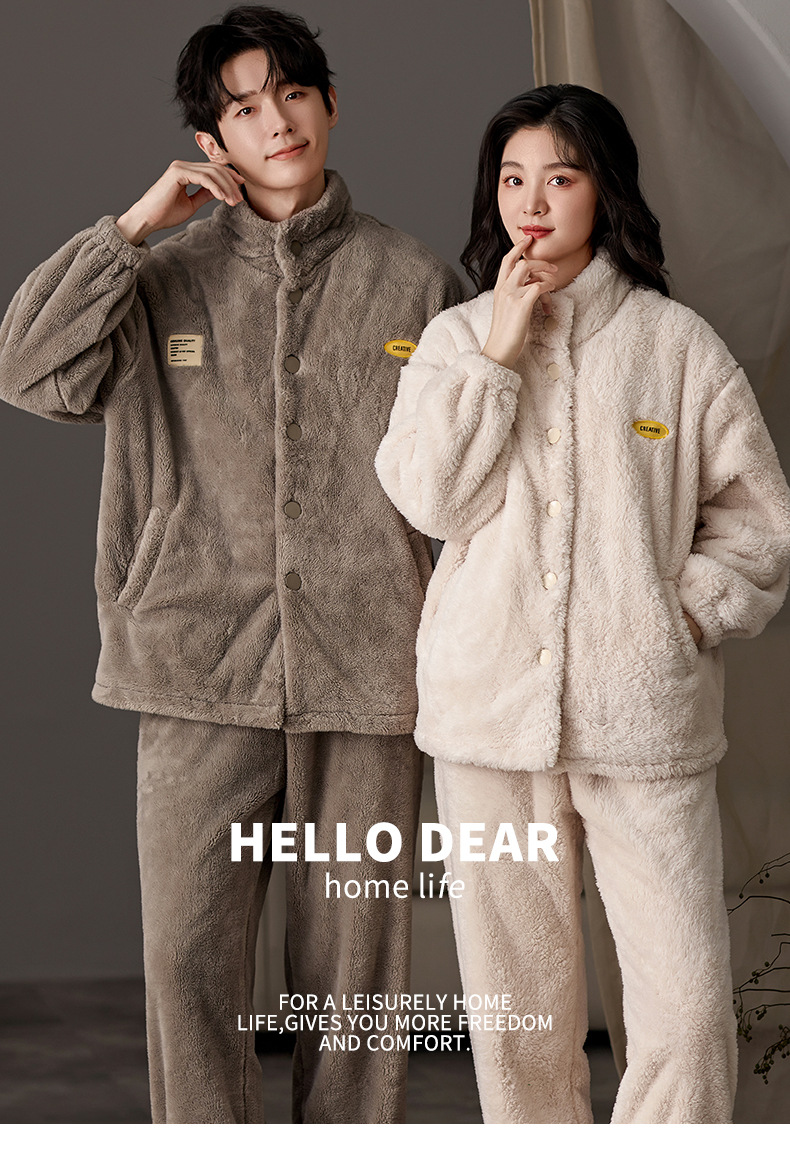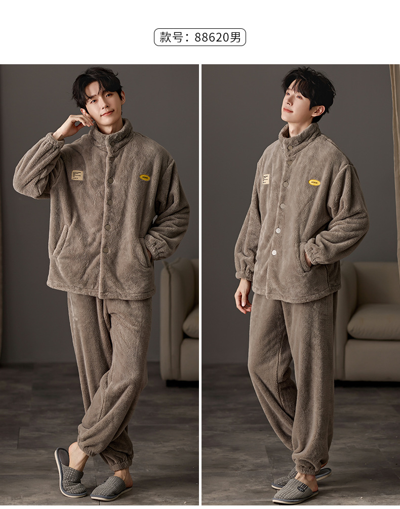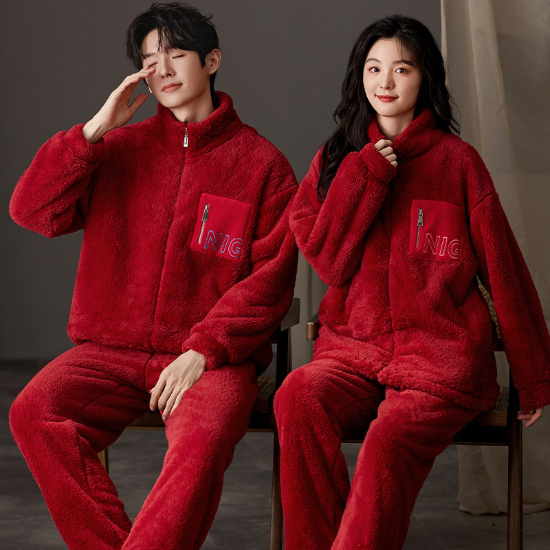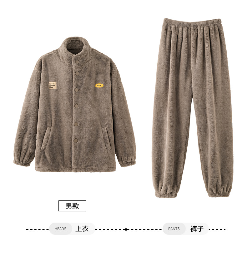 눈꽃 벨벳 두꺼운 보온 스탠드 칼라 가디건 커플 잠옷 겨울 긴팔 긴바지 외출복 남녀 공용
