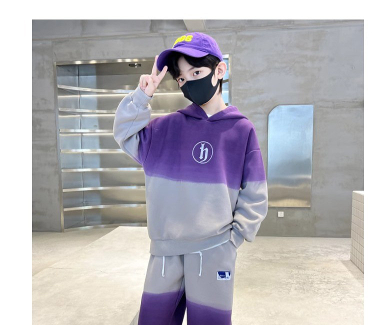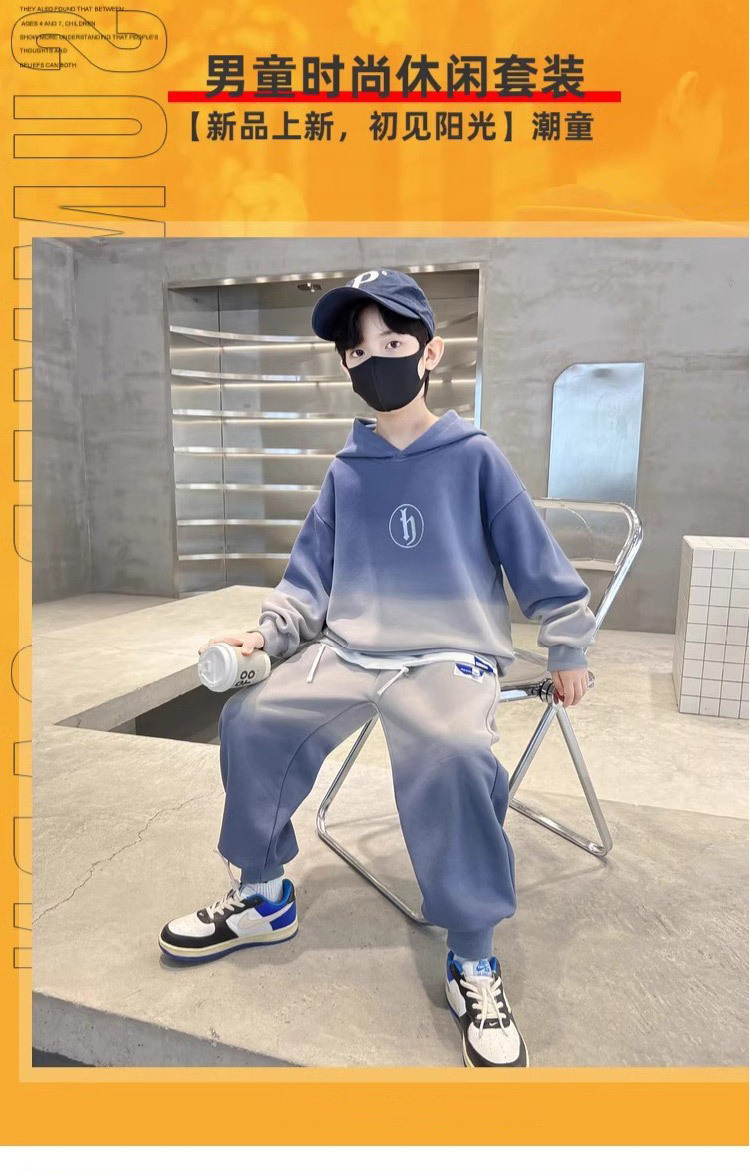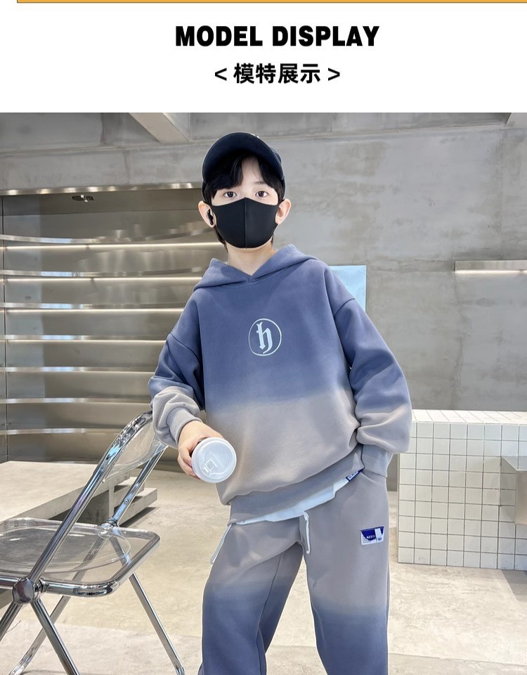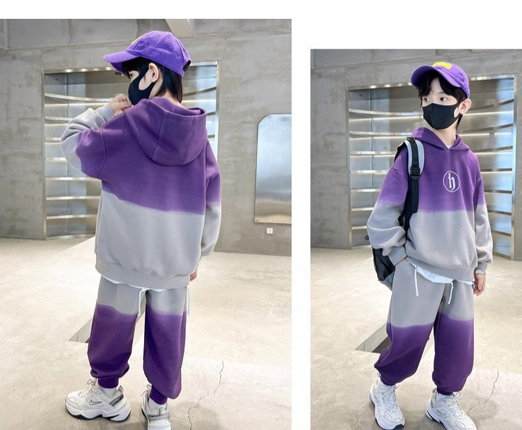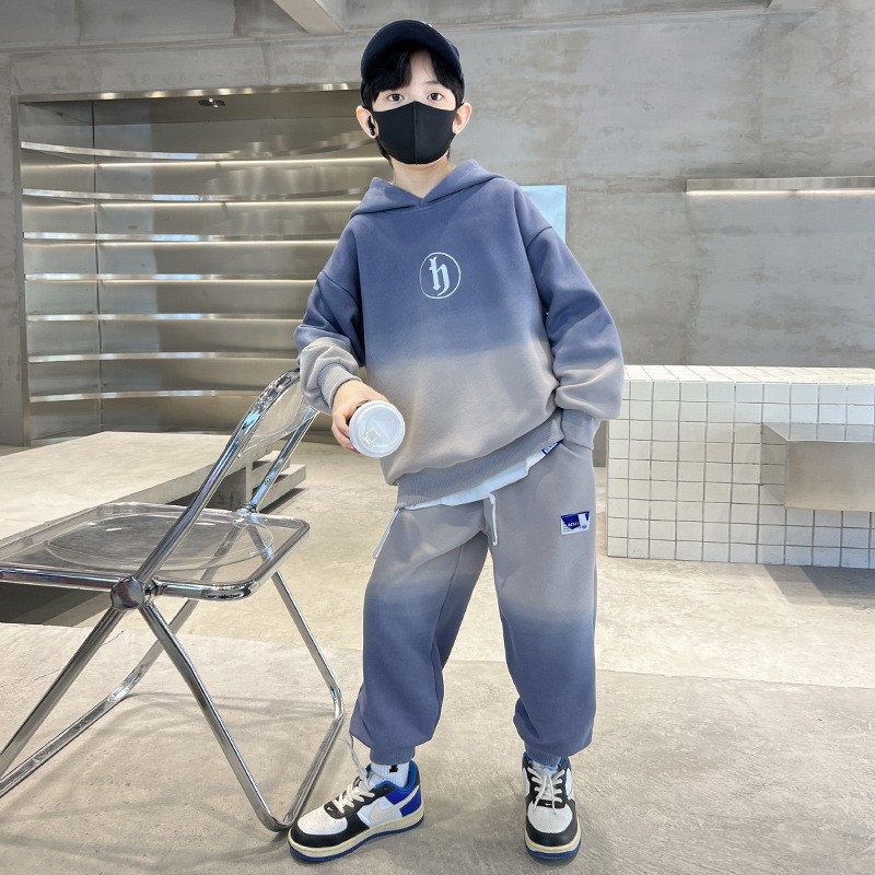 가을과 겨울 어린이 유행 편지 느슨한 레저 스포츠 세트 중 큰 어린이 색상 매칭 후드 땀 투피스 세트스토어 가기